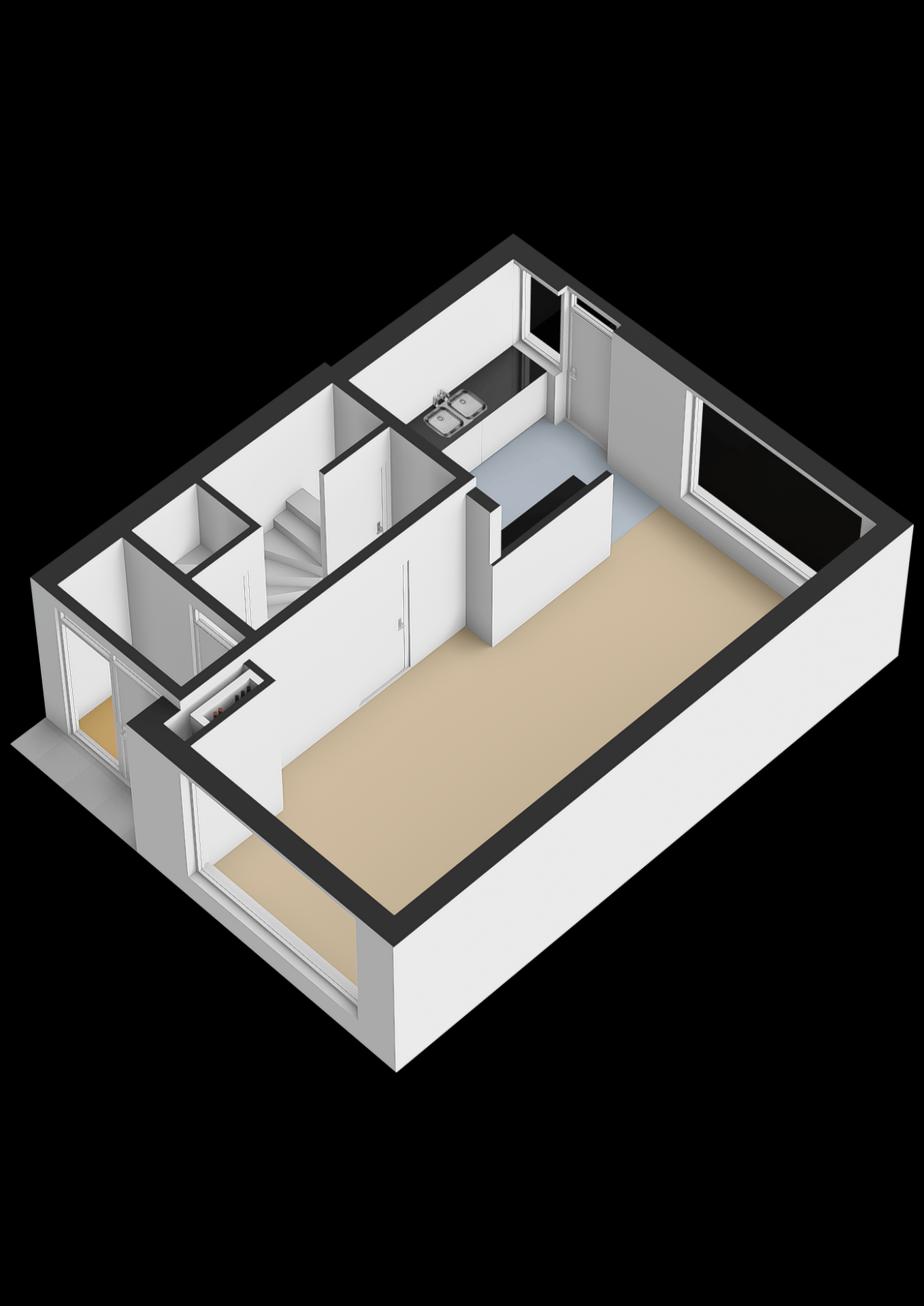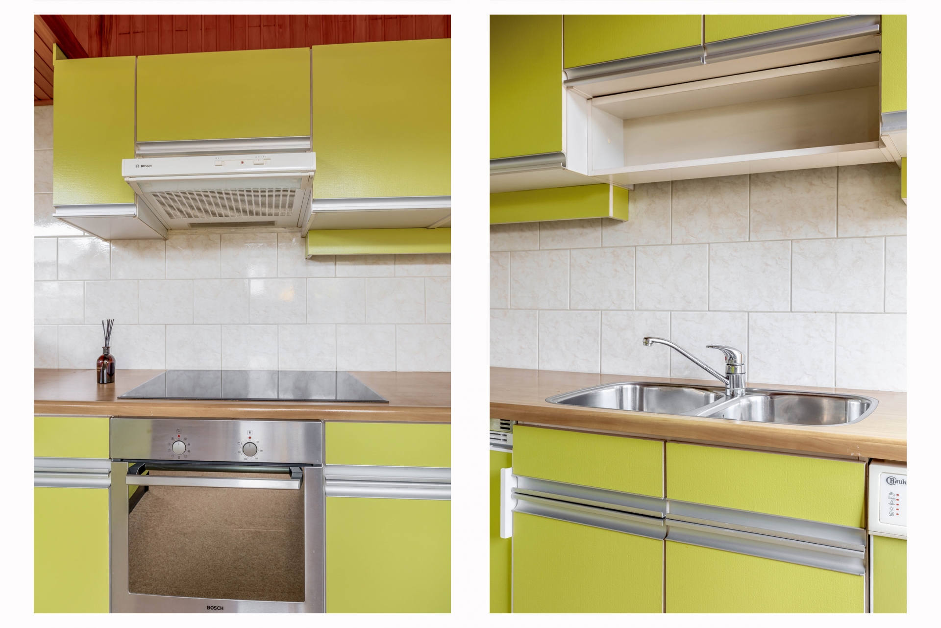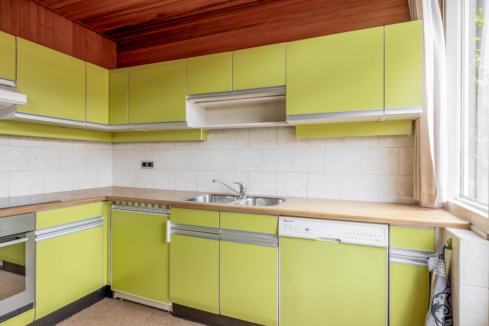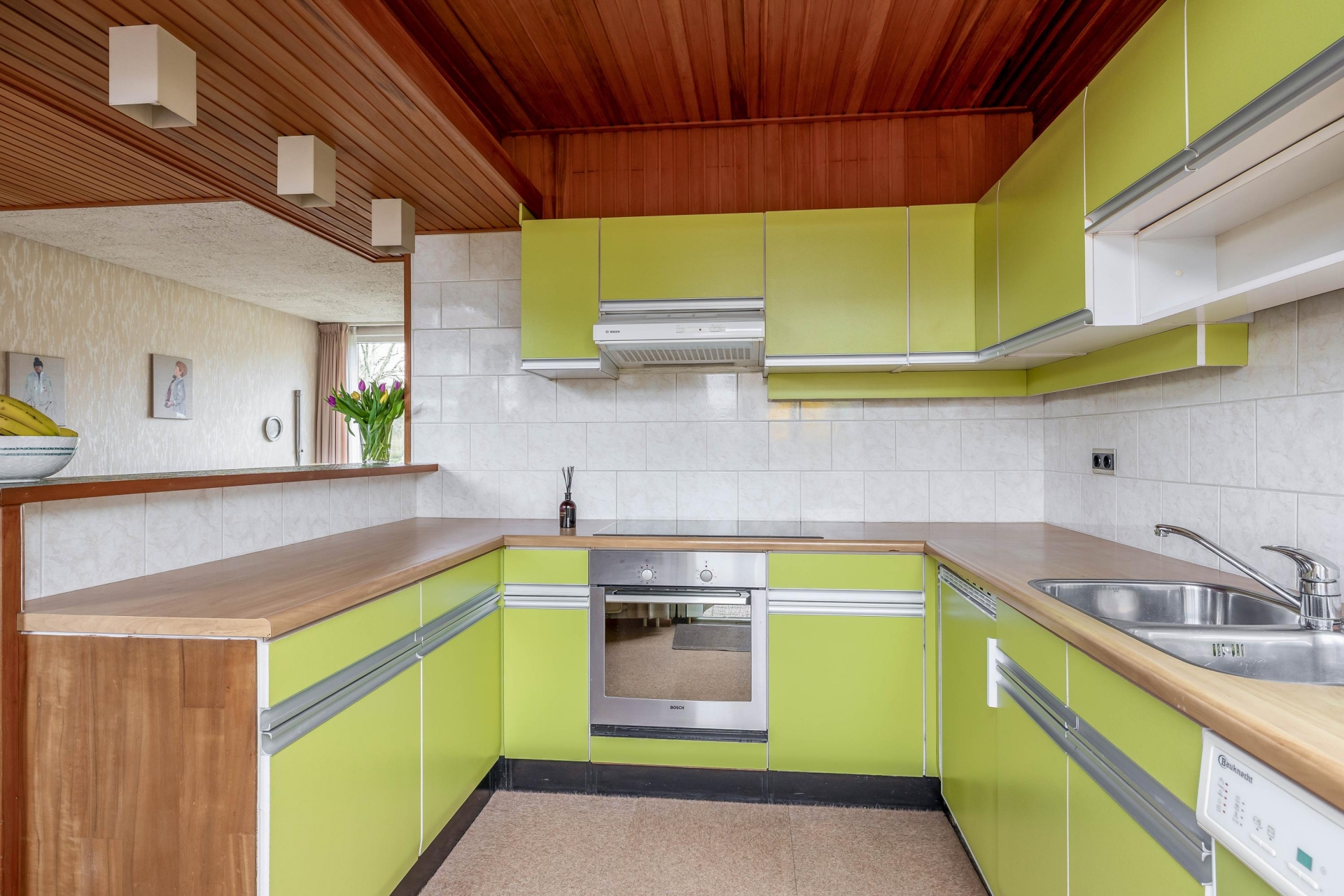 De ruimte is praktisch ingedeeld met voldoende plek voor een gezellige zithoek en een eettafel. De basis is goed en biedt volop mogelijkheden om hier een eigentijdse leefruimte van te maken die helemaal aansluit bij de wensen van nu. De keuken bevindt zich aan de achterzijde van het huis en staat in verbinding met de tuin. Ook hier geldt: een fijne plek met potentie, die je naar eigen smaak kunt moderniseren en inrichten.