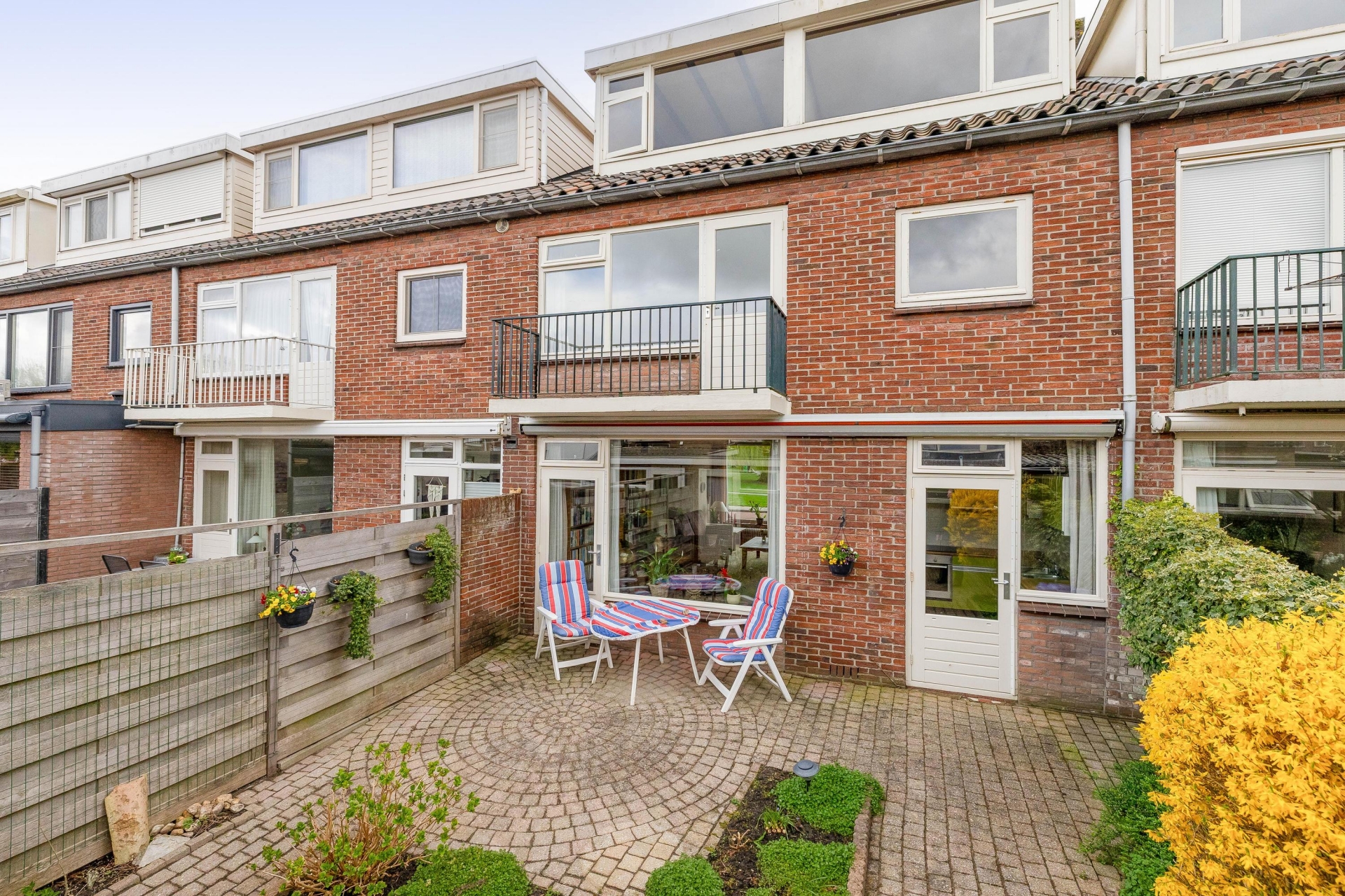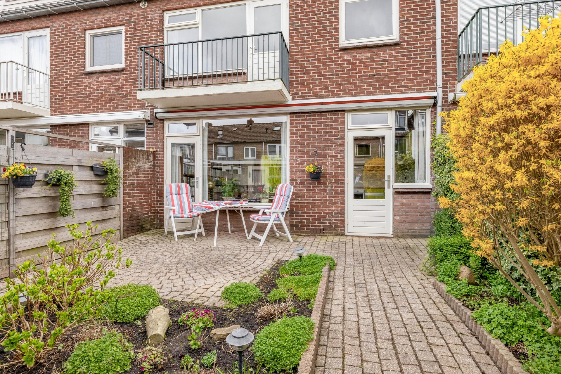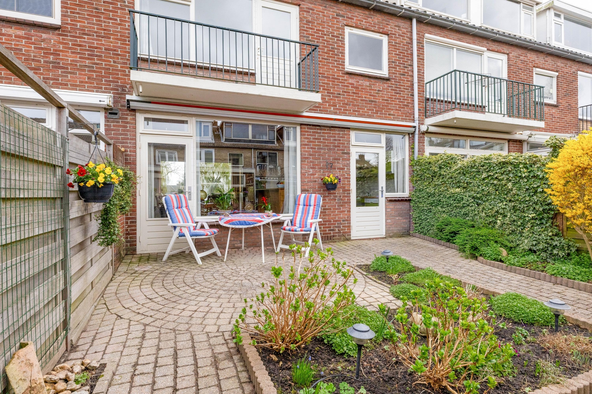 De achtertuin is gelegen op het noordwesten en biedt daardoor volop zon in de namiddag en avond. Een fijne plek om na een werkdag nog even buiten te zitten of in het weekend te genieten van het weer. De tuin is onderhoudsvriendelijk aangelegd en biedt genoeg ruimte voor een gezellige zitplek. Door de ligging aan de achterzijde ervaar je hier rust en privacy. Ook is er een directe verbinding met de woning, wat het binnen-buiten gevoel versterkt.