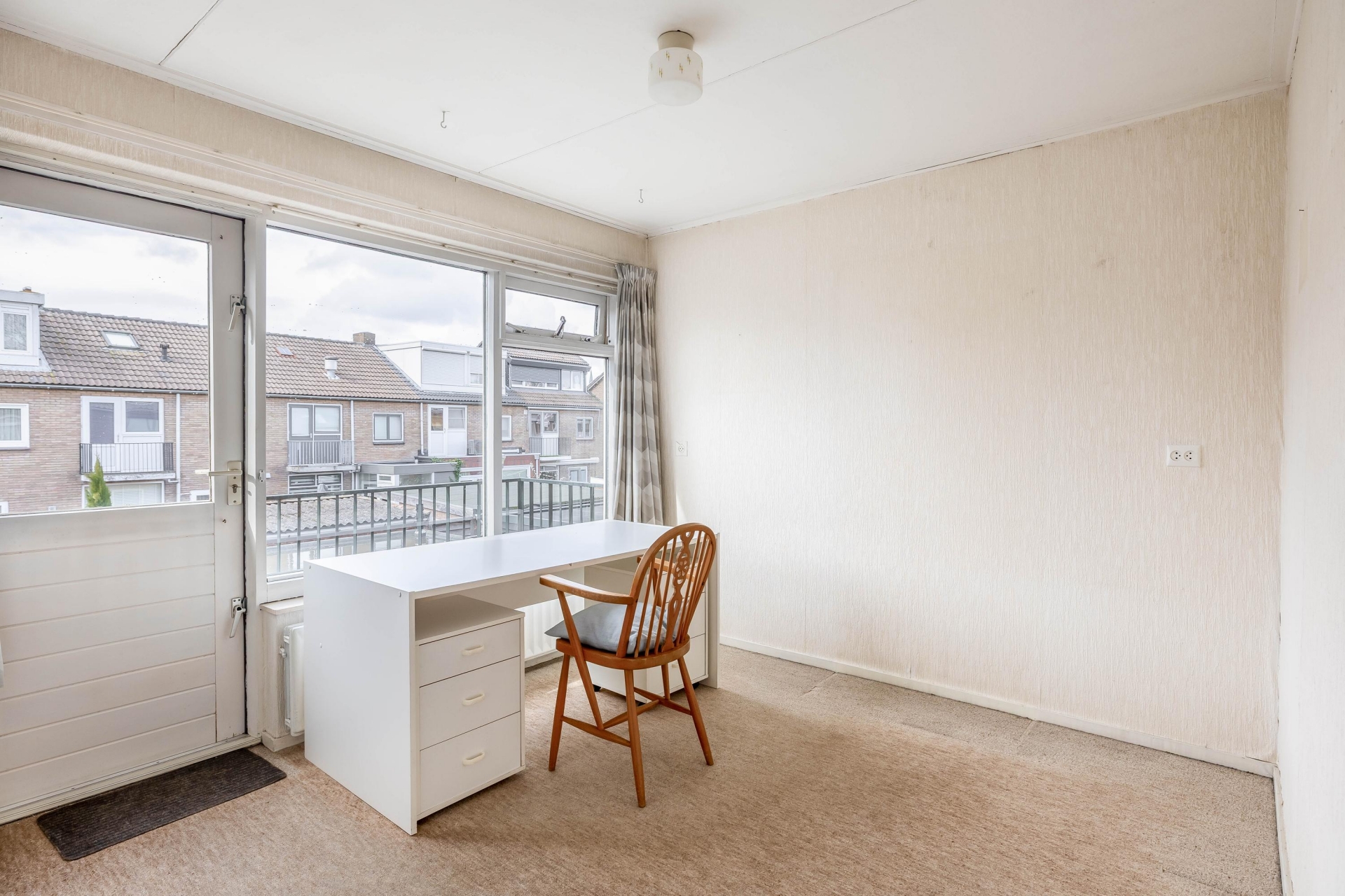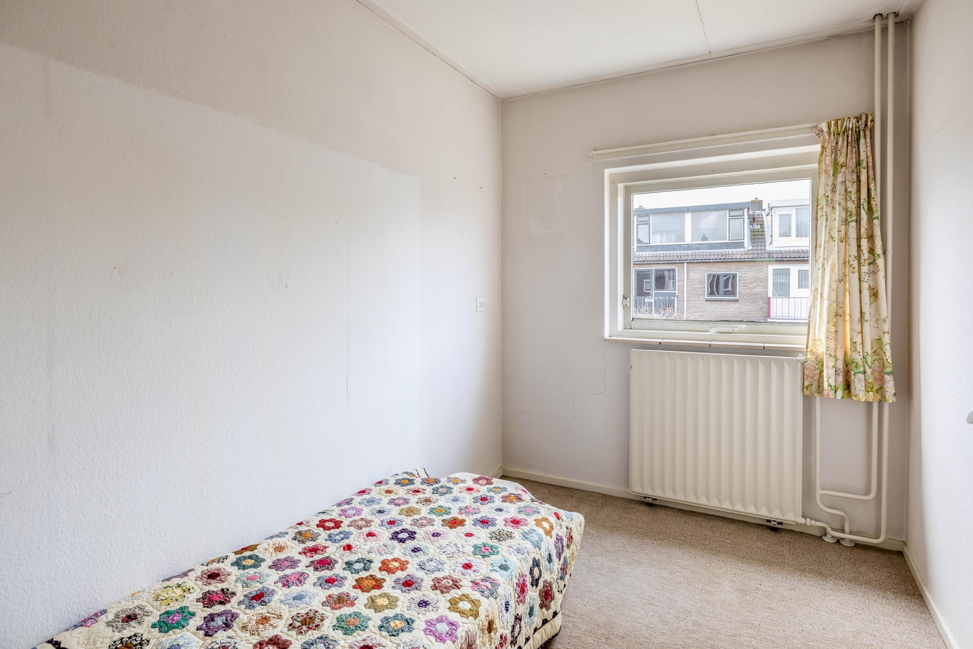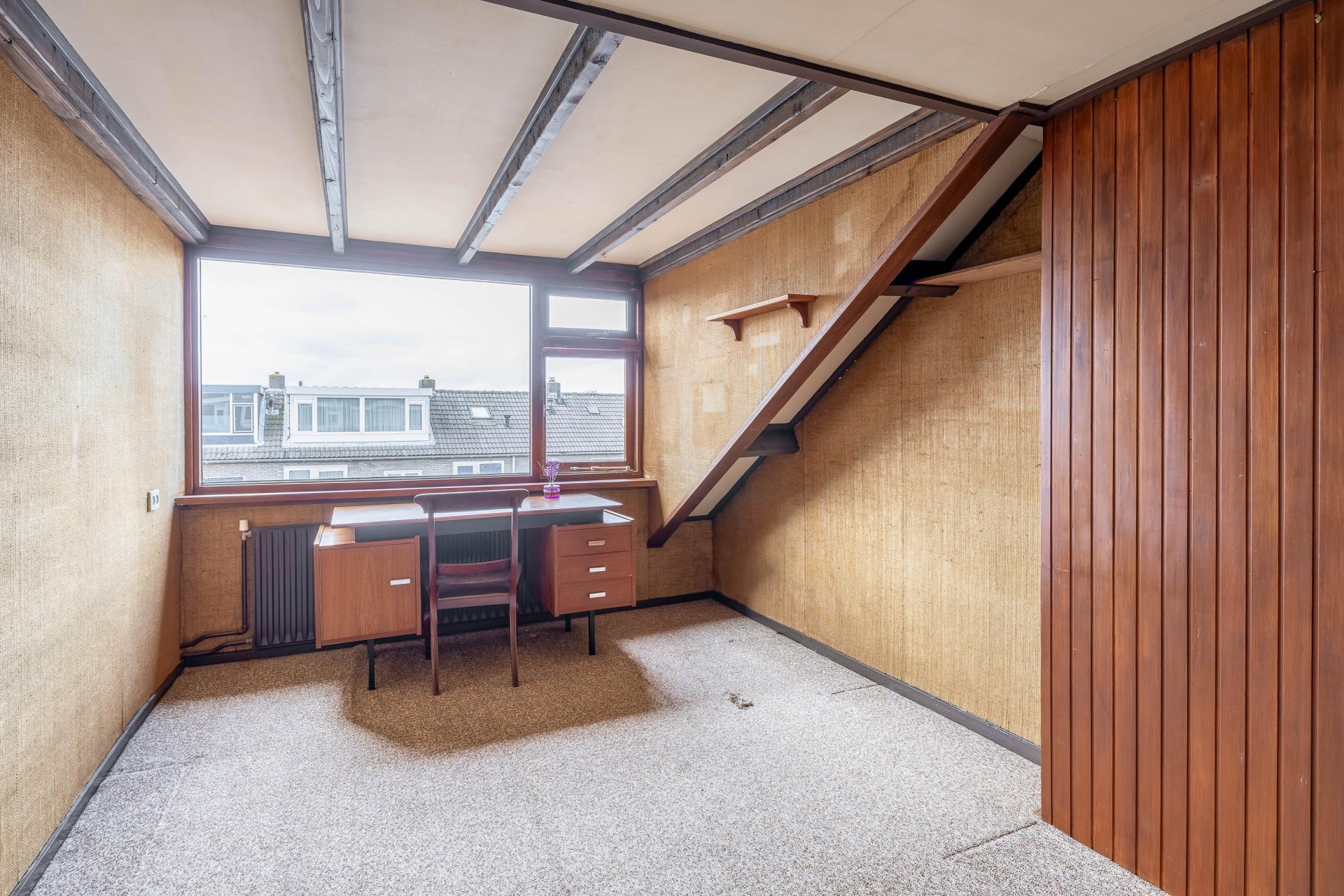 Op de eerste verdieping vind je drie slaapkamers, waarbij de grootste kamer zich aan de voorzijde bevindt. Deze kamer is ruim opgezet en biedt voldoende plek voor een groot bed en een kast. De andere kamers zijn ideaal als slaap-, werk- of hobbykamer. De badkamer is functioneel en voorzien van de basis. Net als de rest van het huis biedt ook deze ruimte kansen om te moderniseren en volledig naar eigen wens in te richten. De tweede verdieping is een waardevolle toevoeging. Hier is een extra kamer aanwezig die je kunt gebruiken als vierde slaapkamer, werkruimte of opslag. Dankzij de indeling en het daglicht is dit een volwaardige verdieping die het huis extra mogelijkheden geeft, zeker voor de persoon die behoefte heeft aan een thuiswerkplek.