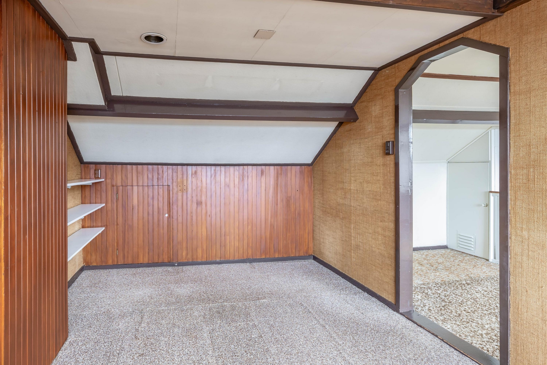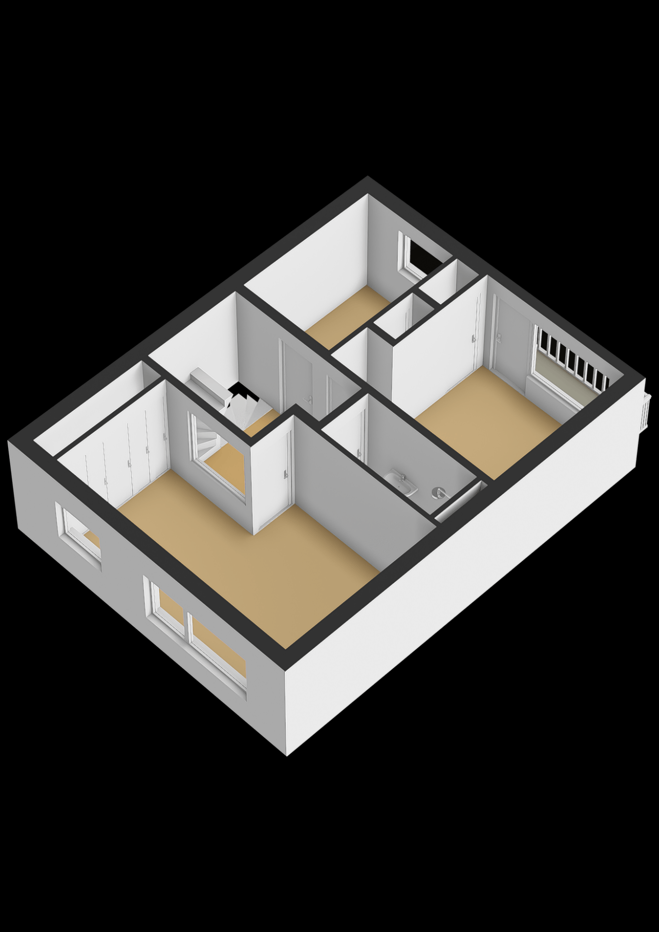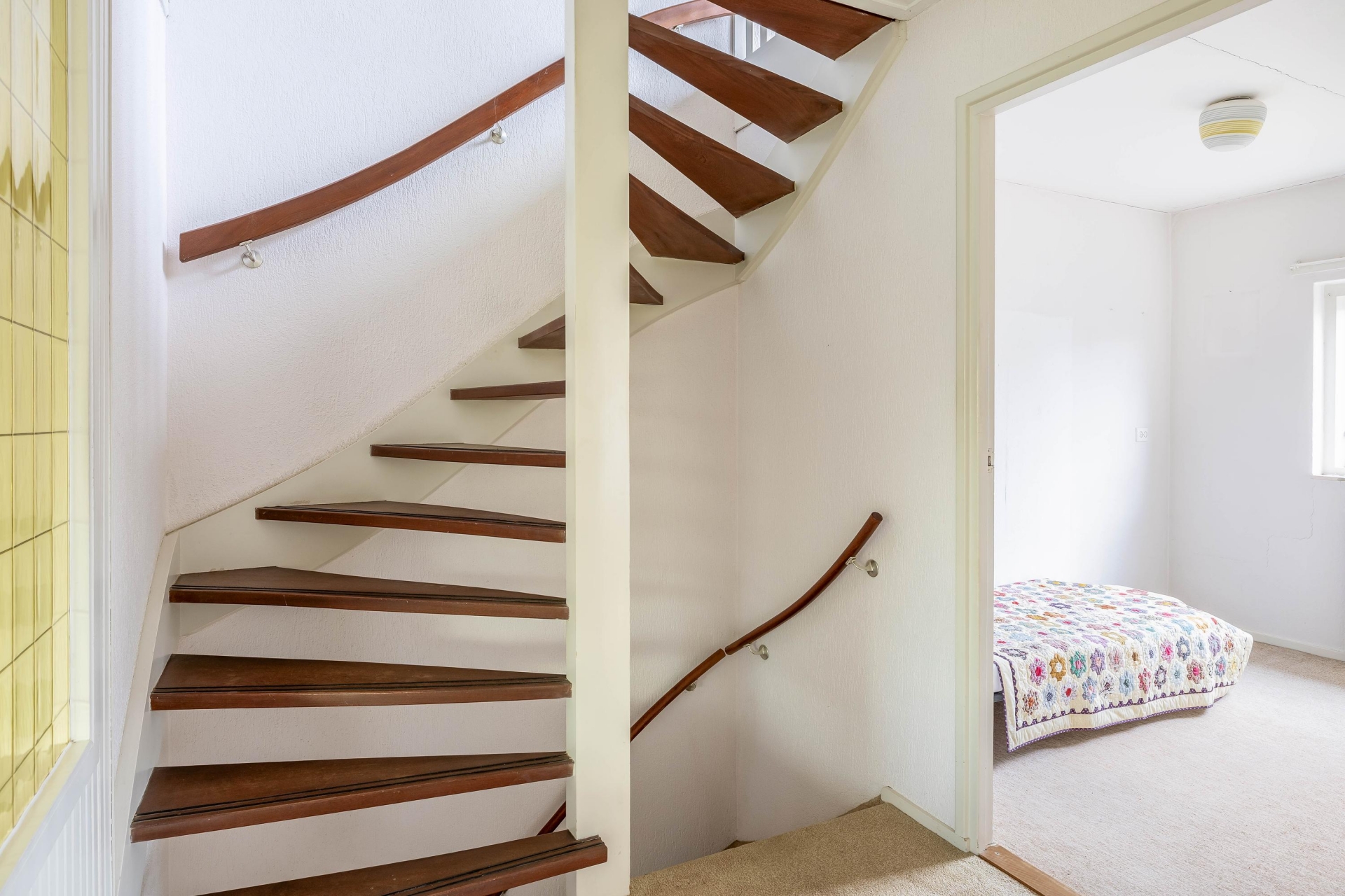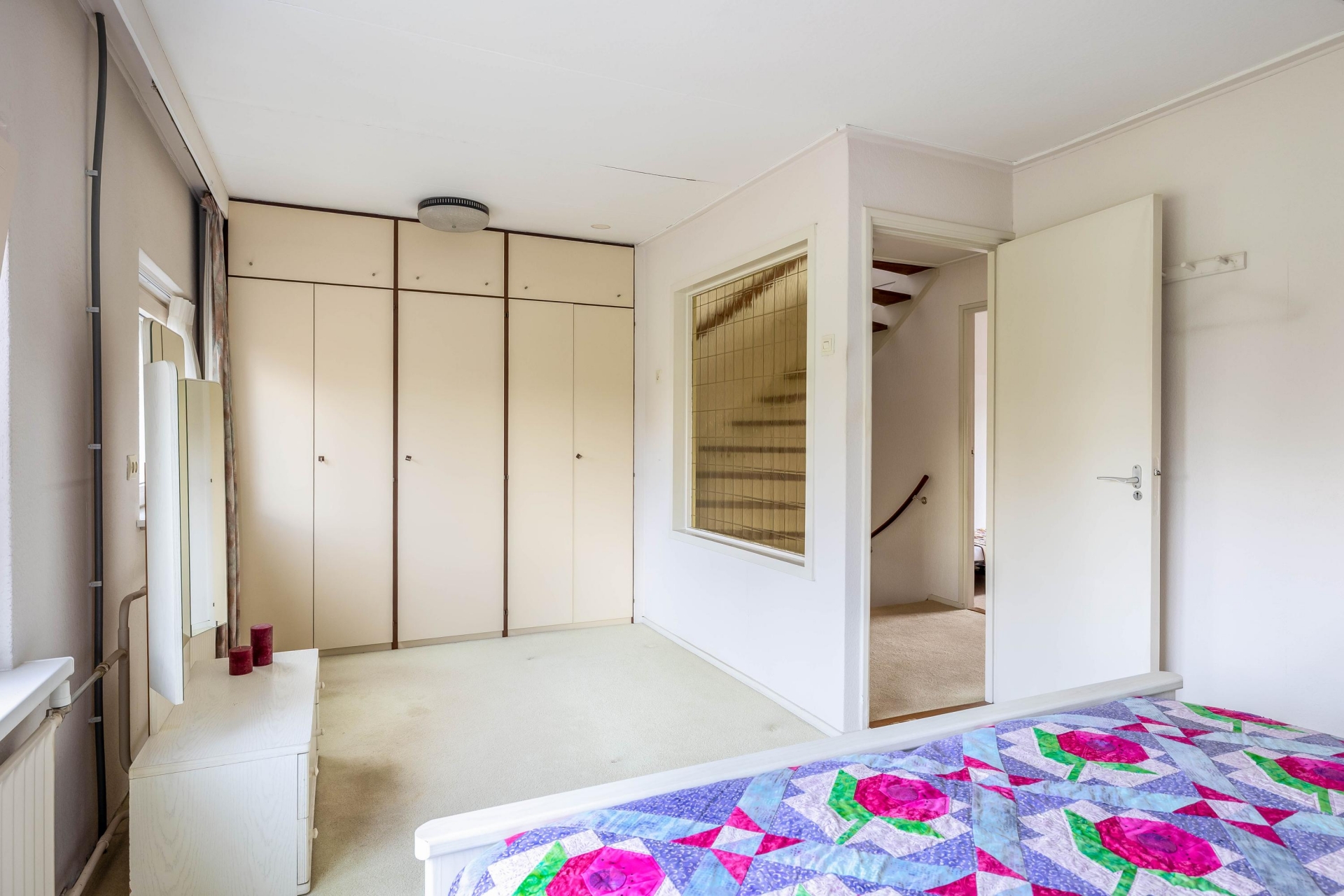 Op de eerste verdieping vind je drie slaapkamers, waarbij de grootste kamer zich aan de voorzijde bevindt. Deze kamer is ruim opgezet en biedt voldoende plek voor een groot bed en een kast. De andere kamers zijn ideaal als slaap-, werk- of hobbykamer. De badkamer is functioneel en voorzien van de basis. Net als de rest van het huis biedt ook deze ruimte kansen om te moderniseren en volledig naar eigen wens in te richten. De tweede verdieping is een waardevolle toevoeging. Hier is een extra kamer aanwezig die je kunt gebruiken als vierde slaapkamer, werkruimte of opslag. Dankzij de indeling en het daglicht is dit een volwaardige verdieping die het huis extra mogelijkheden geeft, zeker voor de persoon die behoefte heeft aan een thuiswerkplek.