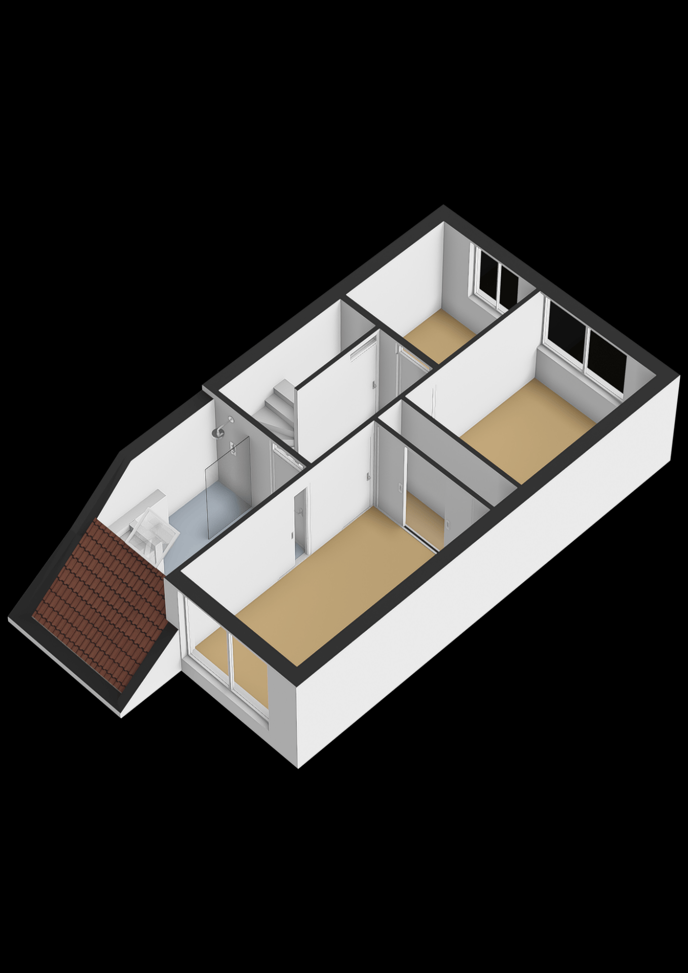 Op de eerste verdieping zijn 3 slaapkamers en een badkamer. De badkamer is volledig betegeld en voorzien van een douche, wastafel met meubel, toilet en de aansluiting voor de wasmachine. Door het aanwezige dakraam is er voldoende daglicht toetreding en genoeg natuurlijke en mechanische ventilatie. Middels een vaste trap is er toegang tot de 2e verdieping. Hier is een ruime 4e slaapkamer aanwezig. Aan bergruimte ook geen gebrek. Achter een schot is voldoende ruimte voor het opbergen van de seizoensgebonden spullen.