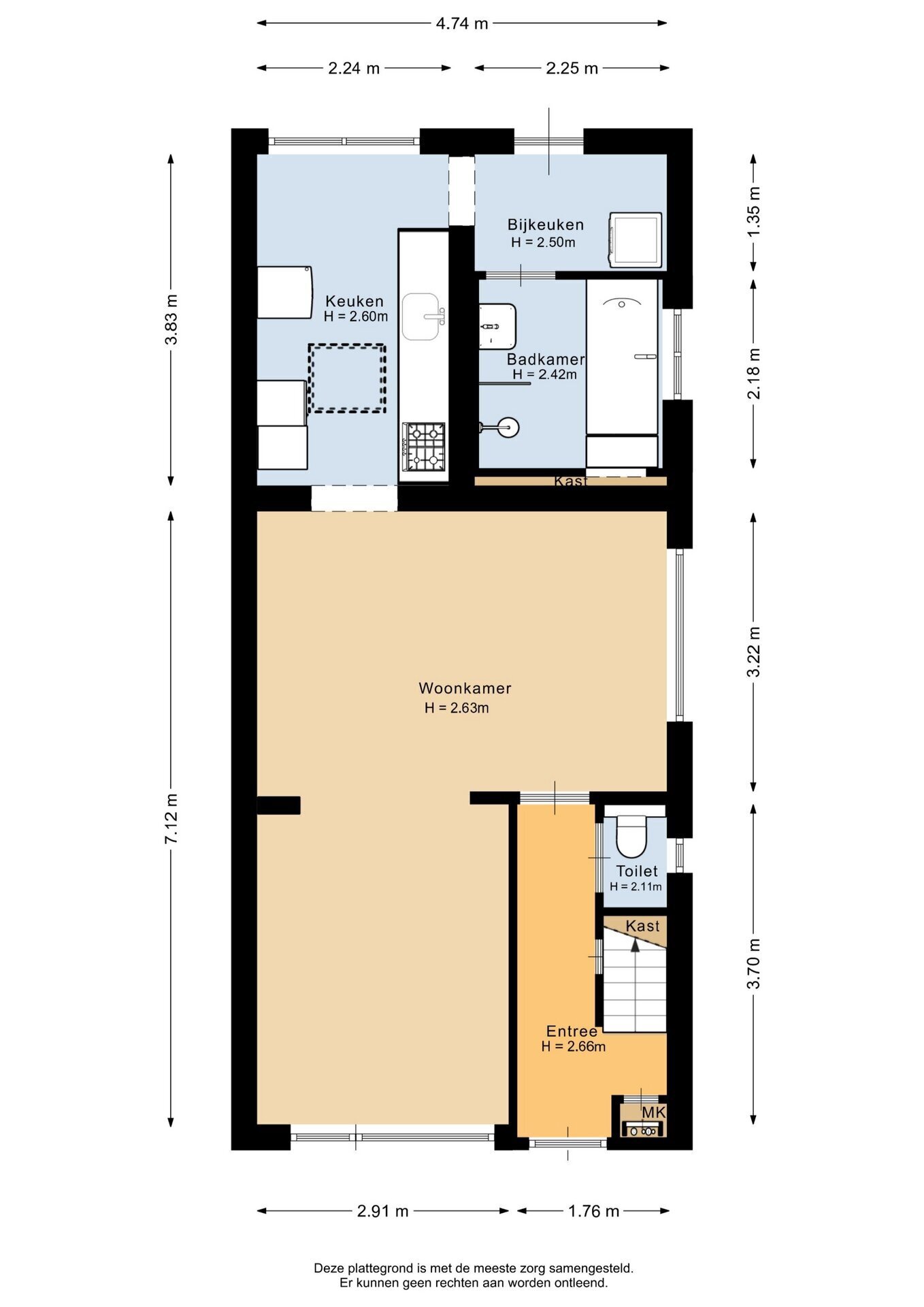 “Deze informatie is door ons met de nodige zorgvuldigheid samengesteld. Onzerzijds wordt echter geen enkele aansprakelijkheid aanvaard voor enige onvolledigheid, onjuistheid of anderszins, dan wel de gevolgen daarvan. Alle opgegeven maten en oppervlakten zijn indicatief.”