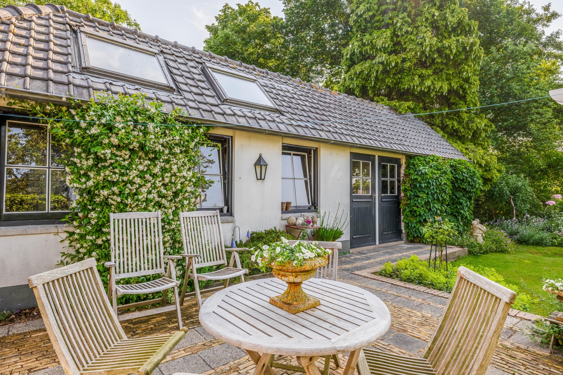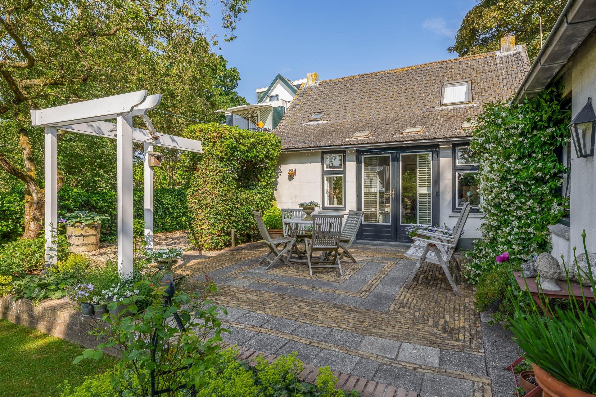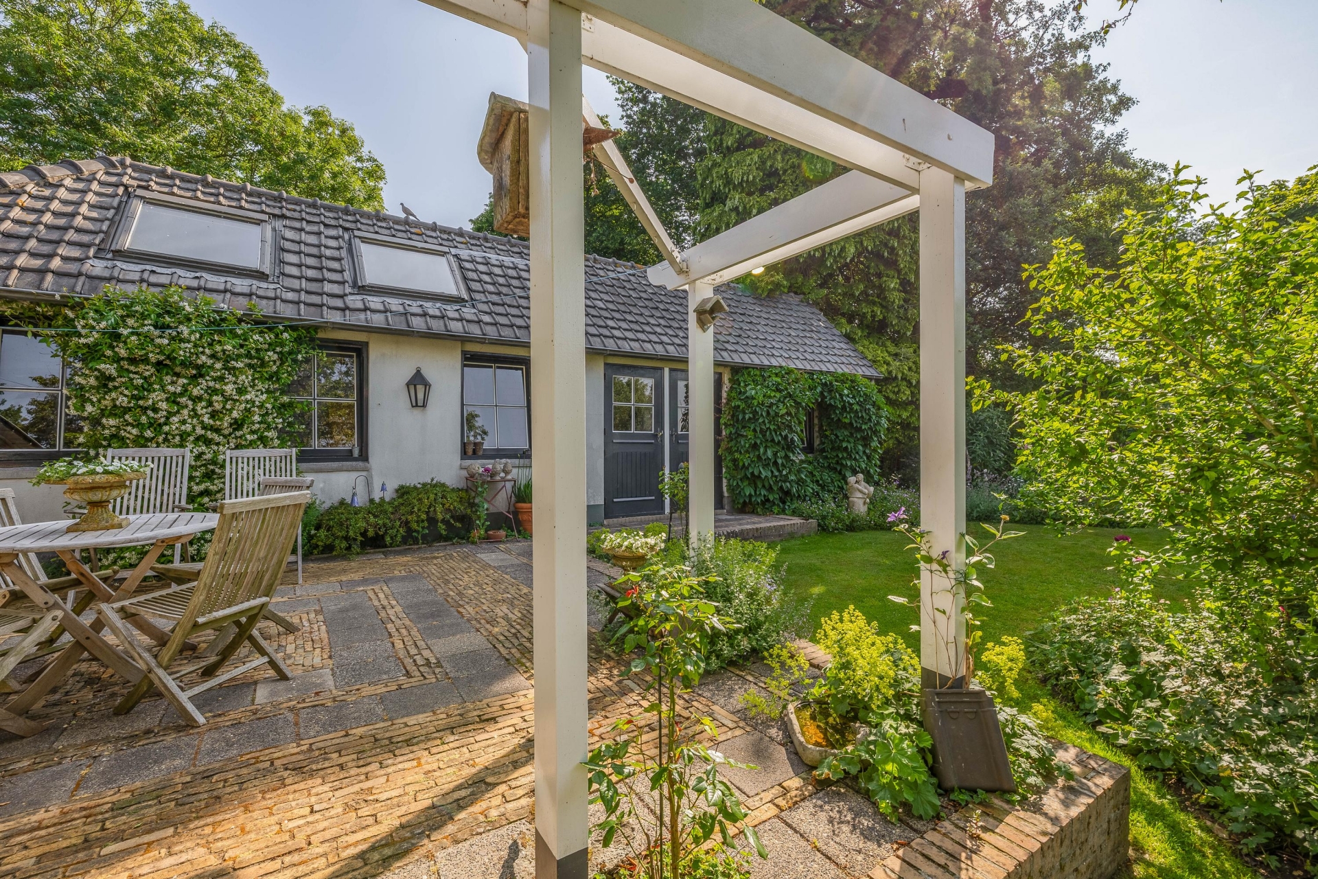 De tuin ligt op het zuidoosten en is een echte groene oase. Er is altijd wel een zonnig of juist schaduwrijk plekje te vinden. Dankzij het ruime perceel kun je hier naar hartenlust tuinieren, relaxen of bijvoorbeeld kippen houden. Voor gezinnen is er ruimte genoeg voor speeltoestellen of een trampoline, en ook huisdieren zullen zich hier direct thuis voelen.