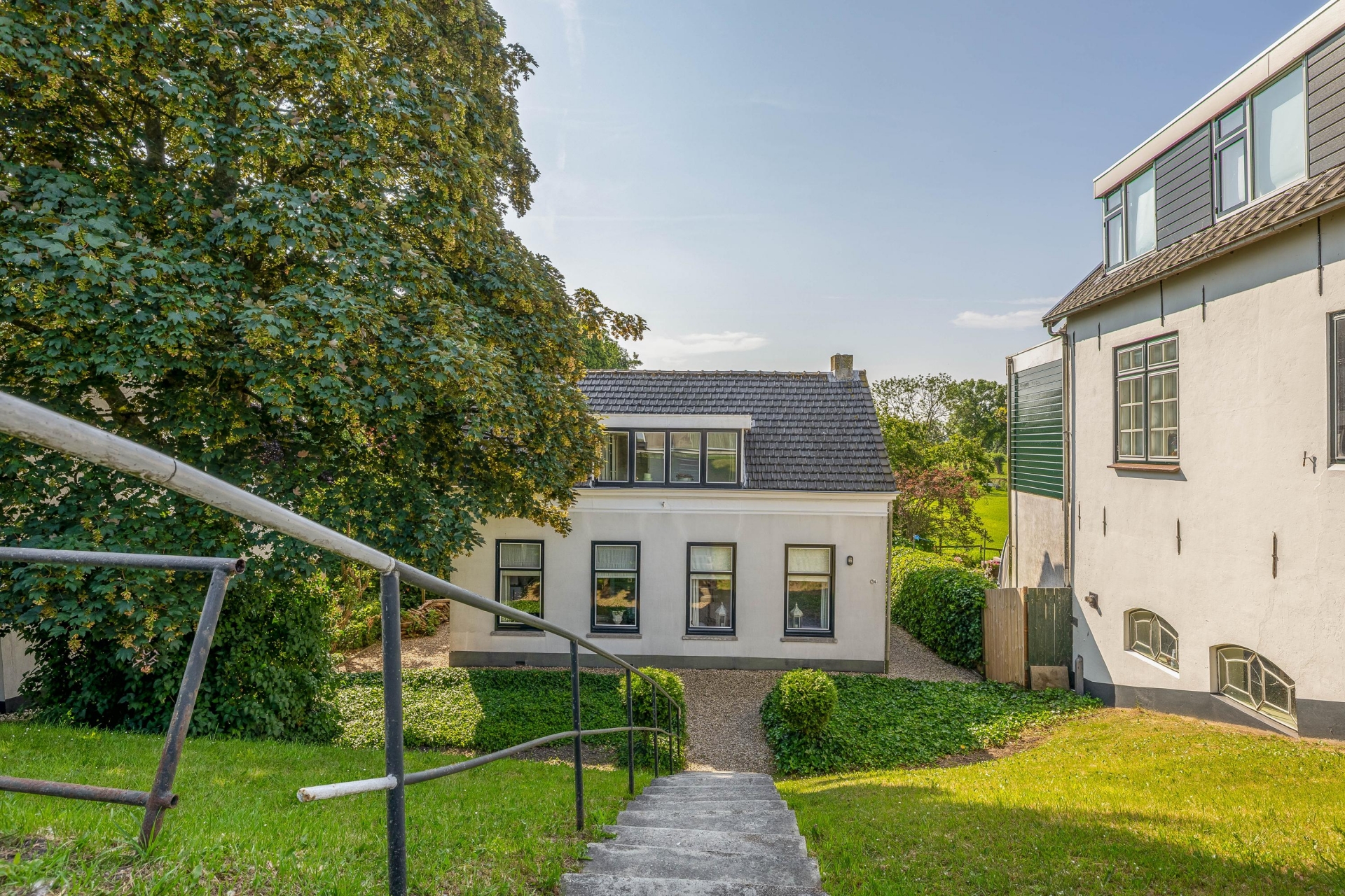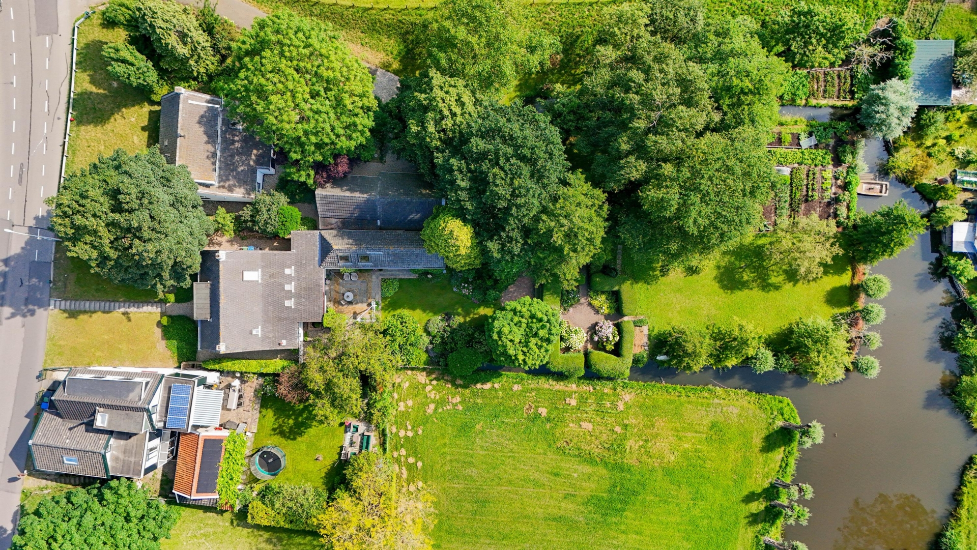 Achter het huis grenst het perceel aan een wetering, waardoor je ook vanuit de tuin volop waterbeleving hebt.