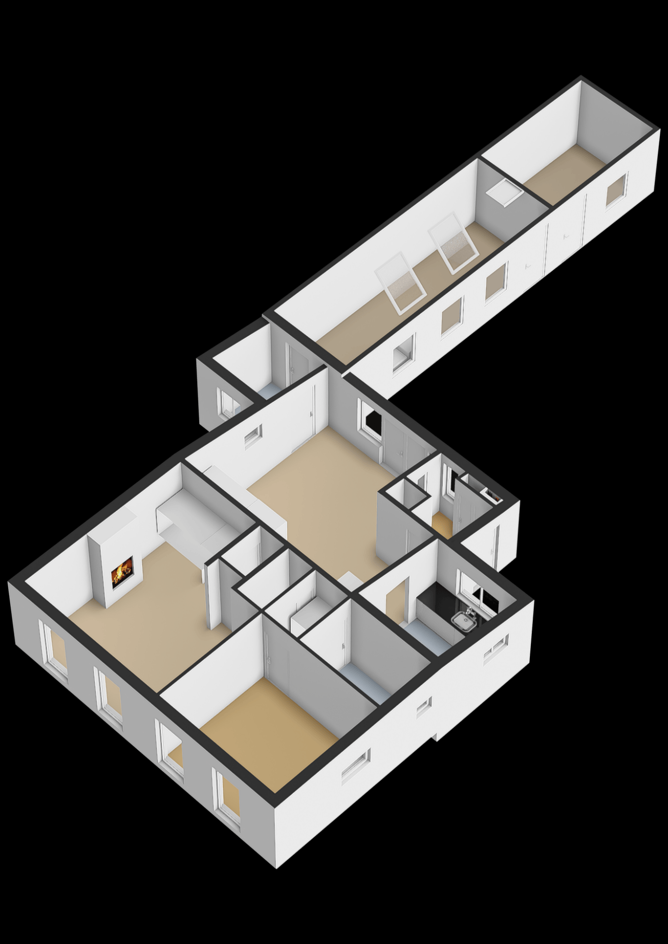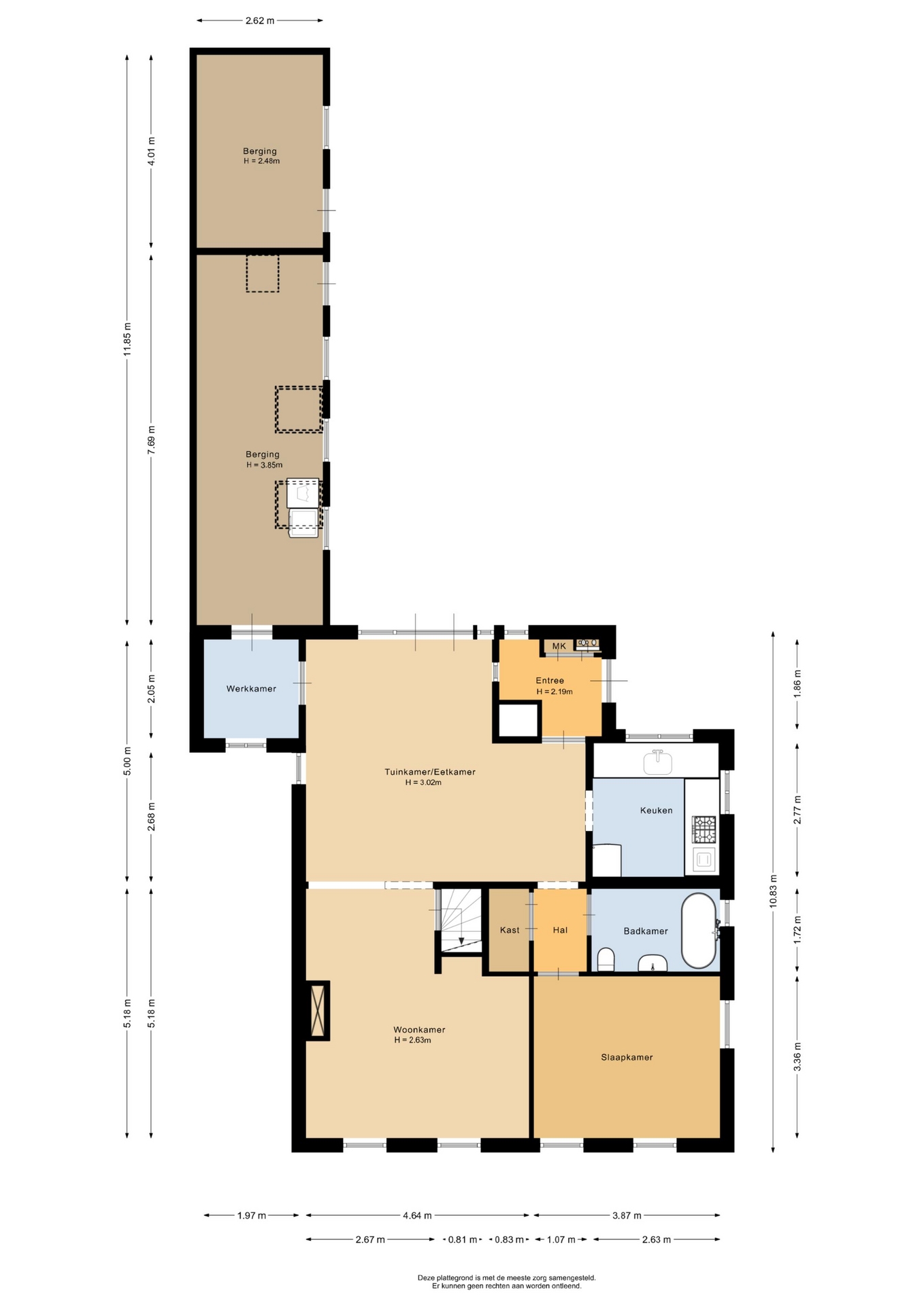 Ook is er nog een werkruimte beneden met mogelijke toegang naar de aangebouwde bergruimte.