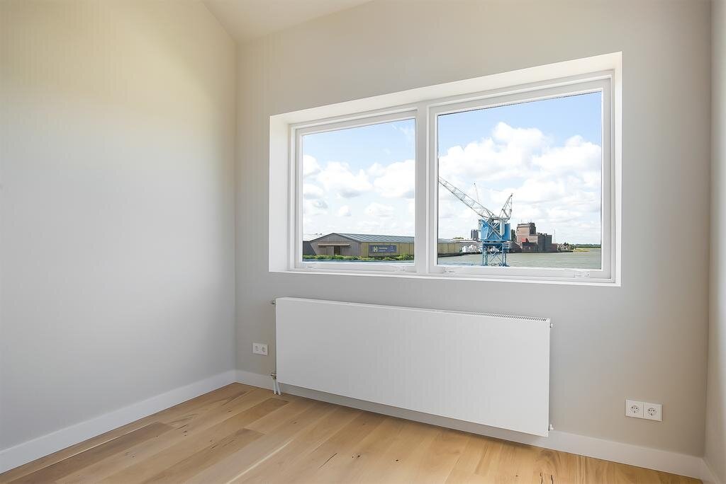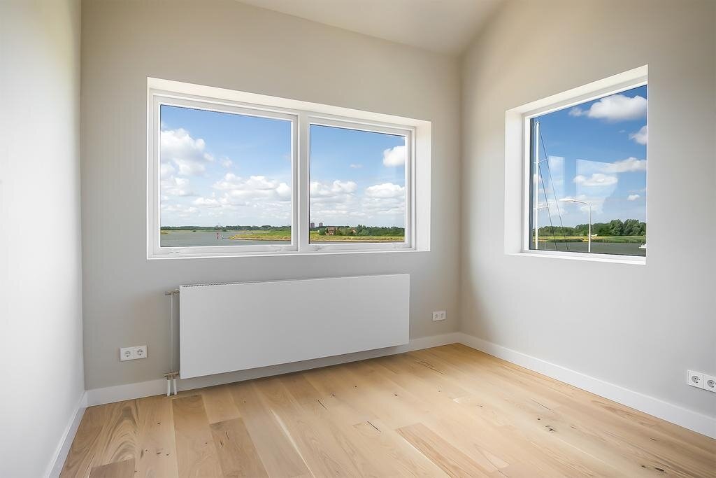 De woonkamer is strak afgewerkt met gestucte wanden en is op te delen in een zit- en eetgedeelte. Aan de voorzijde kijk je uit over de IJssel en aan de achterzijde heb je zicht op het polderlandschap.