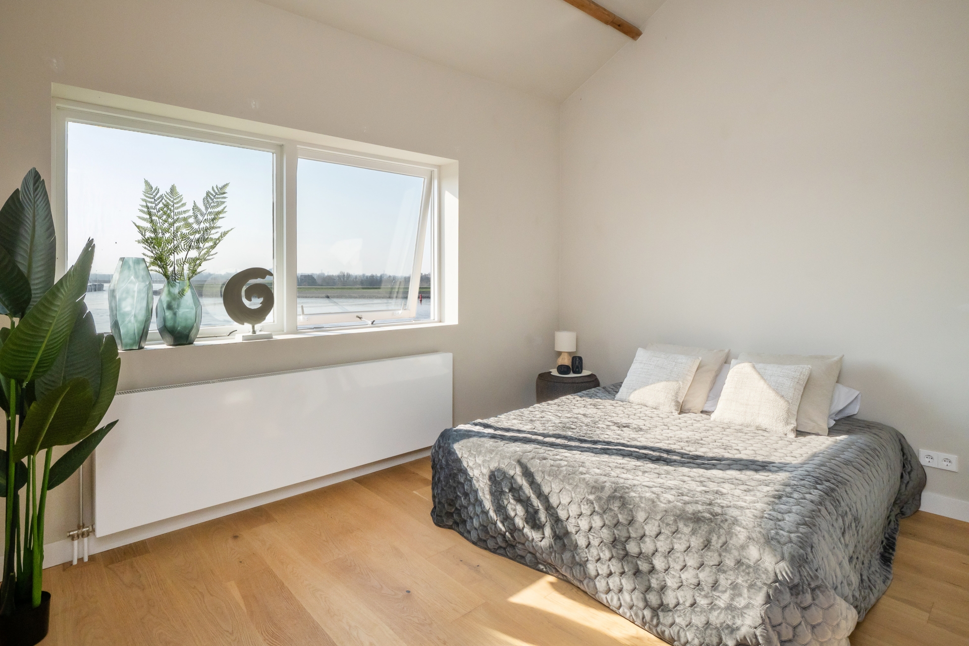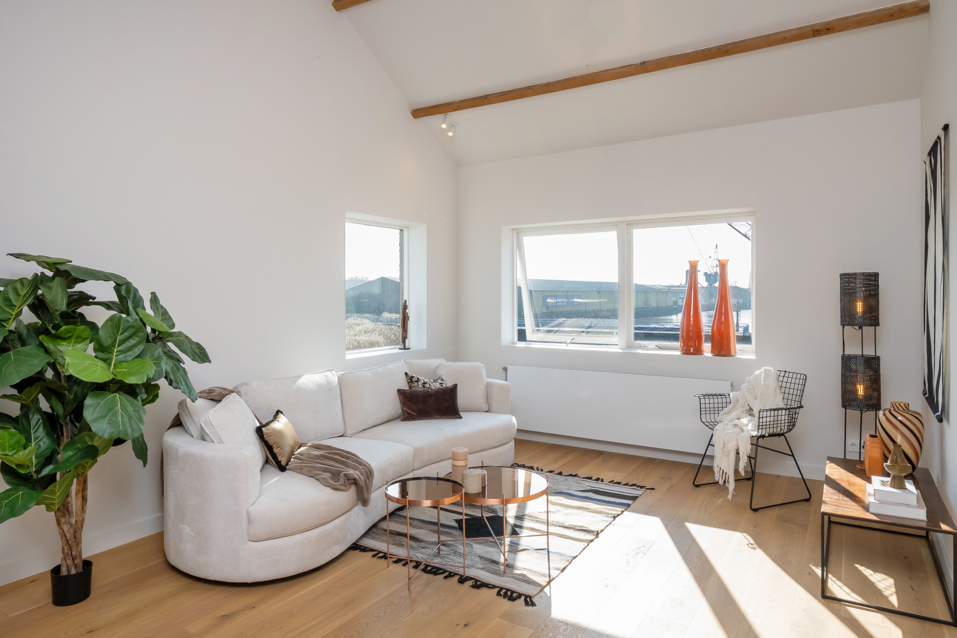 De woonkamer is strak afgewerkt met gestucte wanden en is op te delen in een zit- en eetgedeelte. Aan de voorzijde kijk je uit over de IJssel en aan de achterzijde heb je zicht op het polderlandschap.