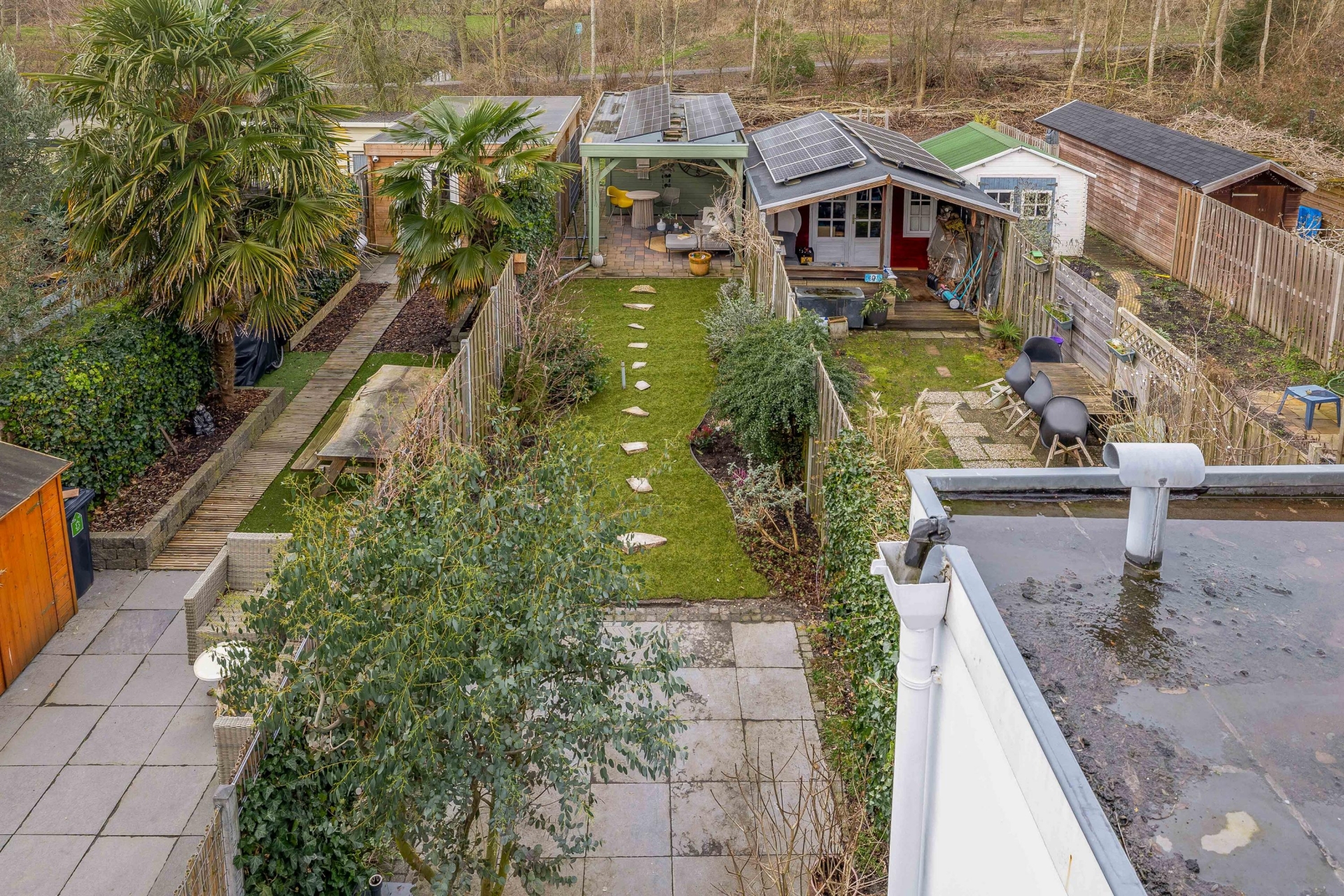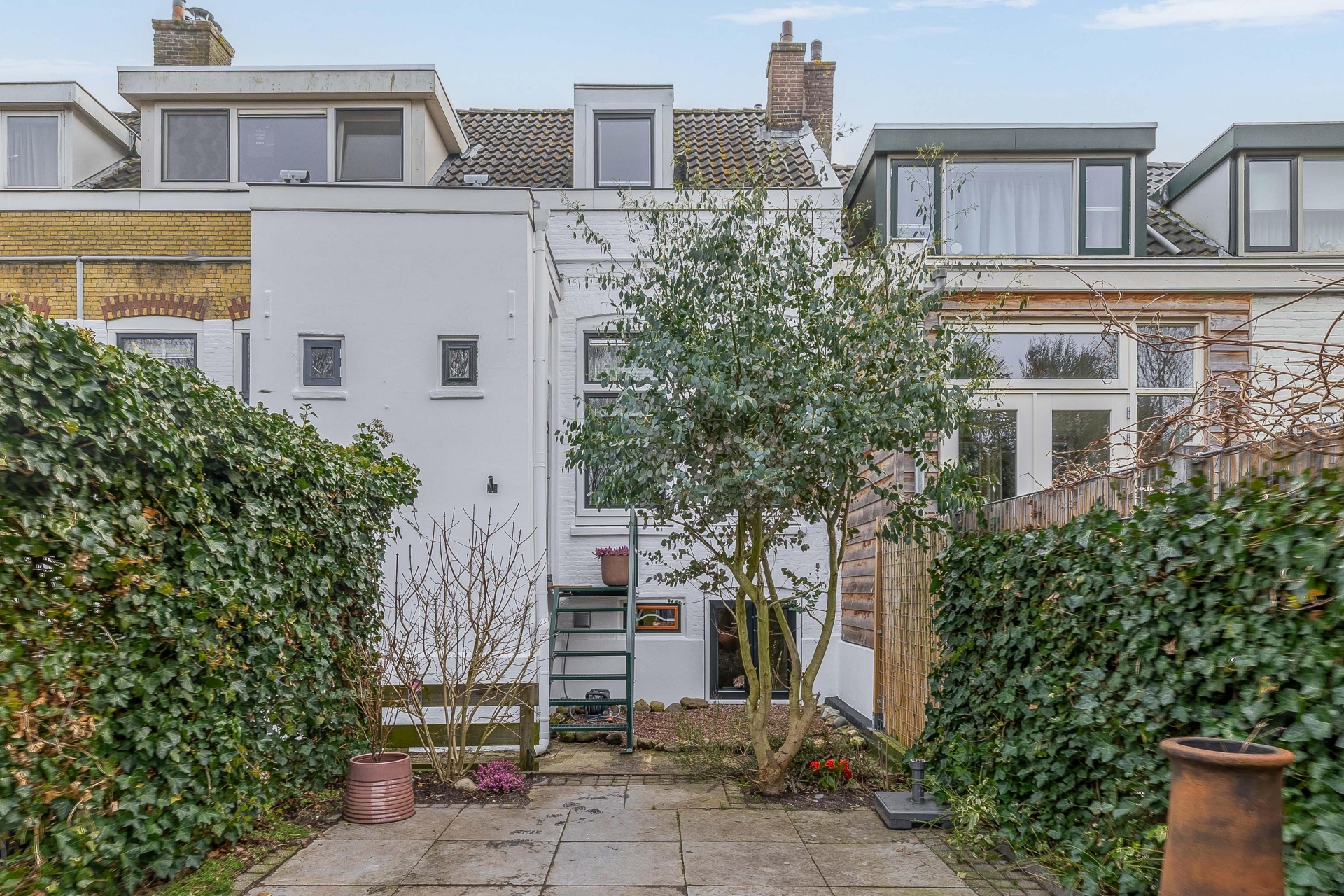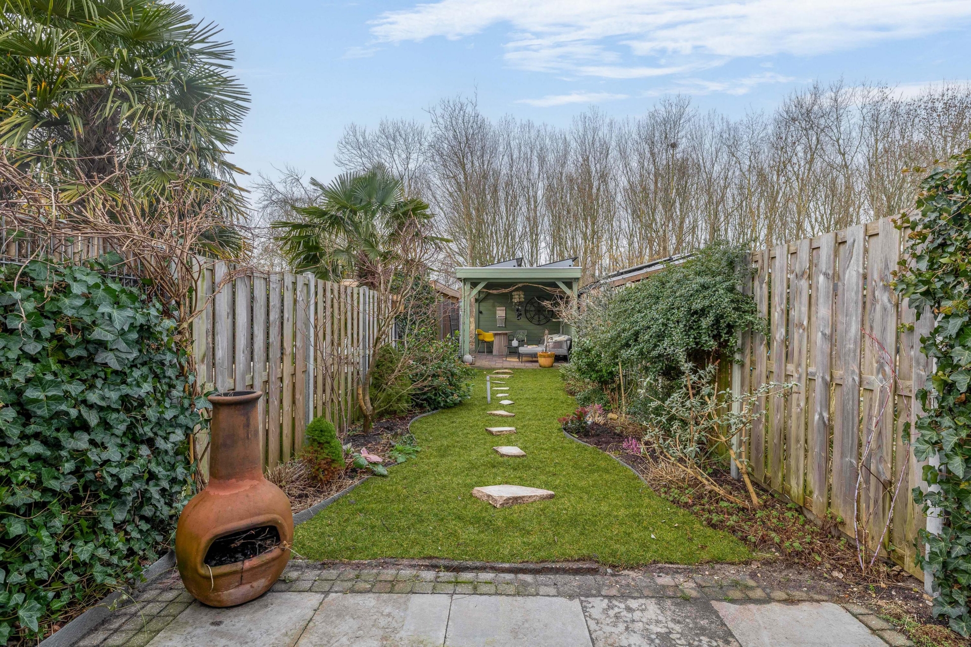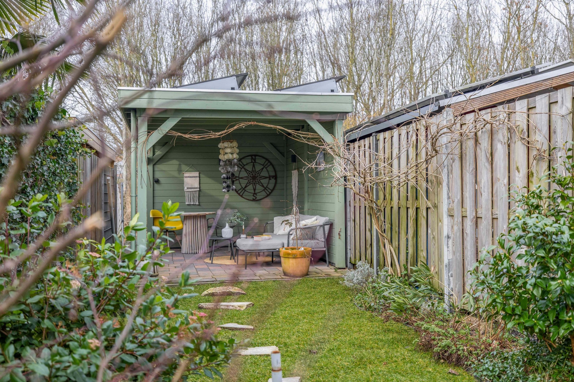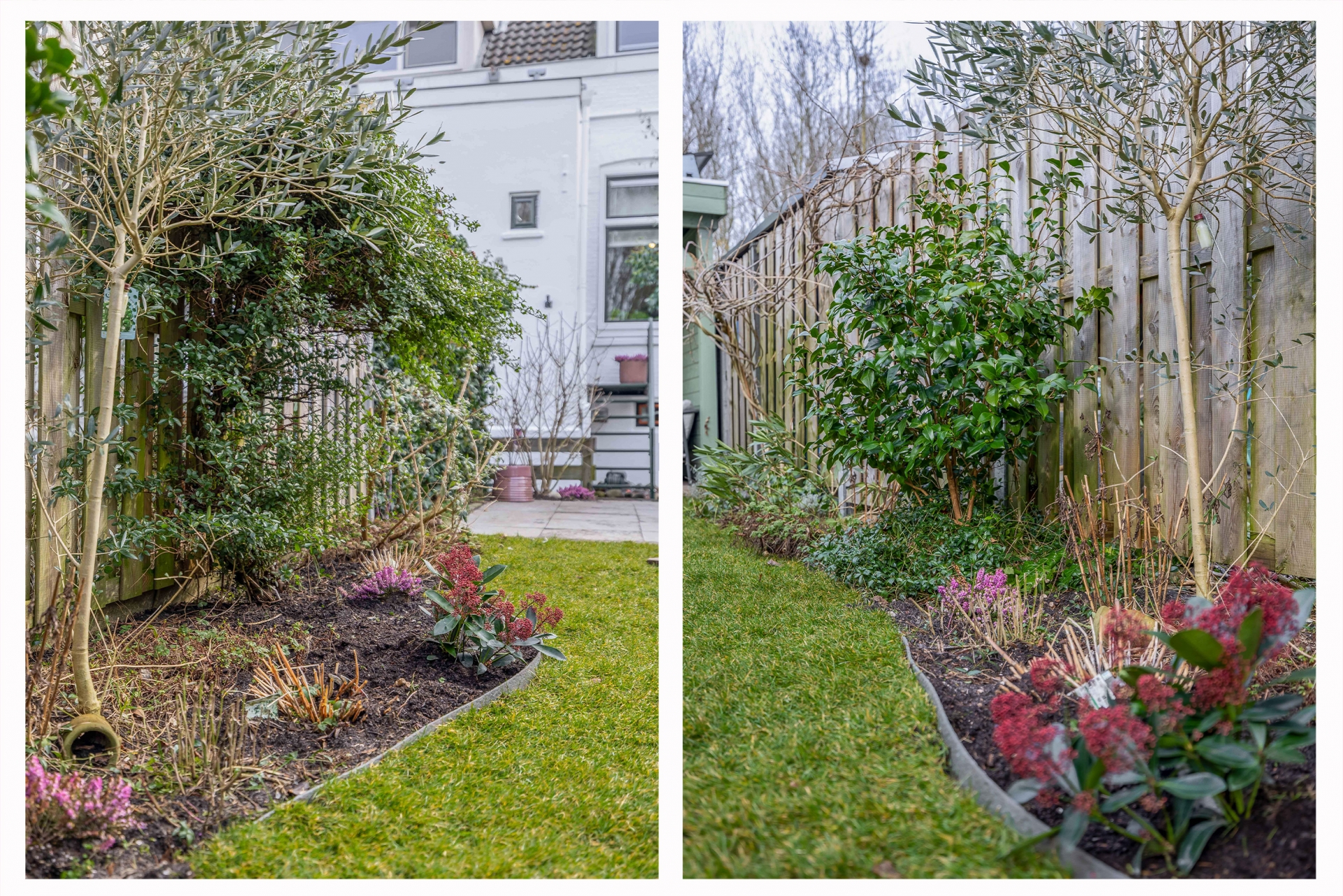 En dan de tuin. Want wat een verrassing is dit. Met maar liefst bijna 30 meter diepte voelt dit als een eigen groene oase midden in de stad. Door de ligging op het westen is er altijd wel een zonnige plek te vinden. ’s Ochtends rustig wakker worden met koffie in het eerste zonnetje, later op de dag loungen achterin onder de overkapping van het tuinhuis.