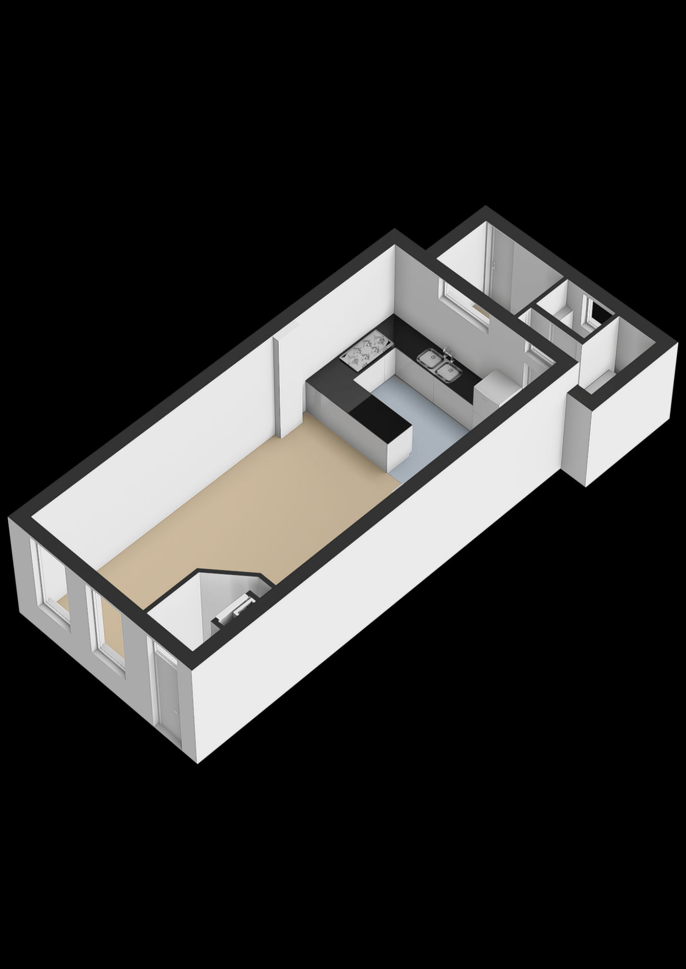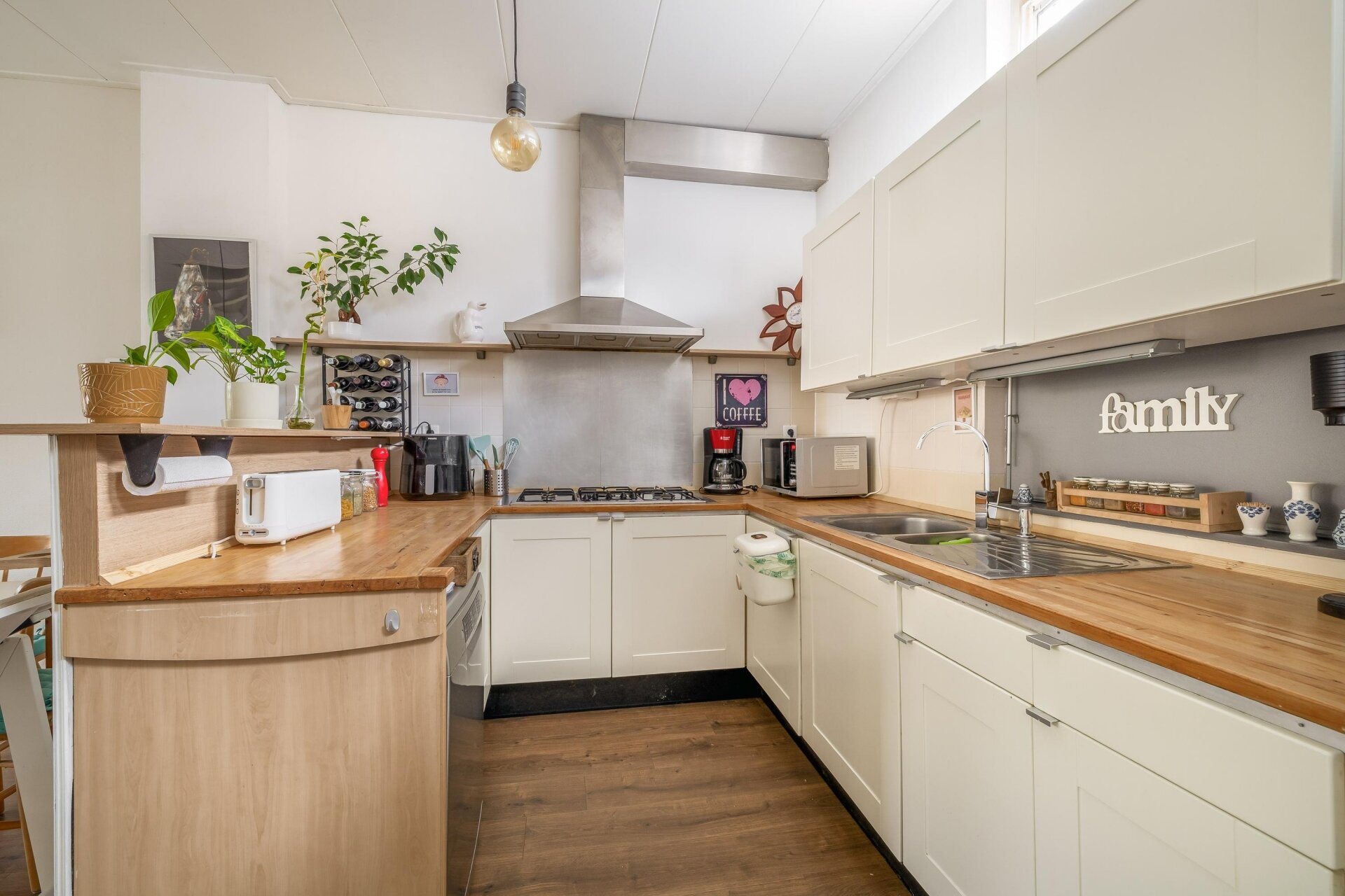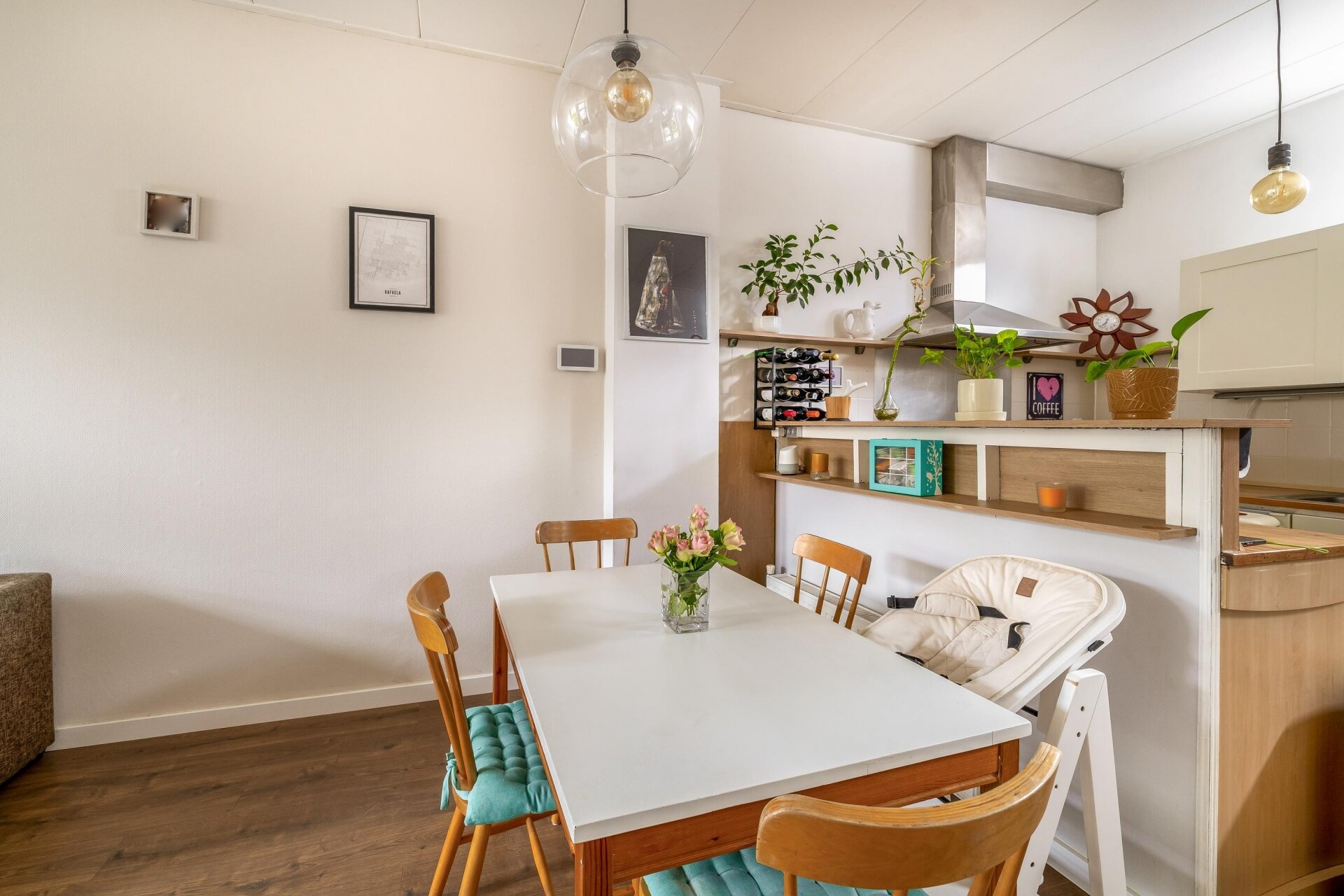 De woning beschikt over 77 m² woonoppervlakte wat verdeeld is over 2 woonlagen. Op de begane grond is een lichte woonkamer met open keuken te vinden. De keuken is voorzien van diverse inbouwapparatuur. Achter de keuken is een praktische bijkeuken waar zich de wasmachine bevindt. Separaat zijn het toilet en de berging te vinden.