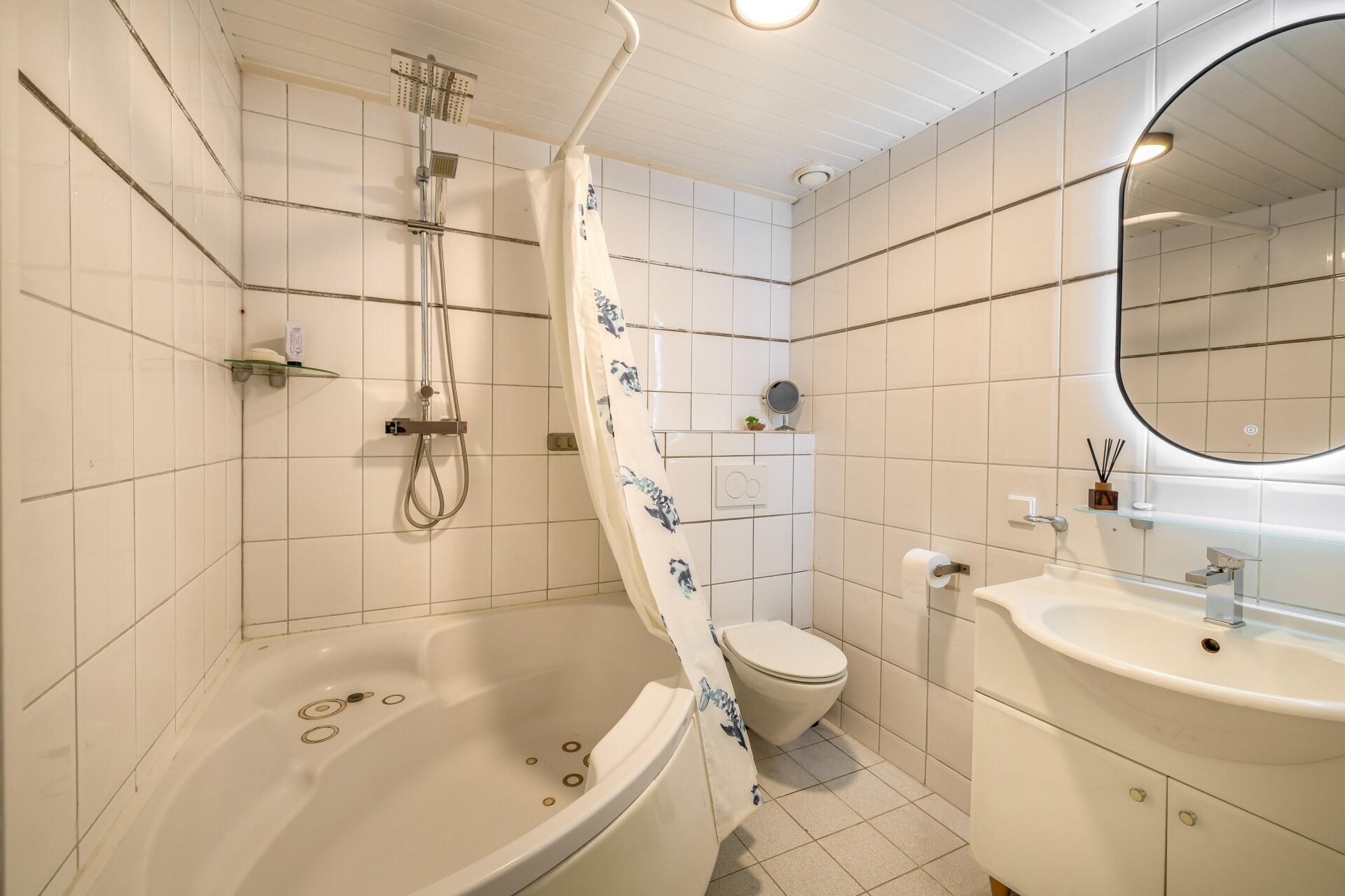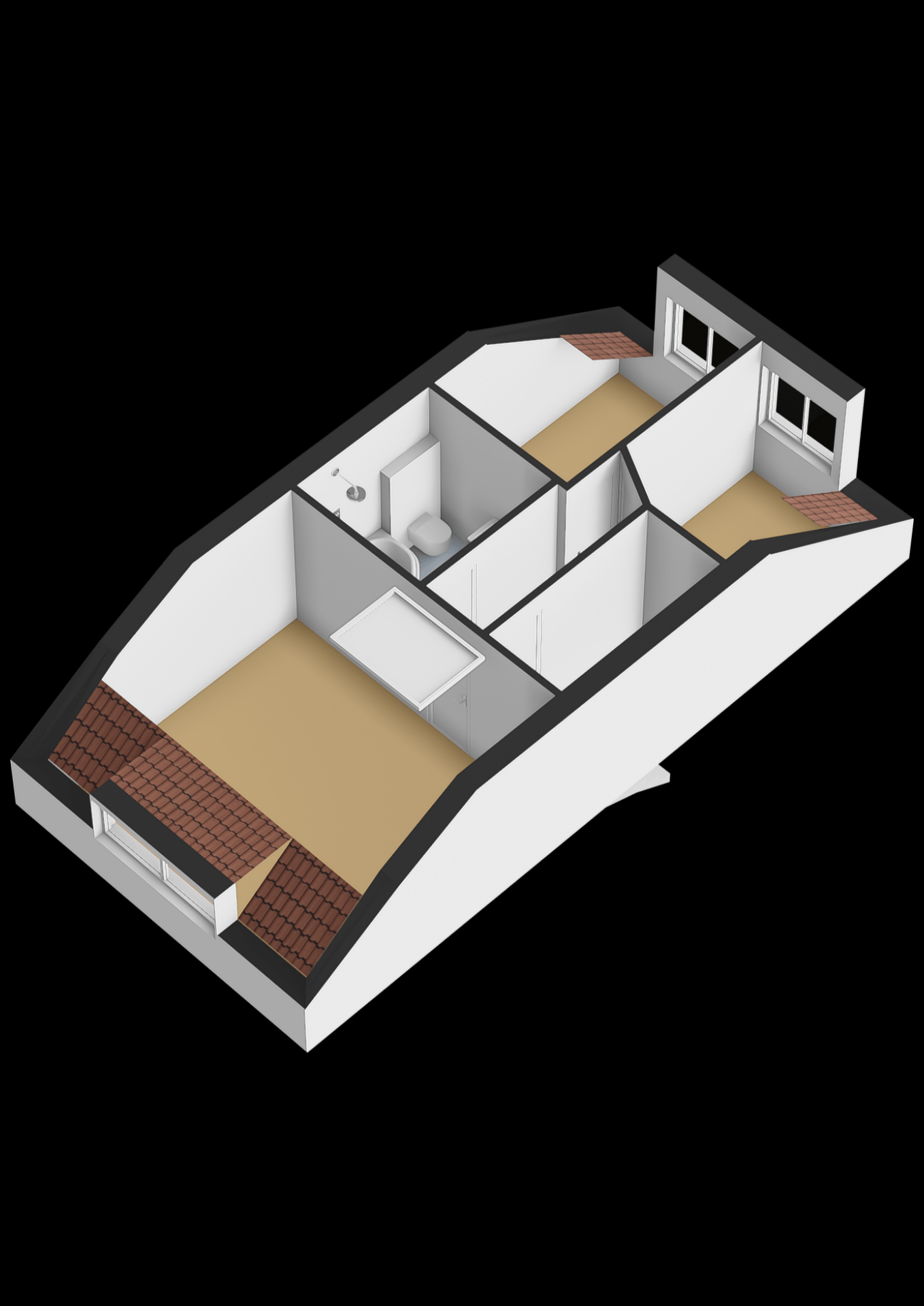 Op de eerste verdieping zijn 3 slaapkamers en een badkamer. De master bedroom ligt aan de voorzijde van de woning over de volledige breedte. Aan de achterzijde zijn de 2 andere slaapkamers gelegen. De centraal gelegen badkamer is volledig betegeld en voorzien van een ligbad met douchefunctie, een toilet en een wastafel met meubel.