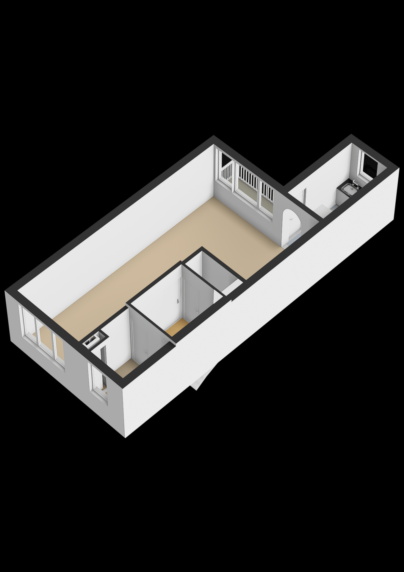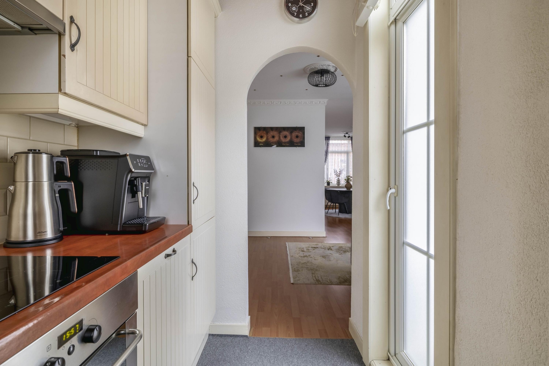 Bij binnenkomst valt direct op dat dit geen standaard appartement is. Via de eigen voordeur kom je in het trappenhuis naar de eerste verdieping. De woonkamer is L-vormig en lekker ruim opgezet, met voldoende plek voor zowel een zit- als eethoek. De aparte keuken ligt aan de achterzijde en is voorzien van een verzorgd keukenblok. Vanuit hier loop je zo het balkon op, een fijne plek om even buiten te zitten. Verder op deze verdieping een separaat toilet en een kleine kamer die nu in gebruik is als wasruimte.