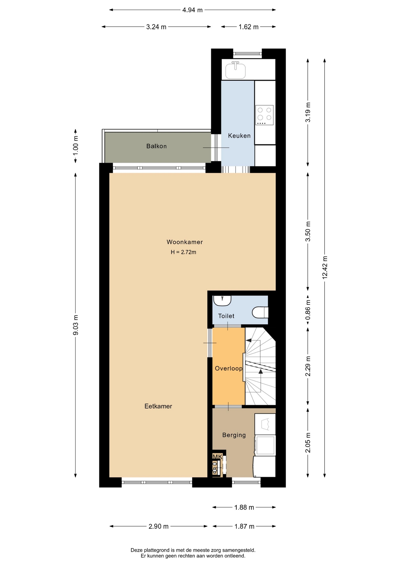 “Deze informatie is door ons met de nodige zorgvuldigheid samengesteld. Onzerzijds wordt echter geen enkele aansprakelijkheid aanvaard voor enige onvolledigheid, onjuistheid of anderszins, dan wel de gevolgen daarvan. Alle opgegeven maten en oppervlakten zijn indicatief.”