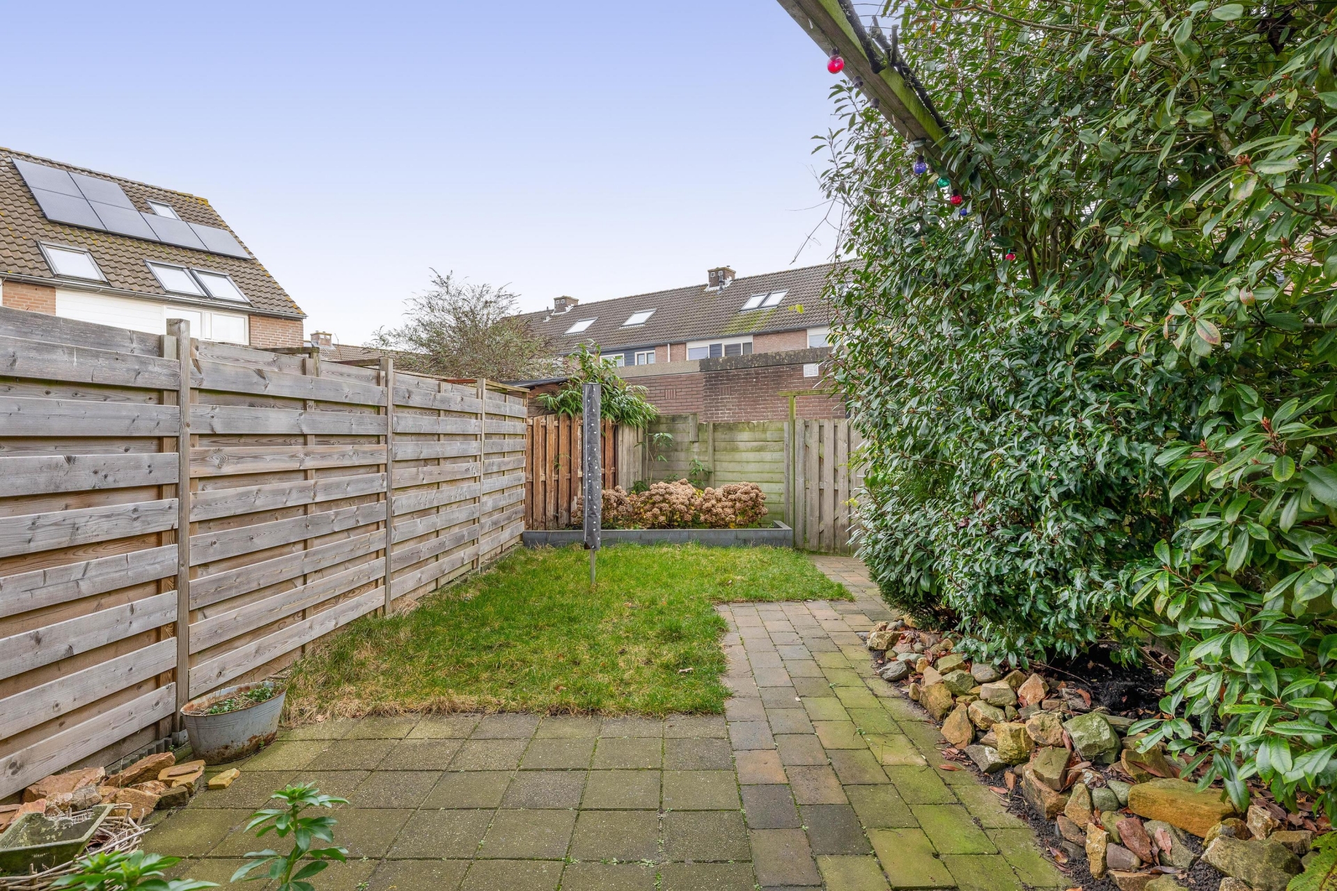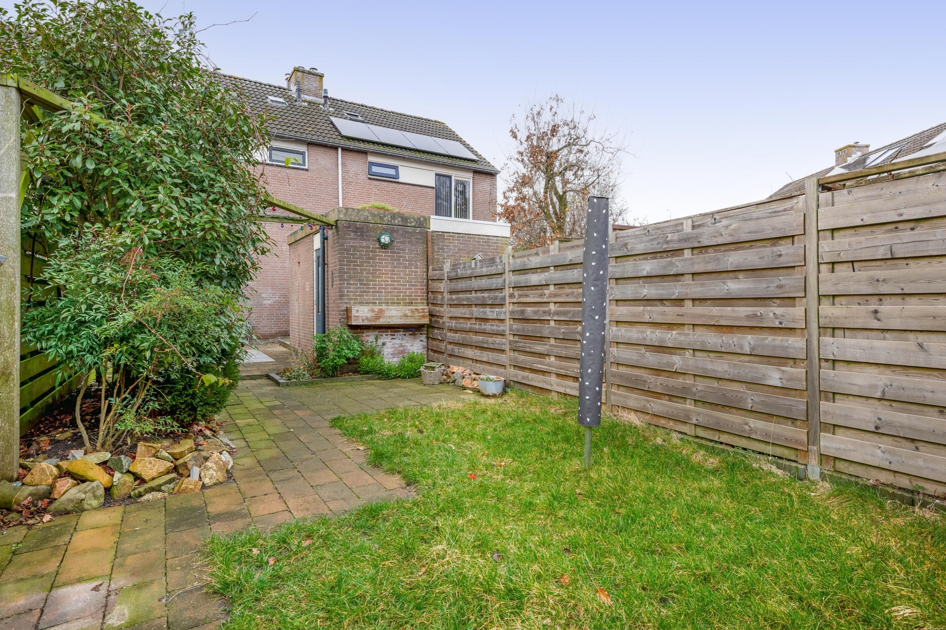 Een van de grootste pluspunten van dit huis is de diepe achtertuin van ruim 15 meter. De tuin ligt op het noordoosten en biedt door zijn lengte de hele dag door zon én schaduw. Tevens vindt je hier de stenen berging, voorzien van elektra – ideaal voor fietsen, tuingereedschap of als klusruimte. Via de achterom heb je gemakkelijk toegang vanaf het achterpad.