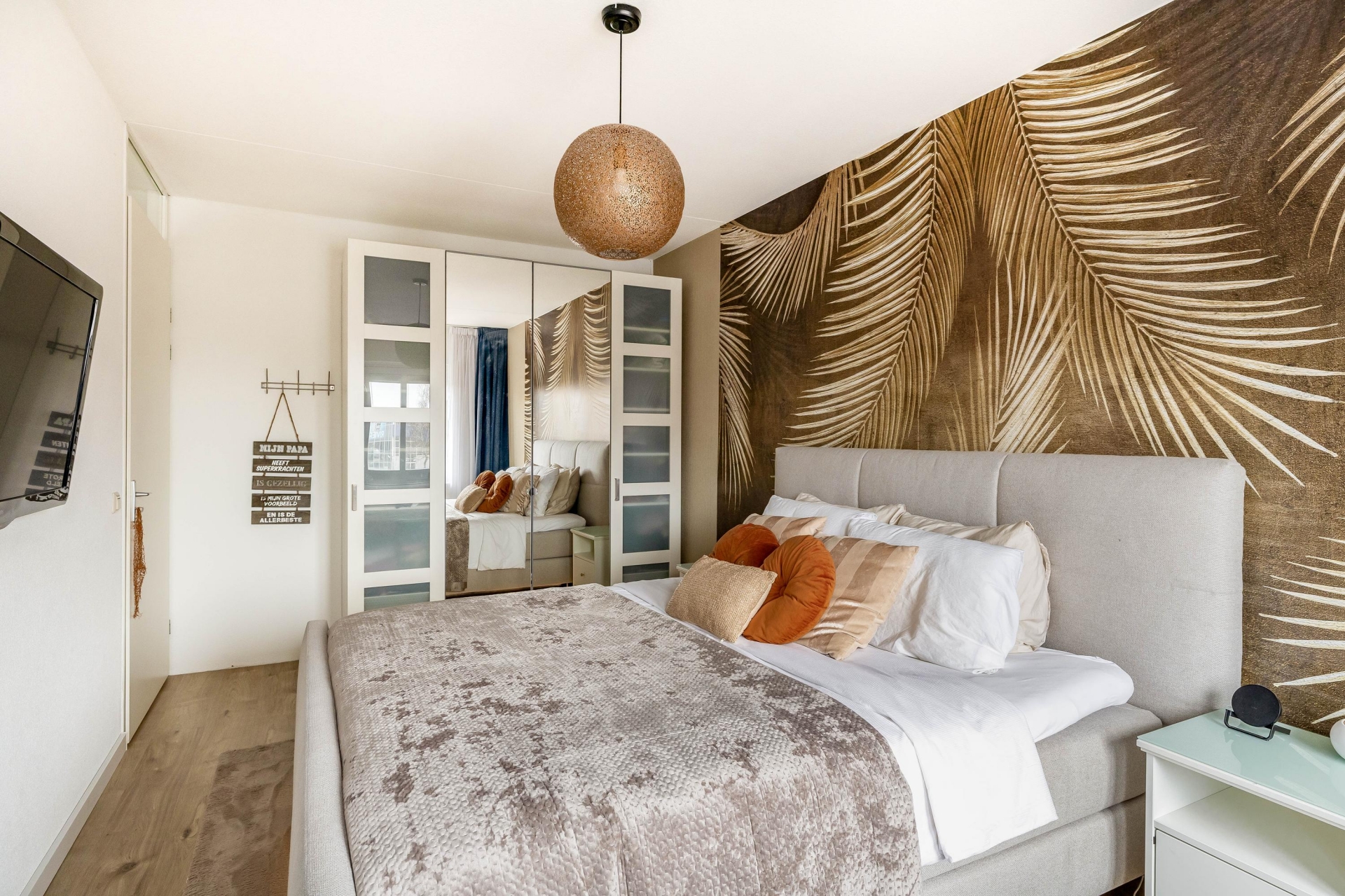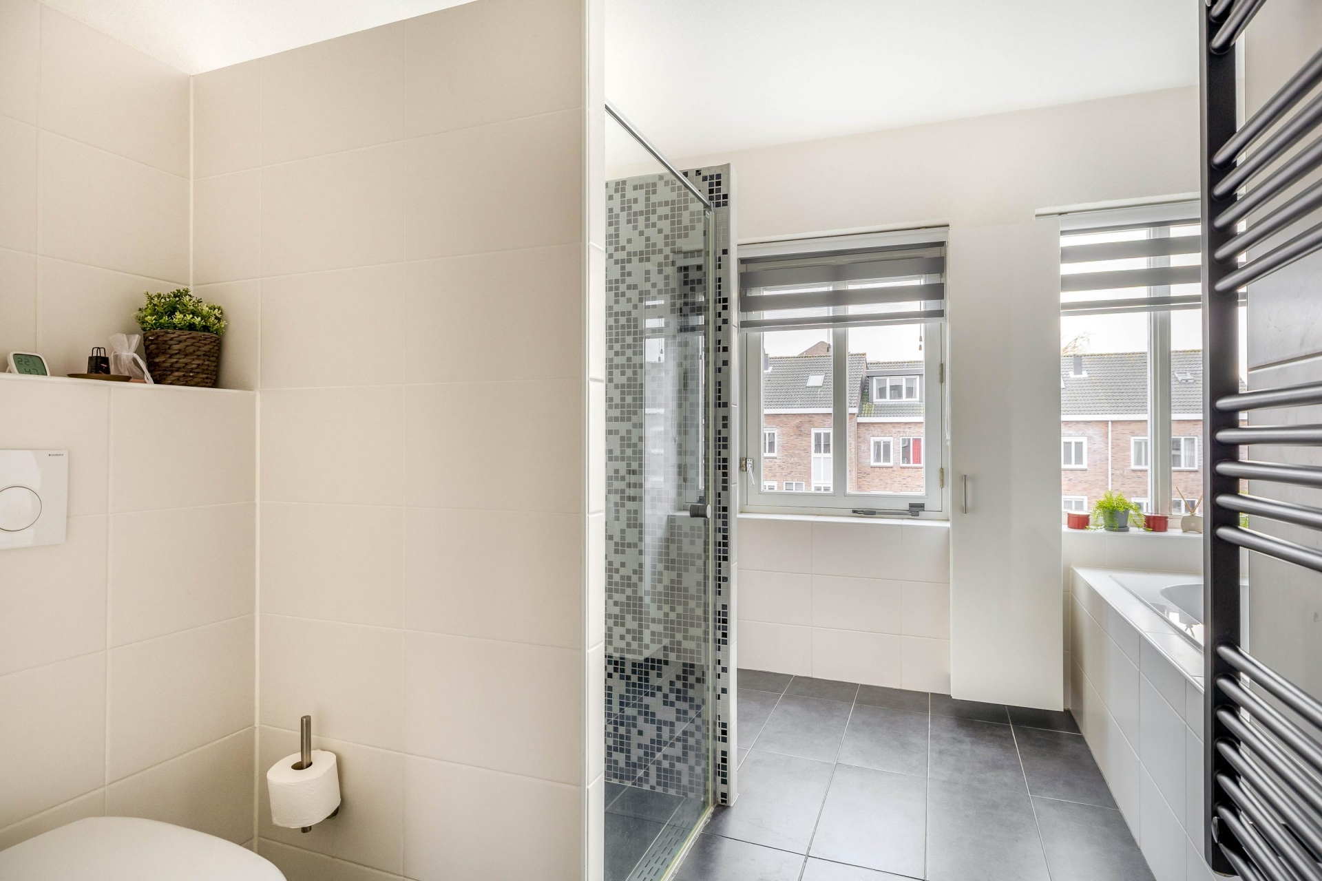 Op de tweede verdieping vind je drie ruime slaapkamers. De hoofdslaapkamer aan de achterzijde springt eruit met zijn warme accentmuur en grote kast. De overige twee kamers zijn perfect als kinderkamer, logeerkamer of werkkamer. De badkamer is ruim en modern, met dubbele wastafel, inloopdouche met regendouche, ligbad en toilet.