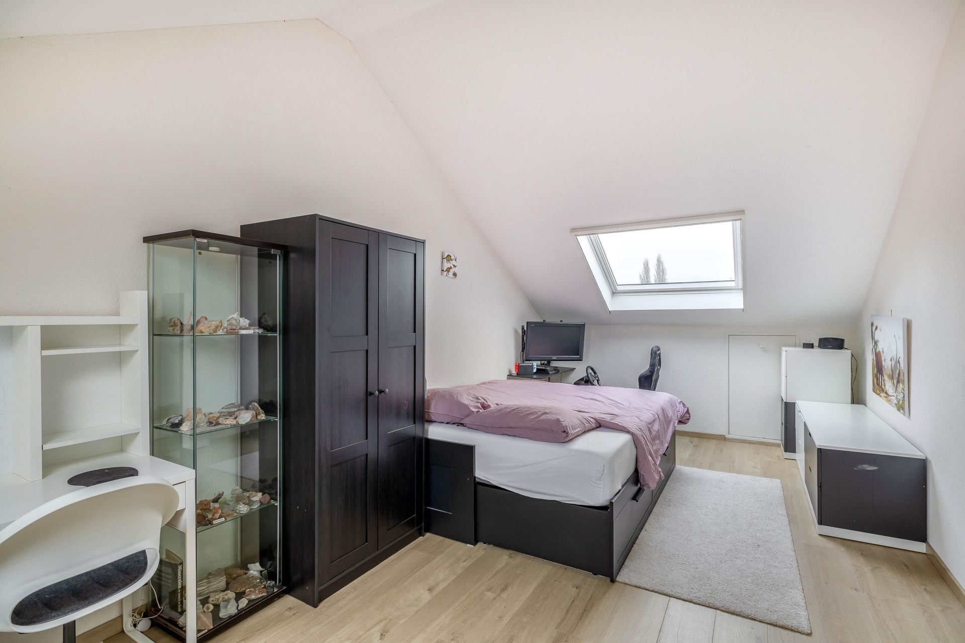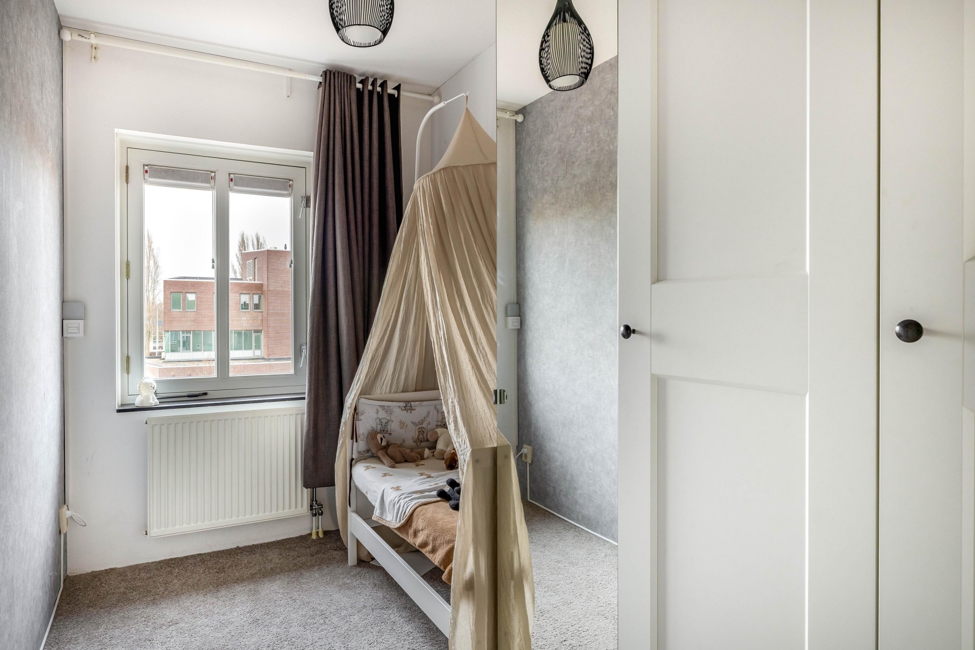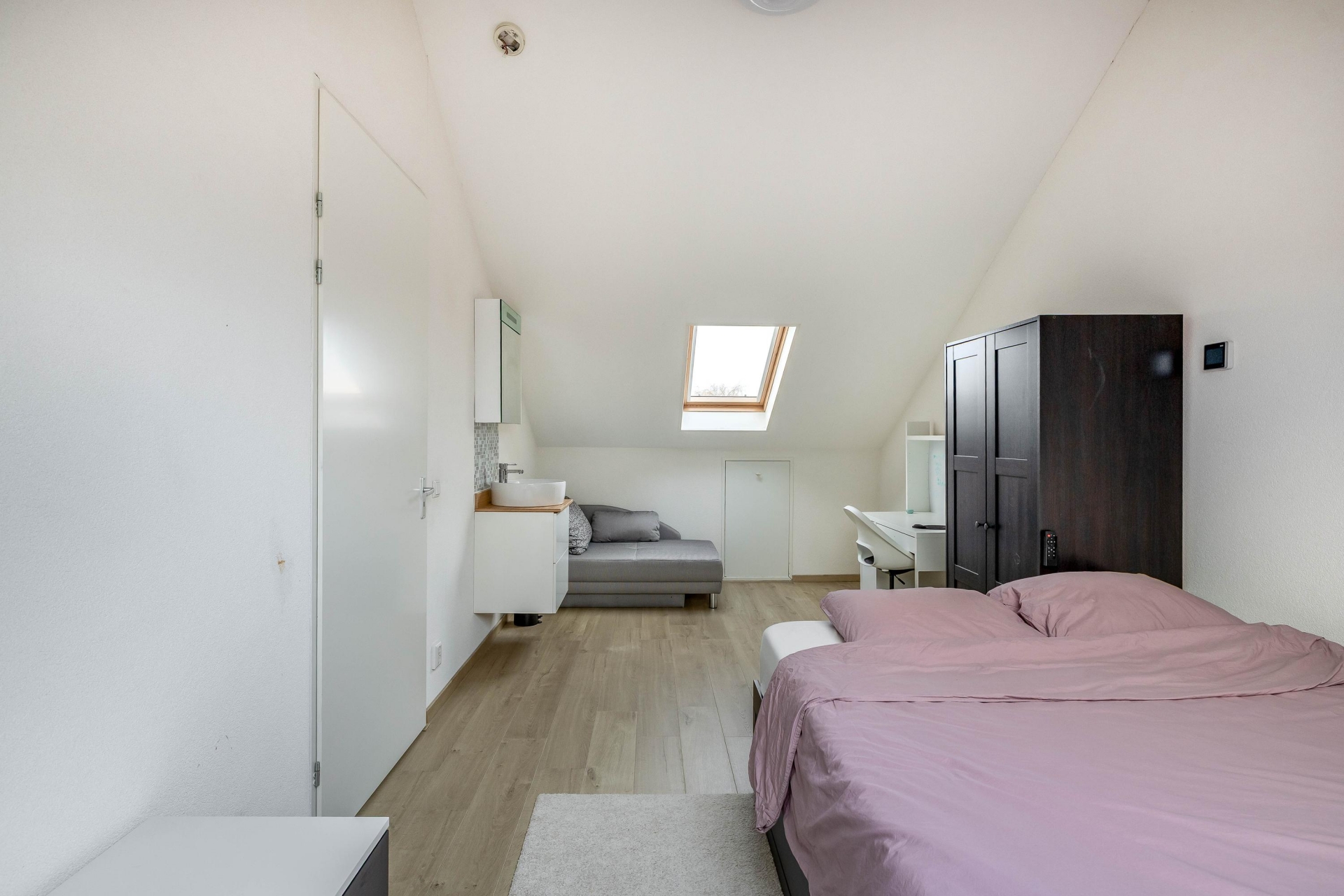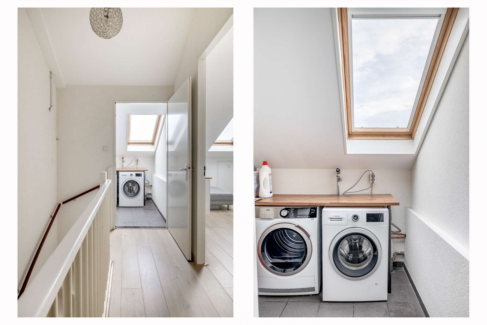 De derde verdieping telt nog eens een royale slaapkamer met dakramen en een aparte wasruimte met opstelling voor wasmachine en droger onder het dakraam. Dankzij de slimme indeling en nette afwerking is ook deze verdieping volledig functioneel als woonverdieping.