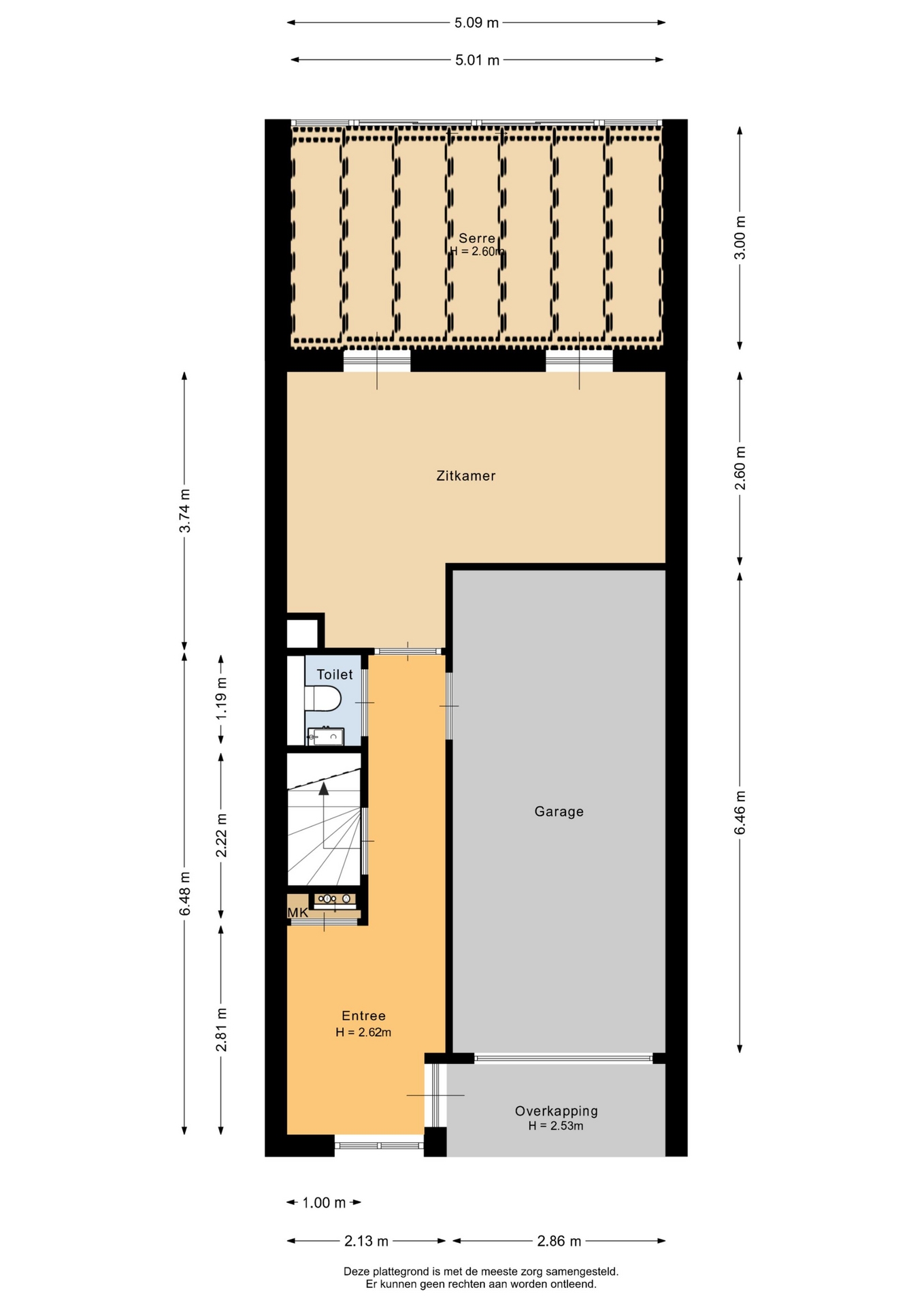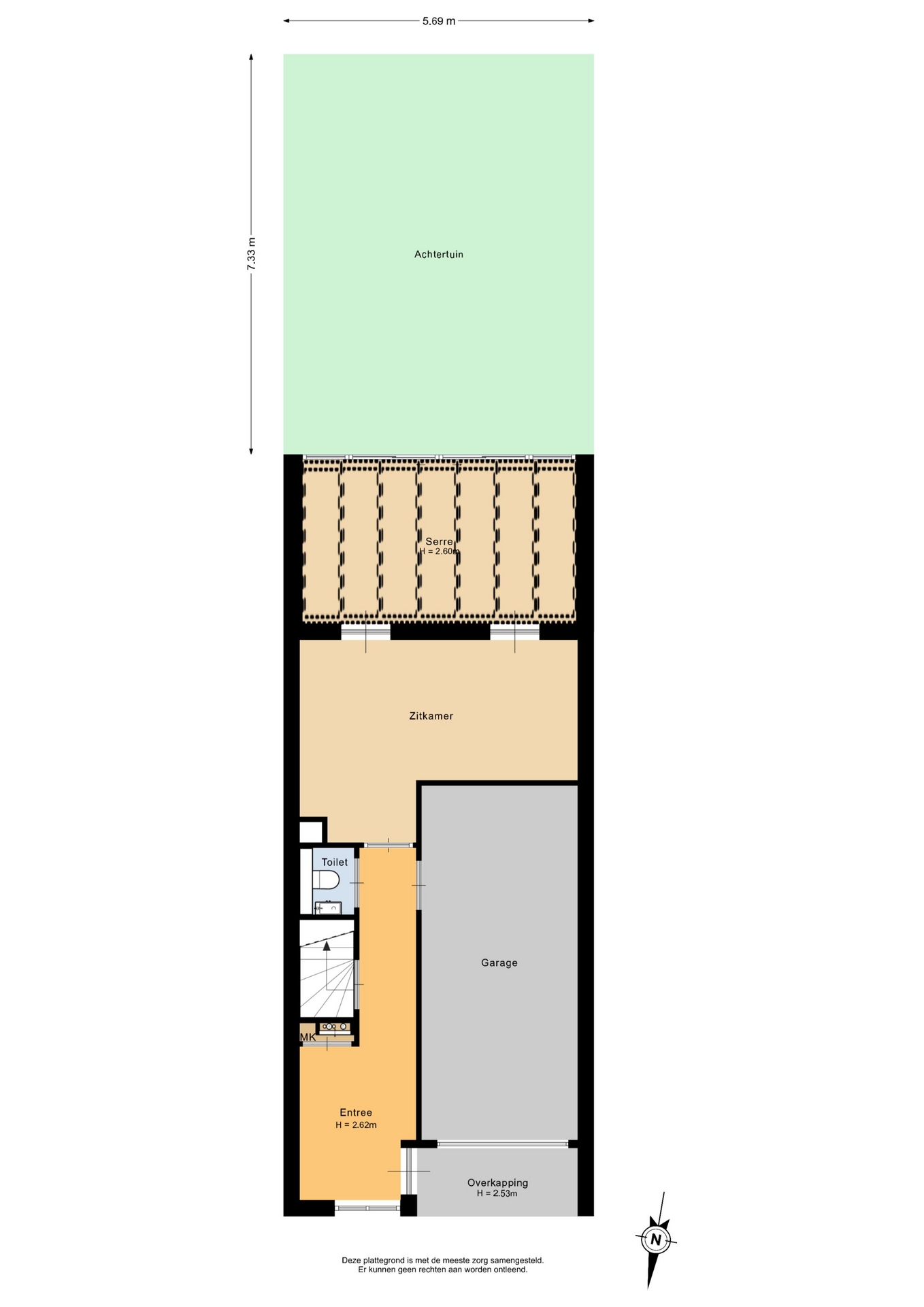 Op de begane grond vind je de entree met hal, luxe toilet en trapopgang. Aan de achterzijde bevindt zich een ruime zit-/tuinkamer met toegang tot de sfeervolle serre. De inpandige garage aan de voorzijde is voorzien van een elektrische garagedeur en elektra, volledig geïsoleerd en daarmee ook inzetbaar als opslag, werkruimte of sporthoek.