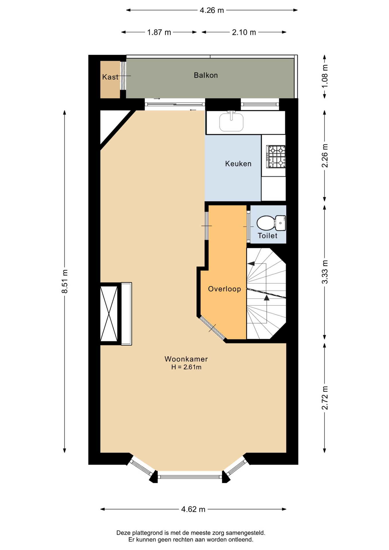 “Deze informatie is door ons met de nodige zorgvuldigheid samengesteld. Onzerzijds wordt echter geen enkele aansprakelijkheid aanvaard voor enige onvolledigheid, onjuistheid of anderszins, dan wel de gevolgen daarvan. Alle opgegeven maten en oppervlakten zijn indicatief.”