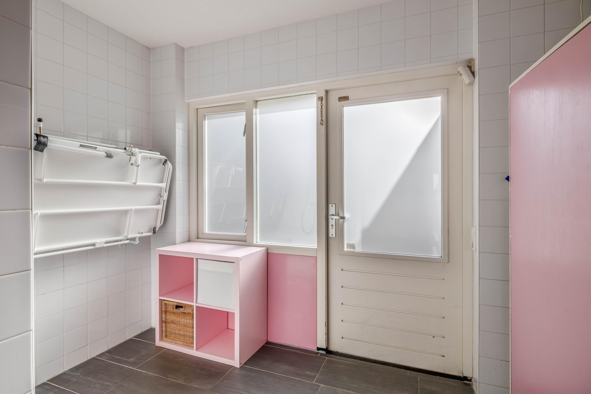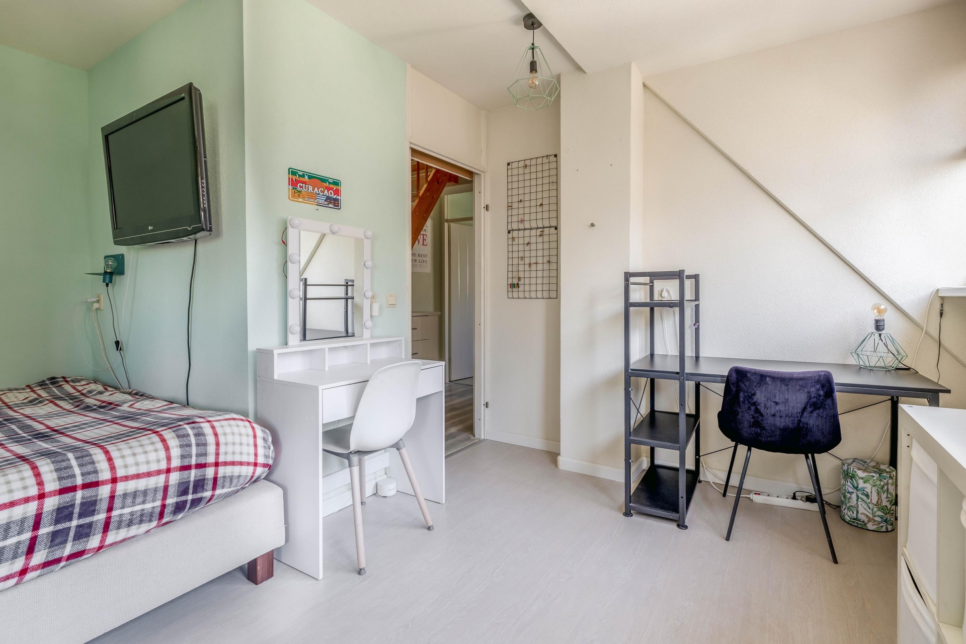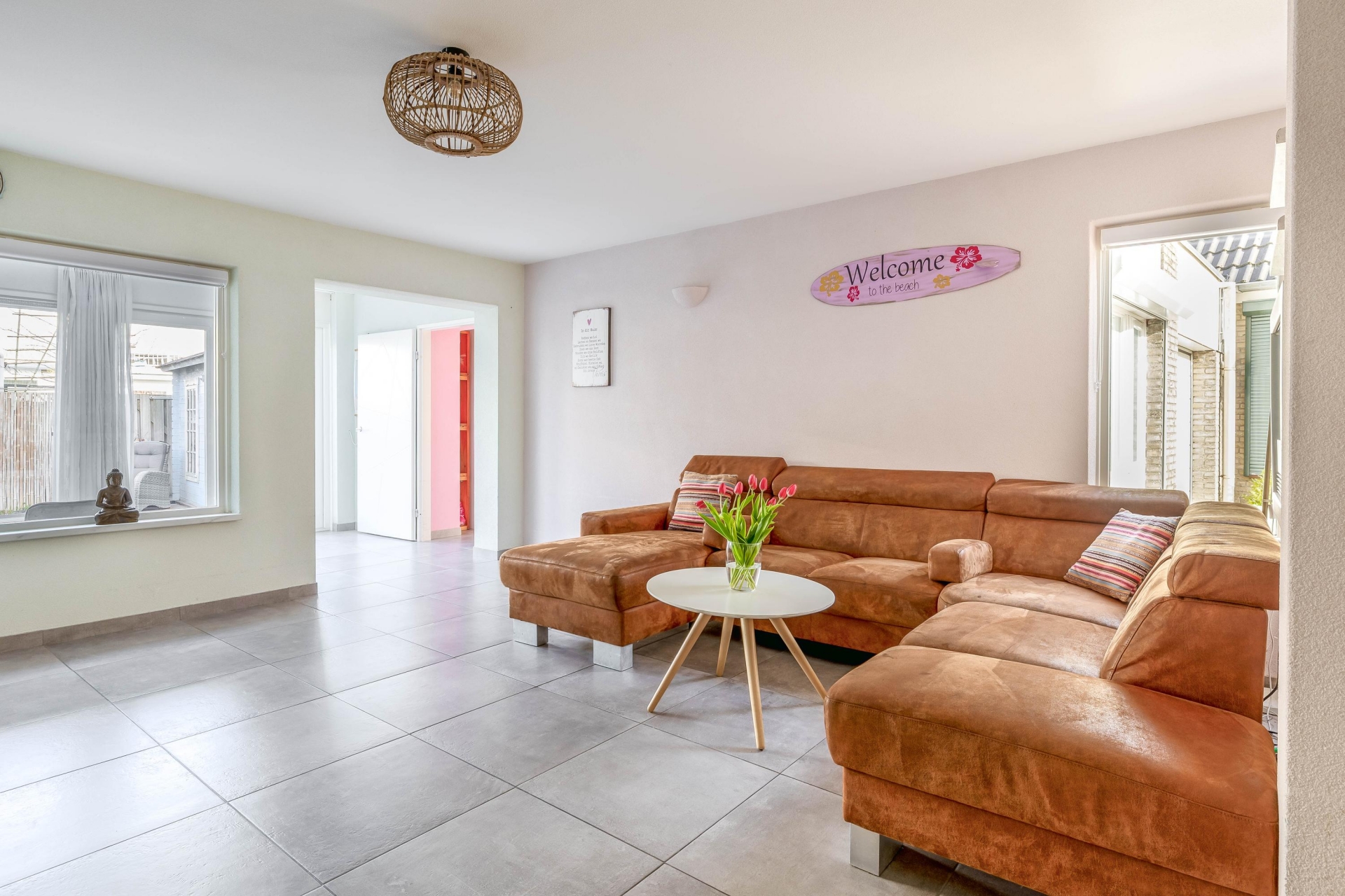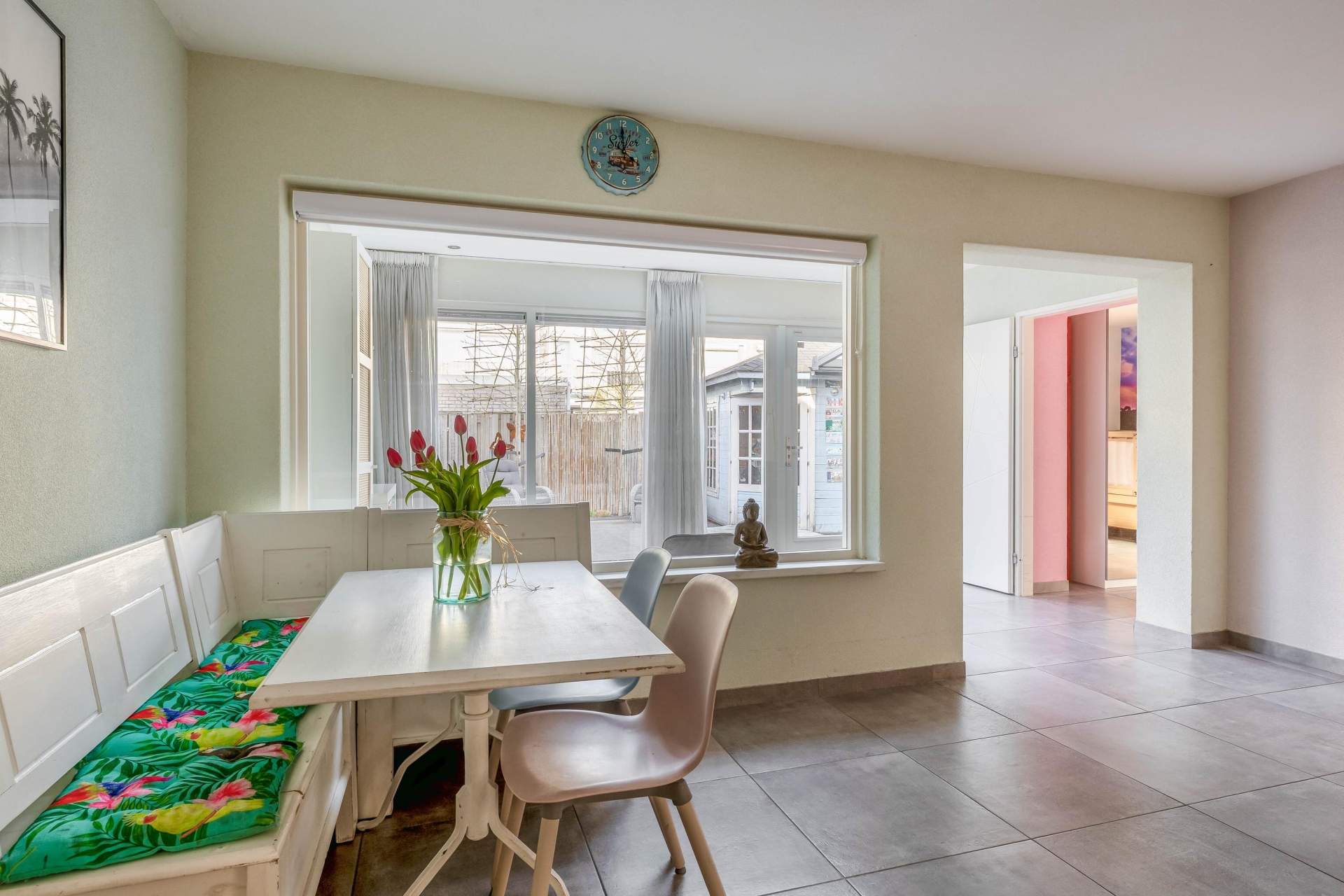 Aan de achterzijde bevindt zich de multifunctionele ruimte. Deze is nu in gebruik als extra kamer, maar kan net zo goed dienen als werkplek, speelkamer of hobbyruimte. Dankzij de openslaande deuren naar de tuin is dit een fijne, lichte plek in huis.
