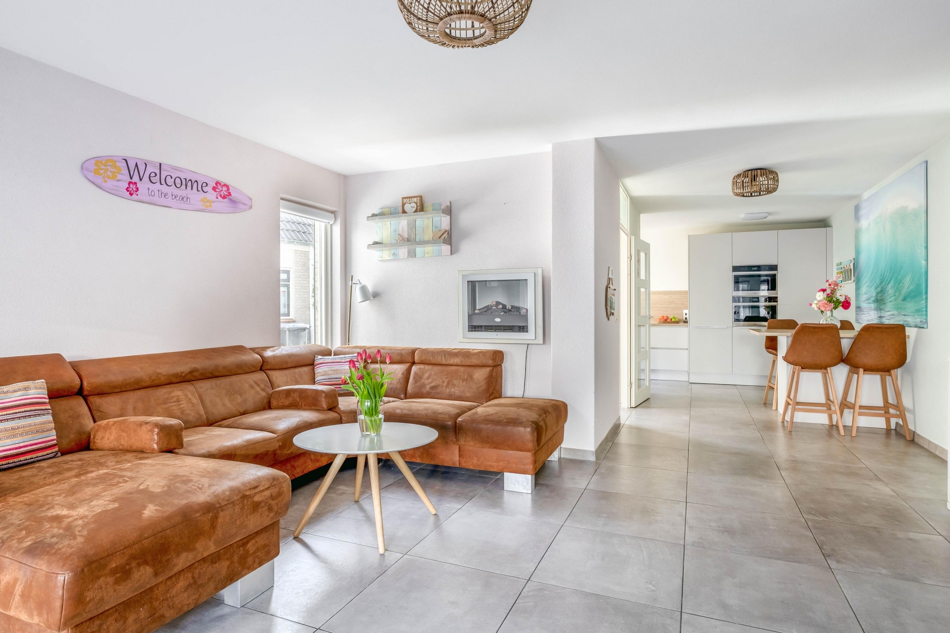 Royale leefruimte met moderne keuken