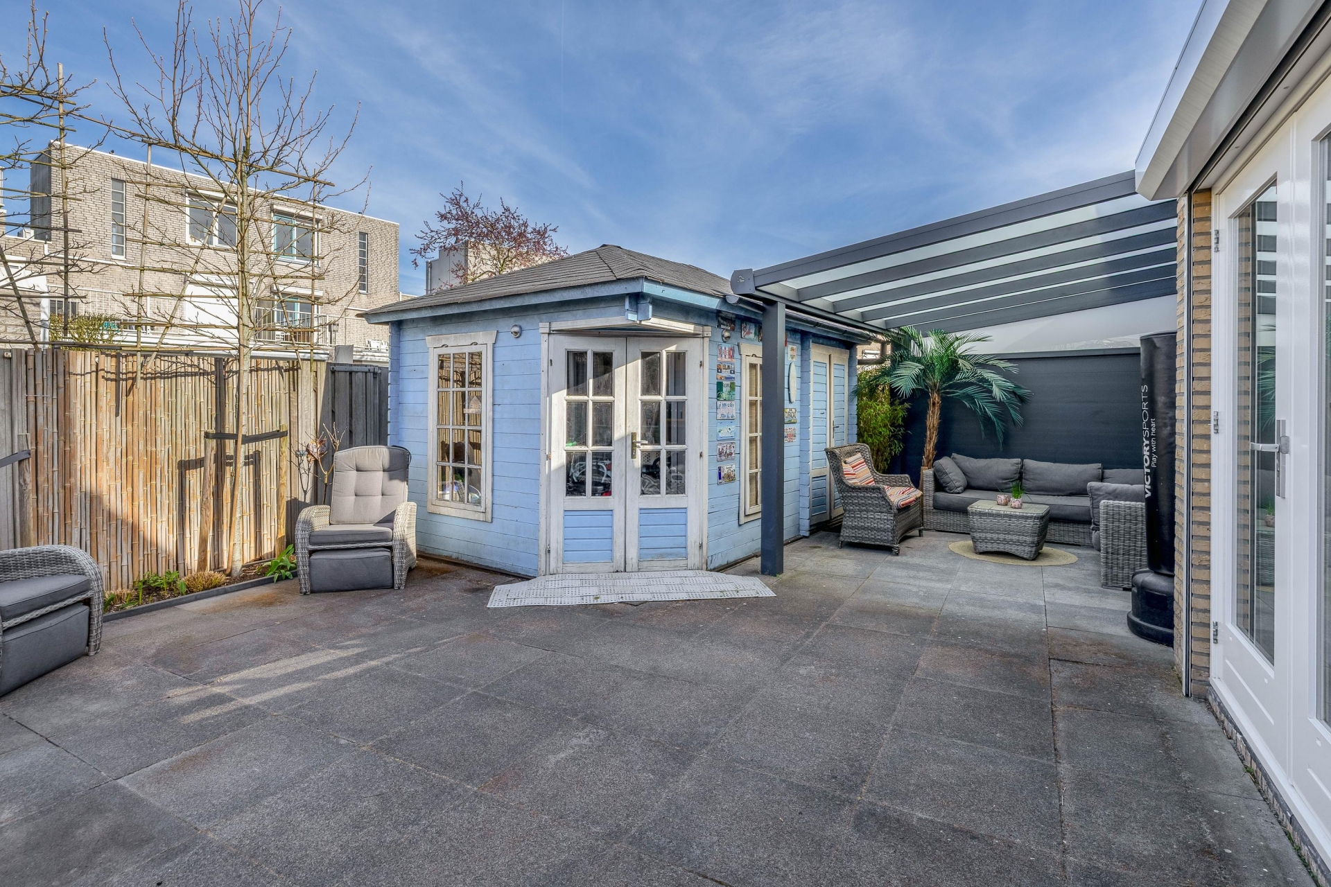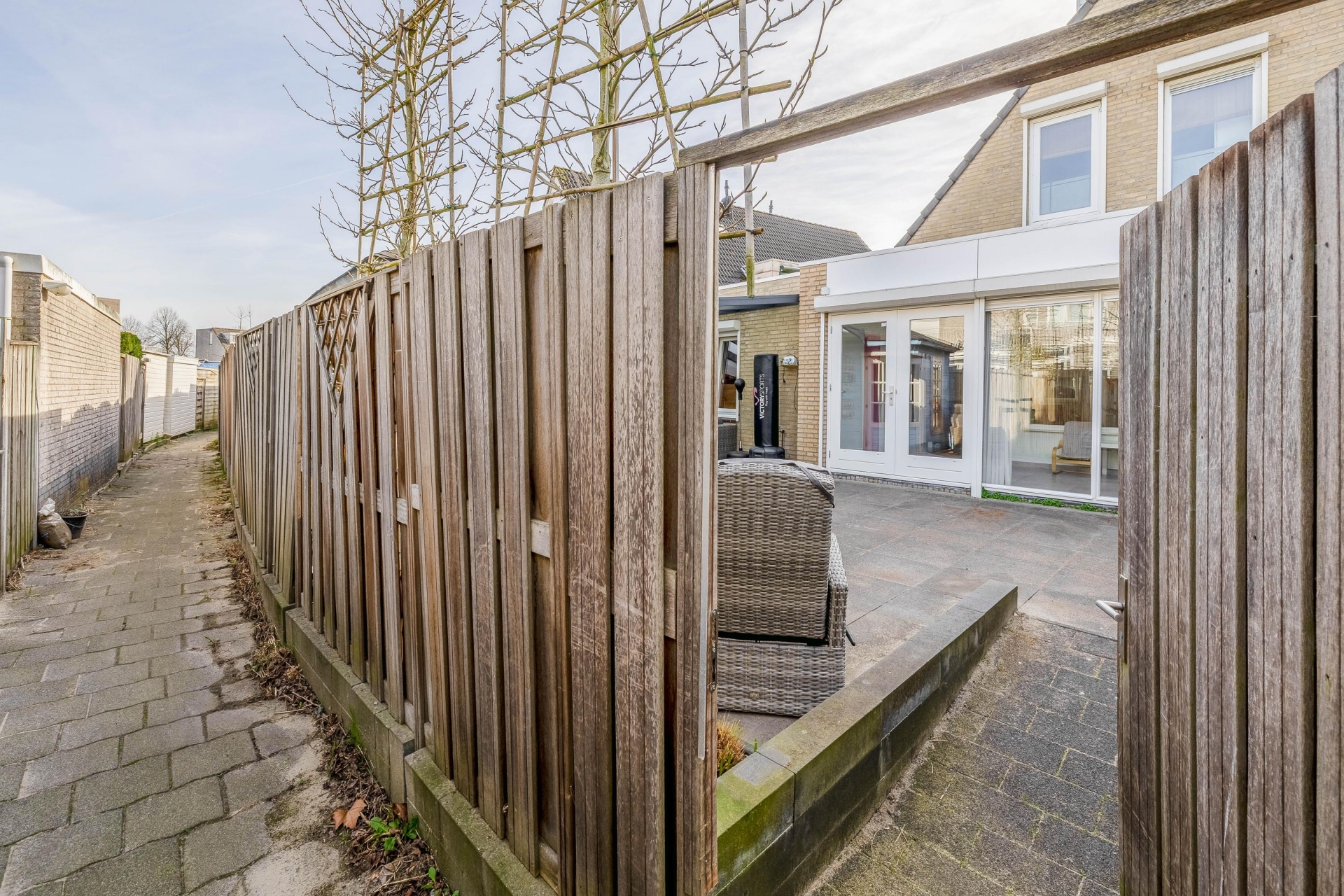 Achterin de tuin vind je een praktische berging en extra kastruimte. Ideaal voor het opbergen van fietsen, gereedschap of tuinmeubilair. Via de achterom is de tuin bovendien goed bereikbaar.