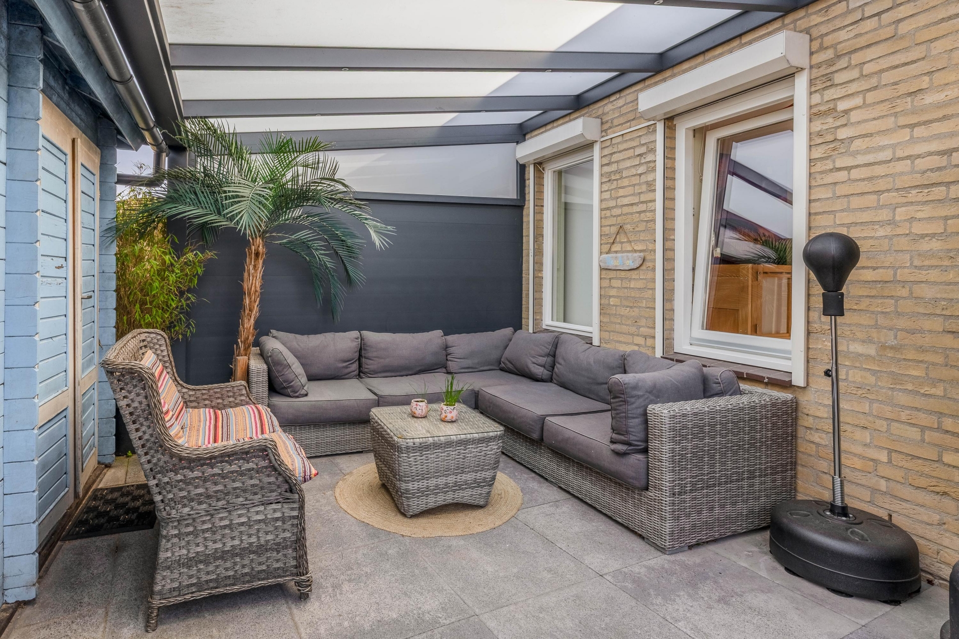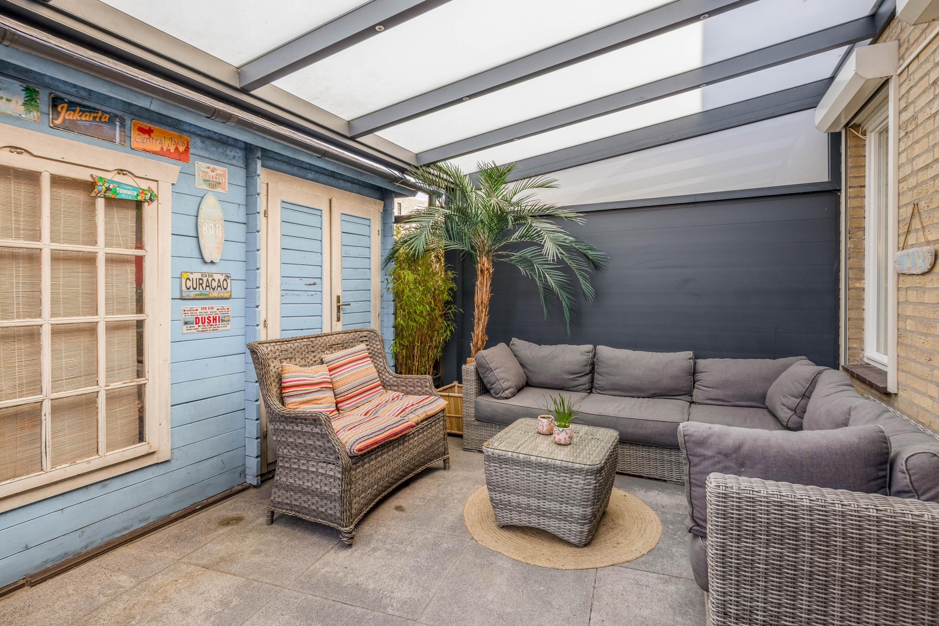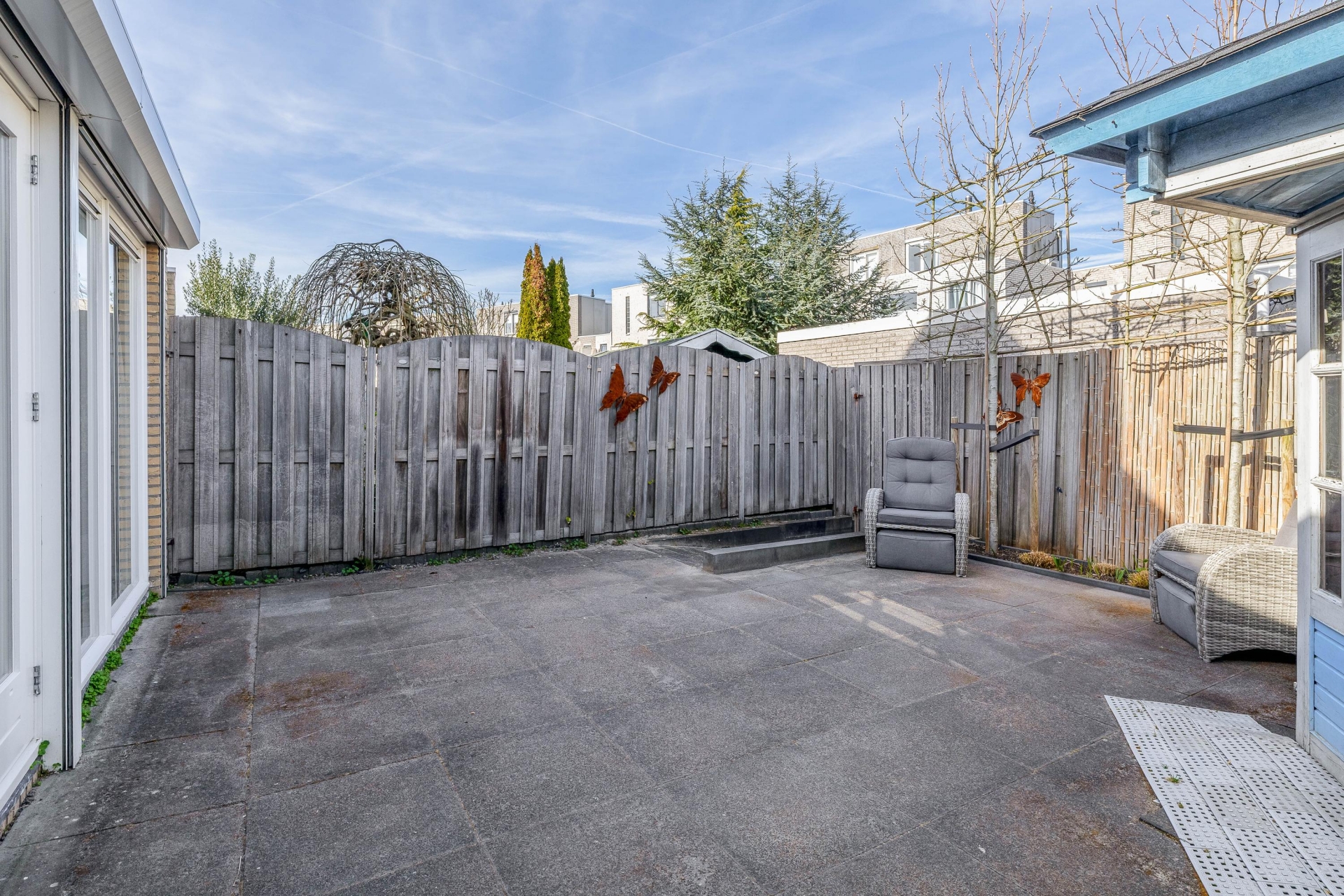 De achtertuin is gelegen op het noordoosten en is verrassend ruim. Dankzij de breedte en diepte kun je hier op verschillende plekken zitten, of je nu van de zon wilt genieten of juist de schaduw opzoekt. De overkapping maakt het mogelijk om ook bij minder weer lekker buiten te zitten.