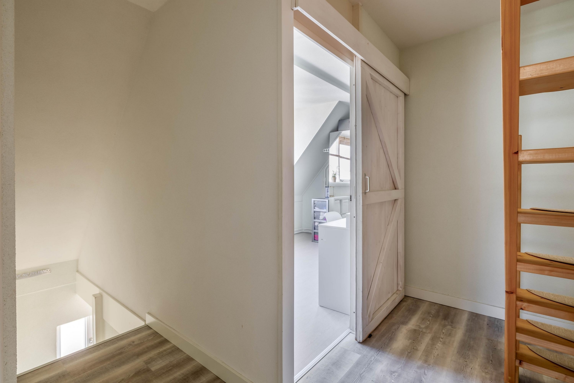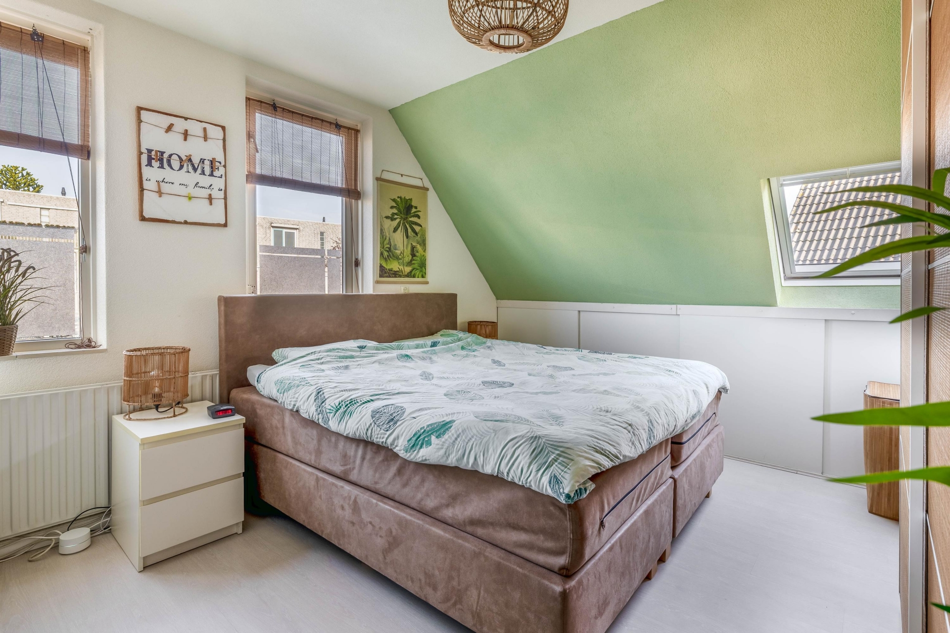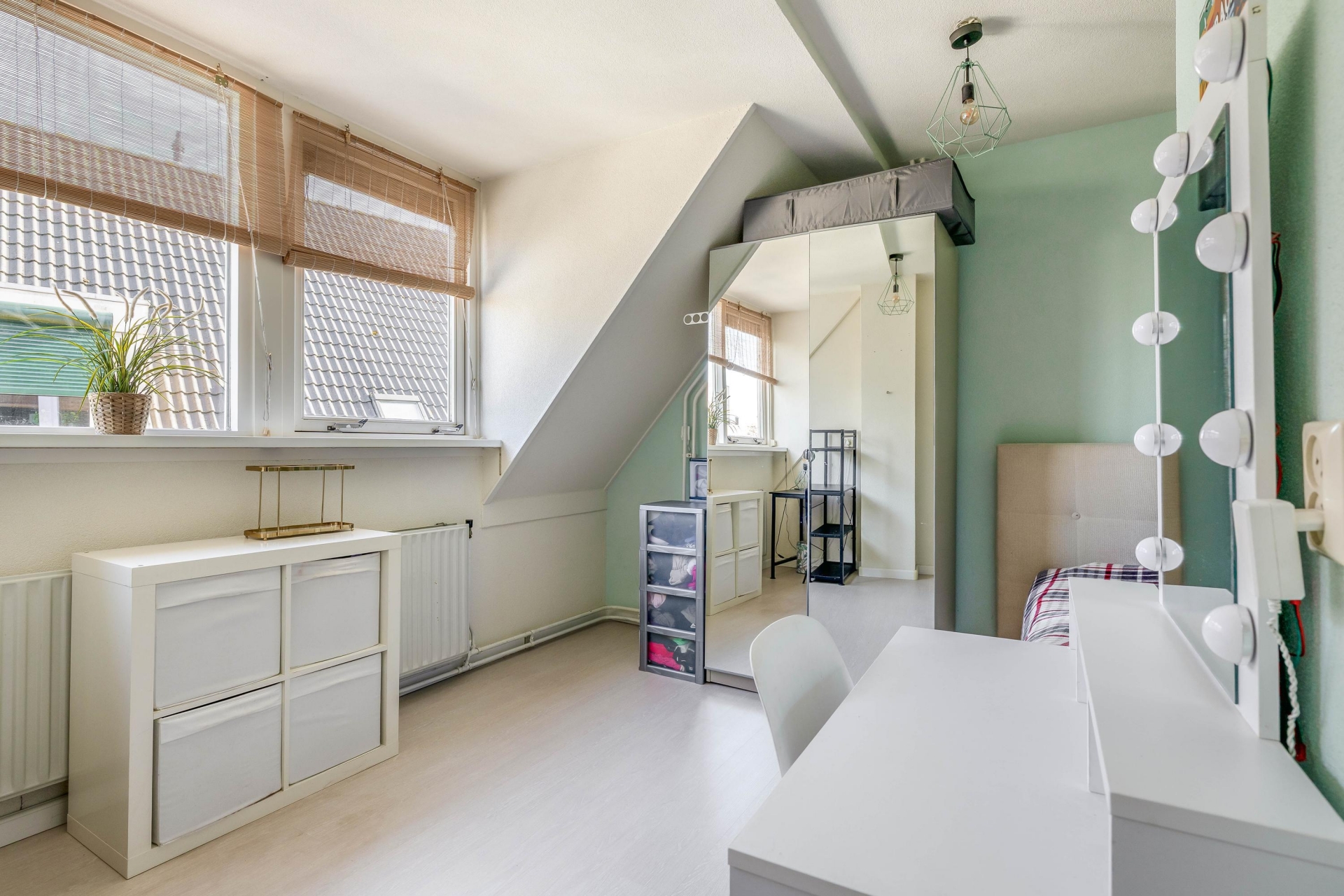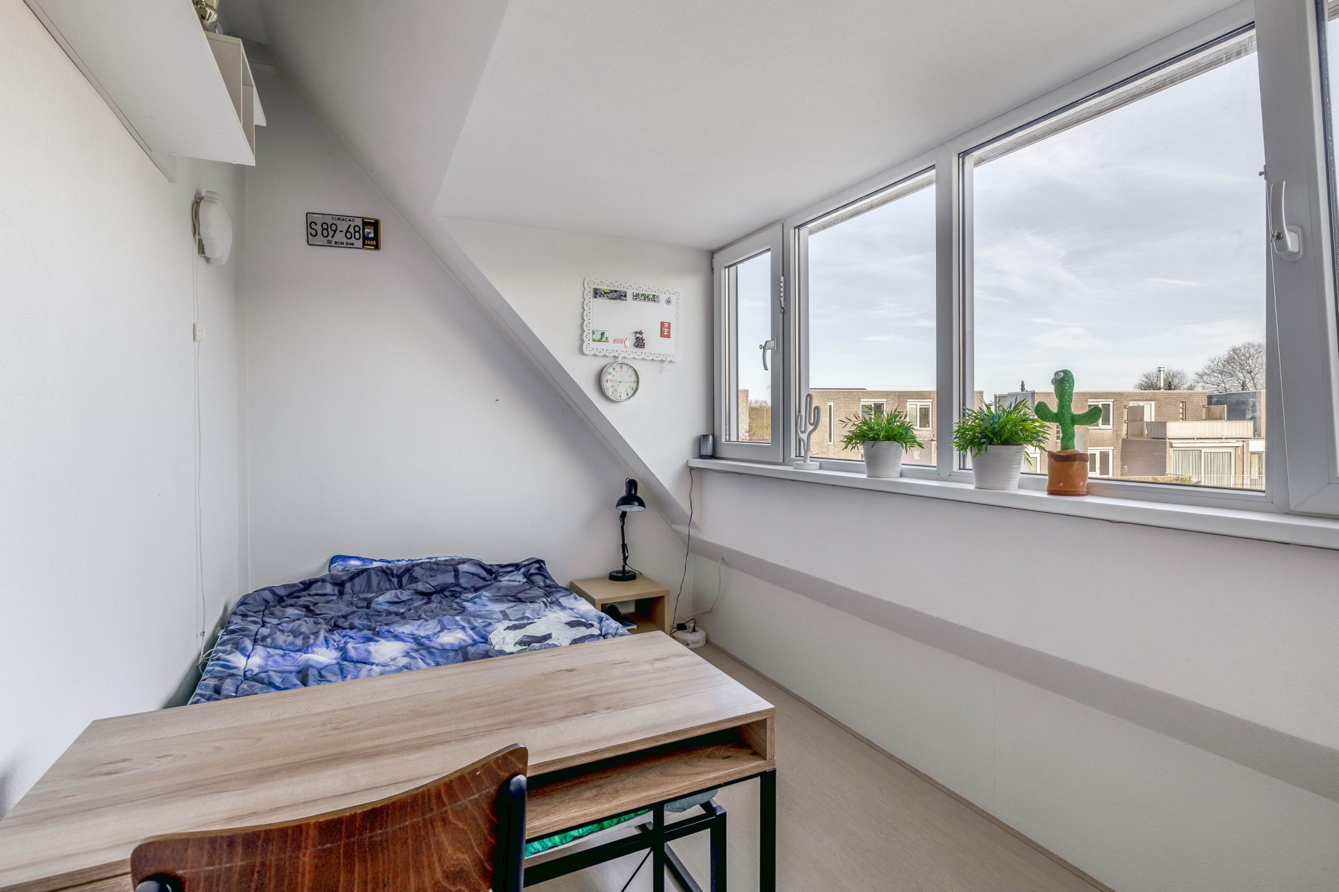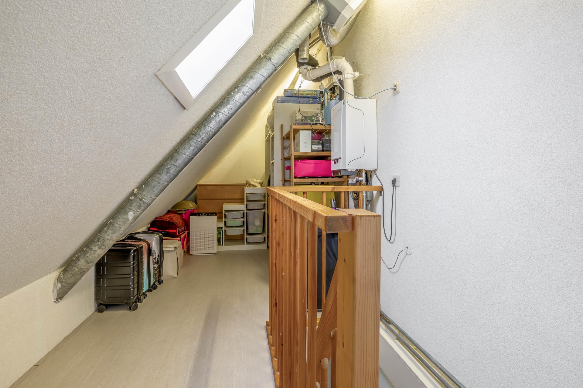 De tweede verdieping is bereikbaar via een vaste trap en is een volwaardige extra woonlaag dankzij de kunststof dakkapel uit 2017. Hier is nog een ruime slaapkamer gerealiseerd, aangevuld met een overloop waar je extra bergruimte hebt en de opstelling van de cv-ketel vindt. Ook hier merk je dat de ruimte optimaal is benut.