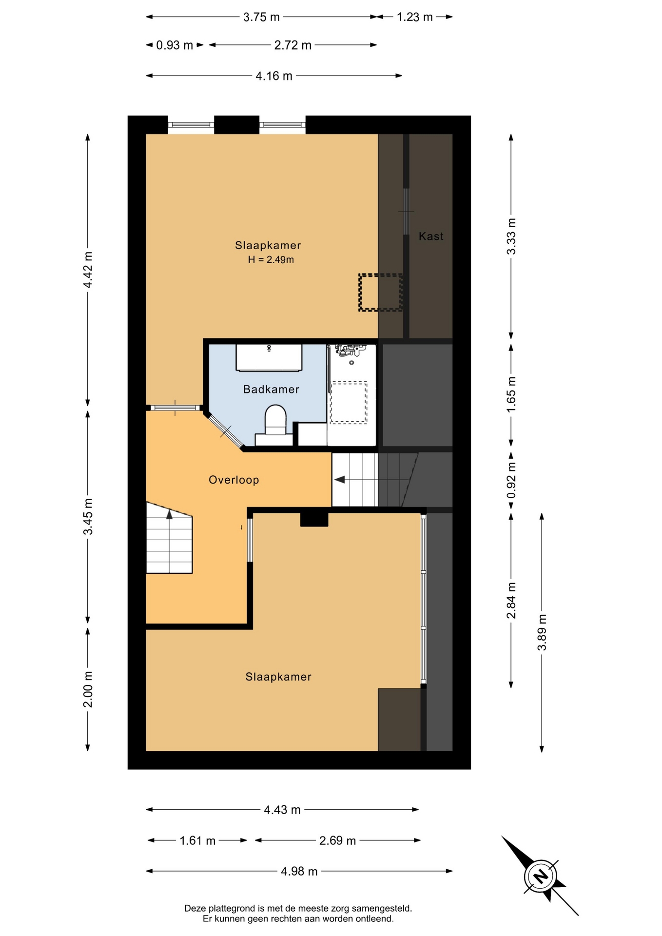 “Deze informatie is door ons met de nodige zorgvuldigheid samengesteld. Onzerzijds wordt echter geen enkele aansprakelijkheid aanvaard voor enige onvolledigheid, onjuistheid of anderszins, dan wel de gevolgen daarvan. Alle opgegeven maten en oppervlakten zijn indicatief.”