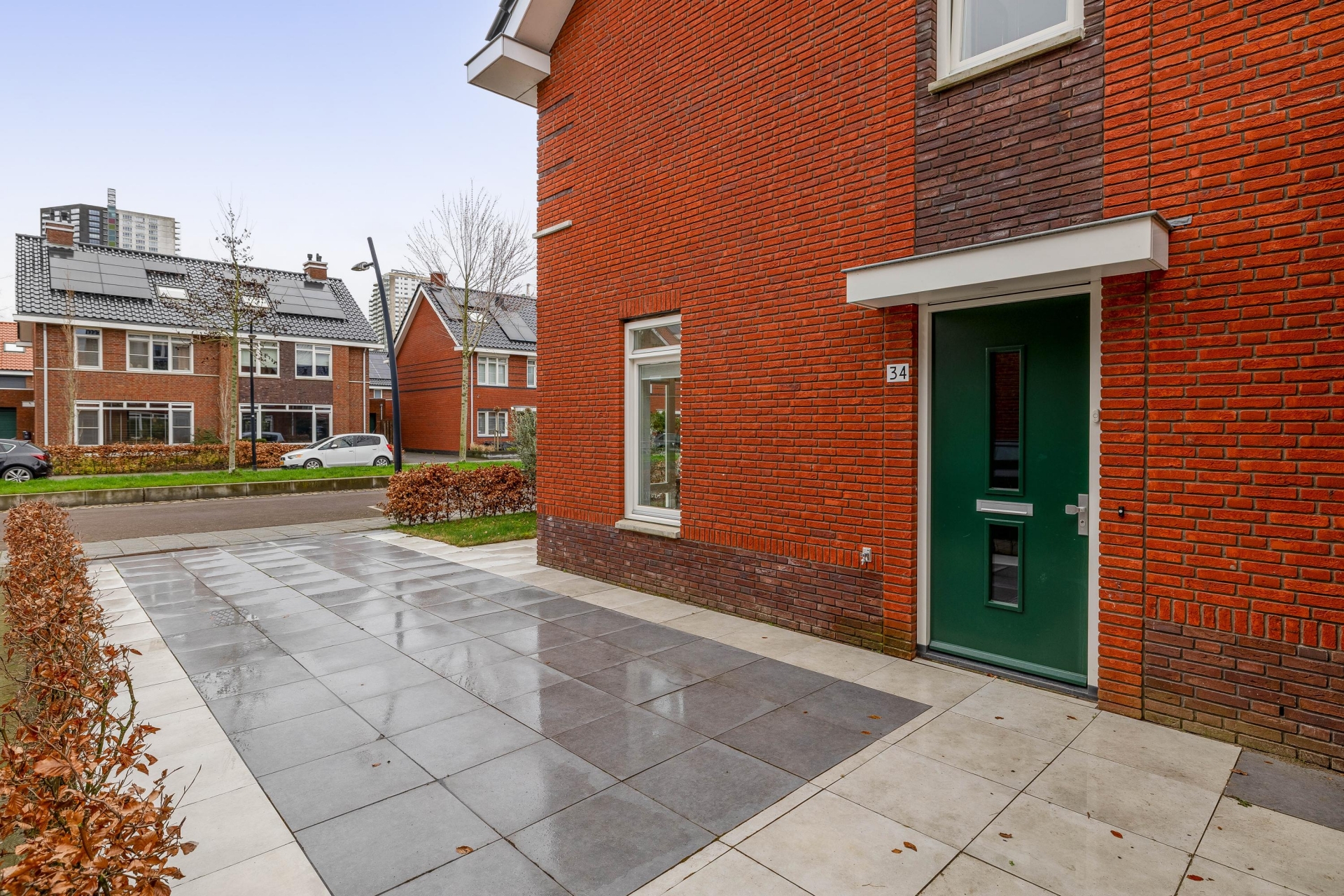 Aan de voorzijde parkeer je eenvoudig op eigen terrein — wel zo prettig.
