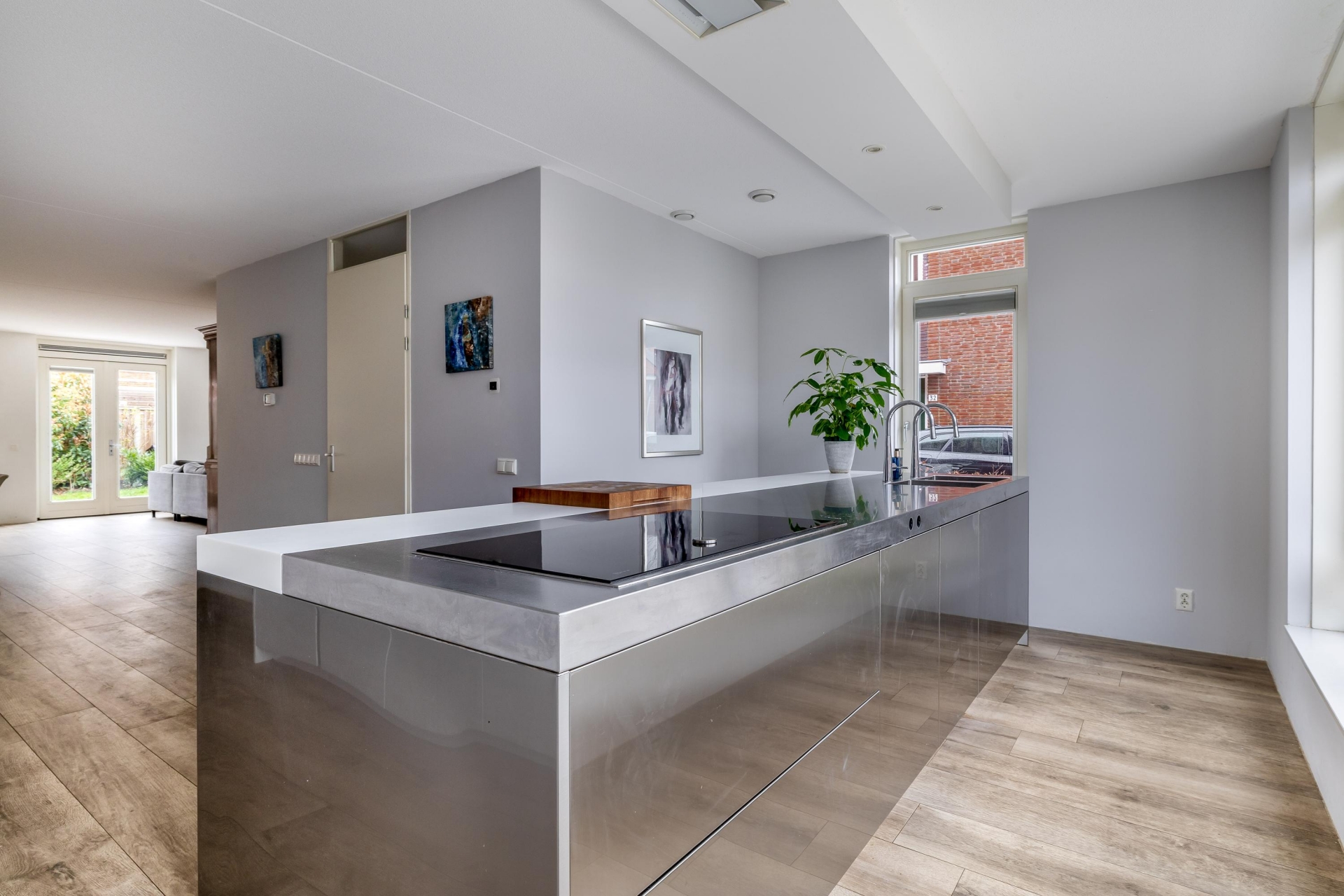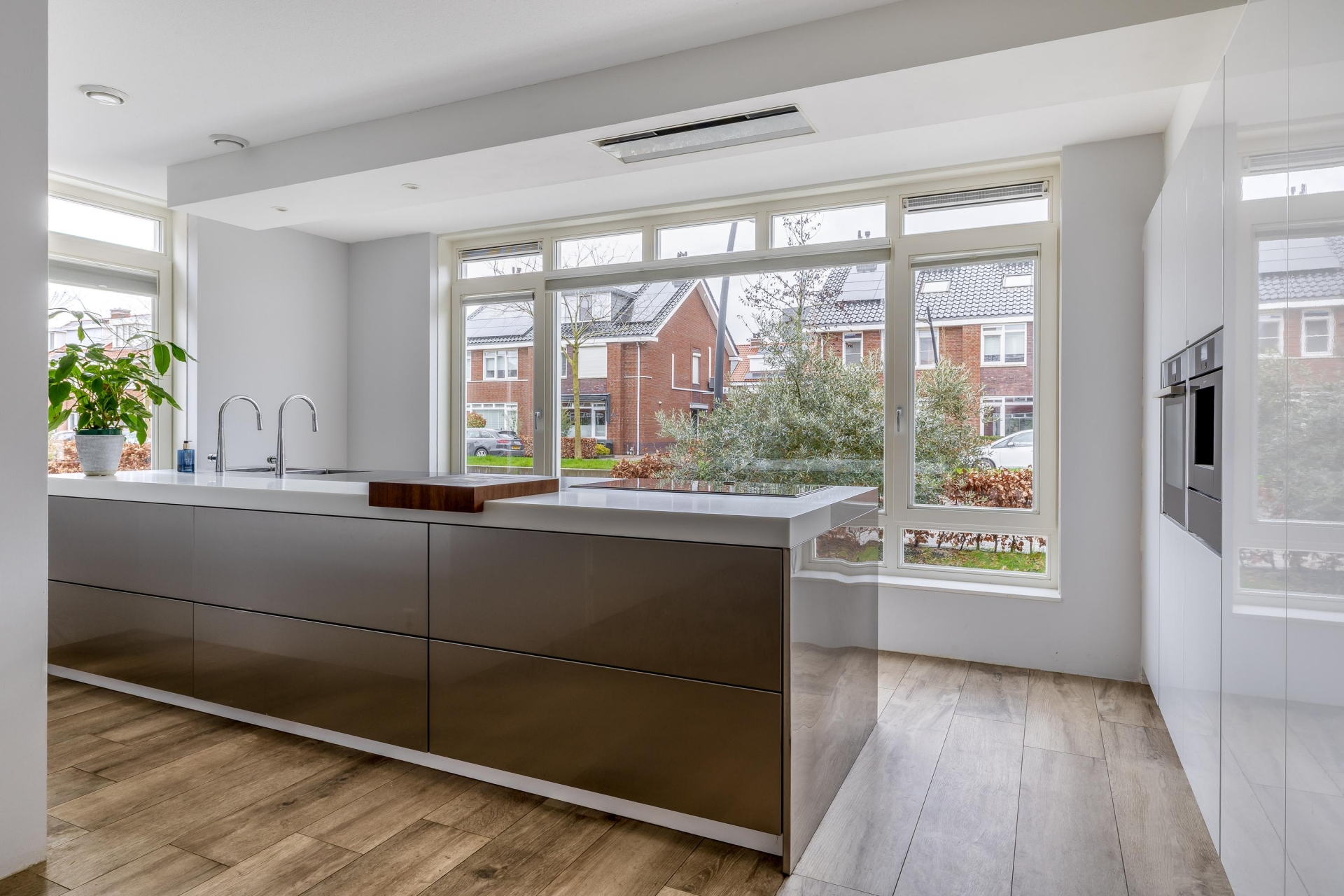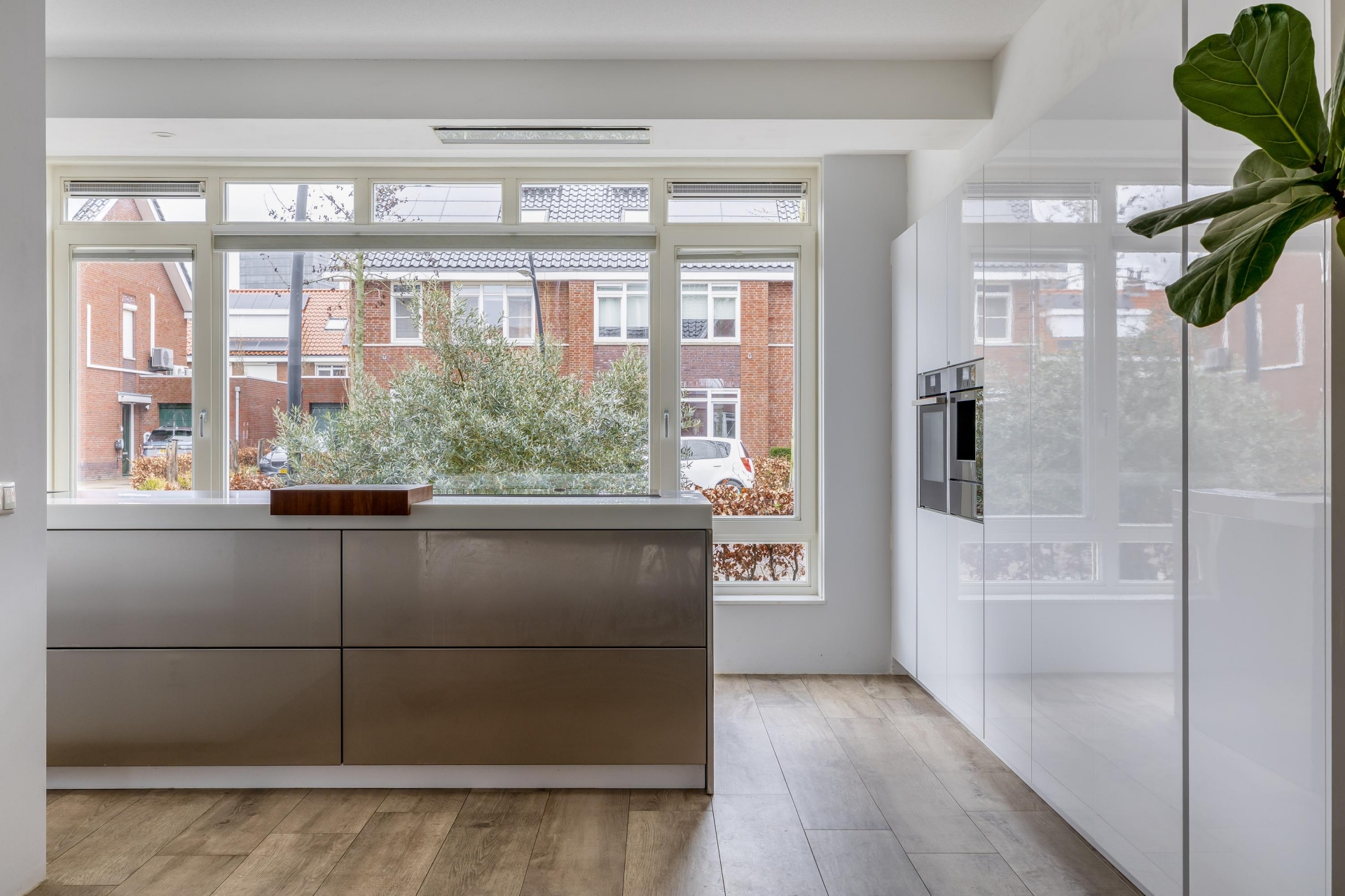 Met de brede raampartijen kijk je vrij weg over de straat, wat zorgt voor veel daglicht en een prettig gevoel van ruimte. De keuken is voorzien van diverse inbouwapparatuur en biedt volop werk- en bergruimte.