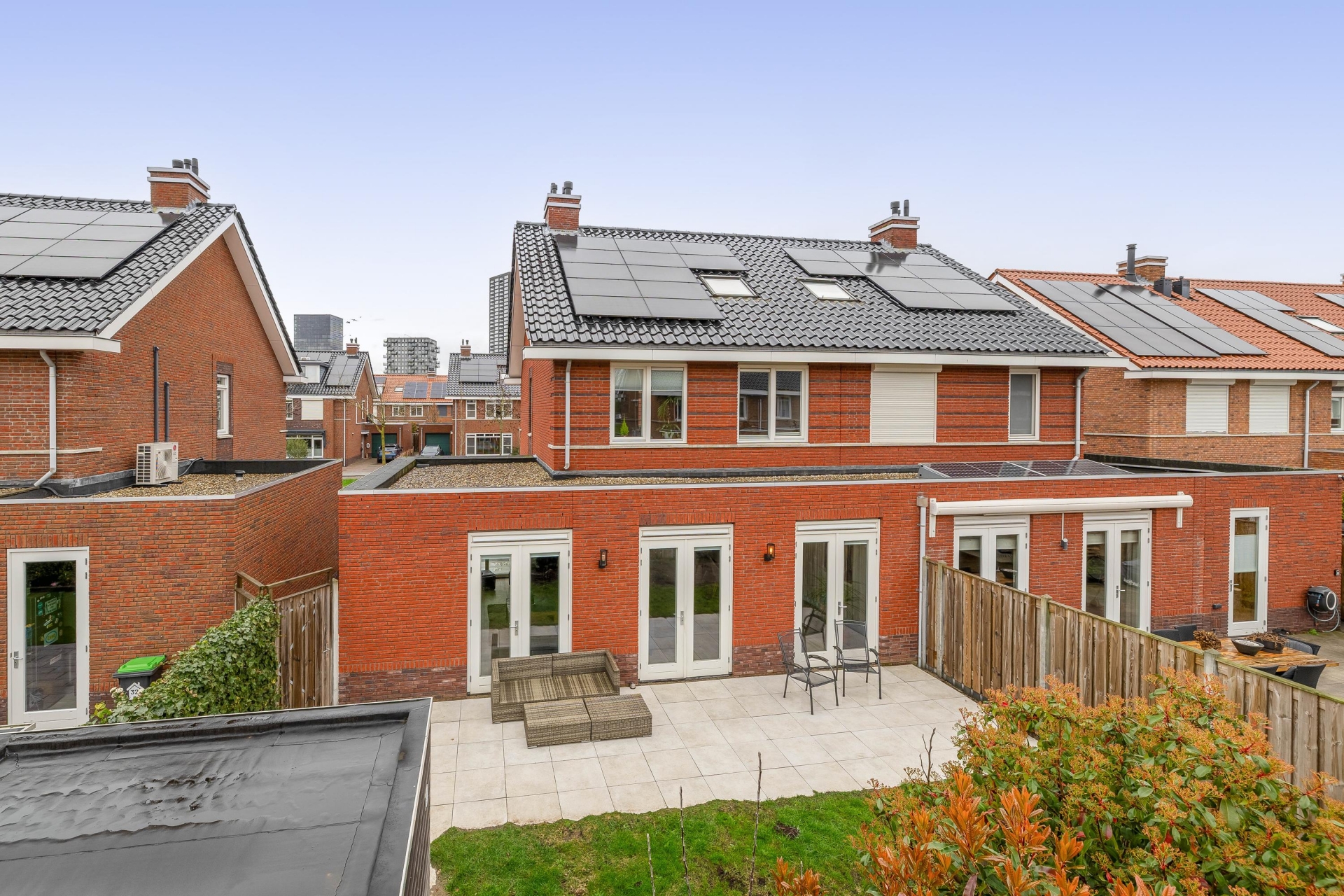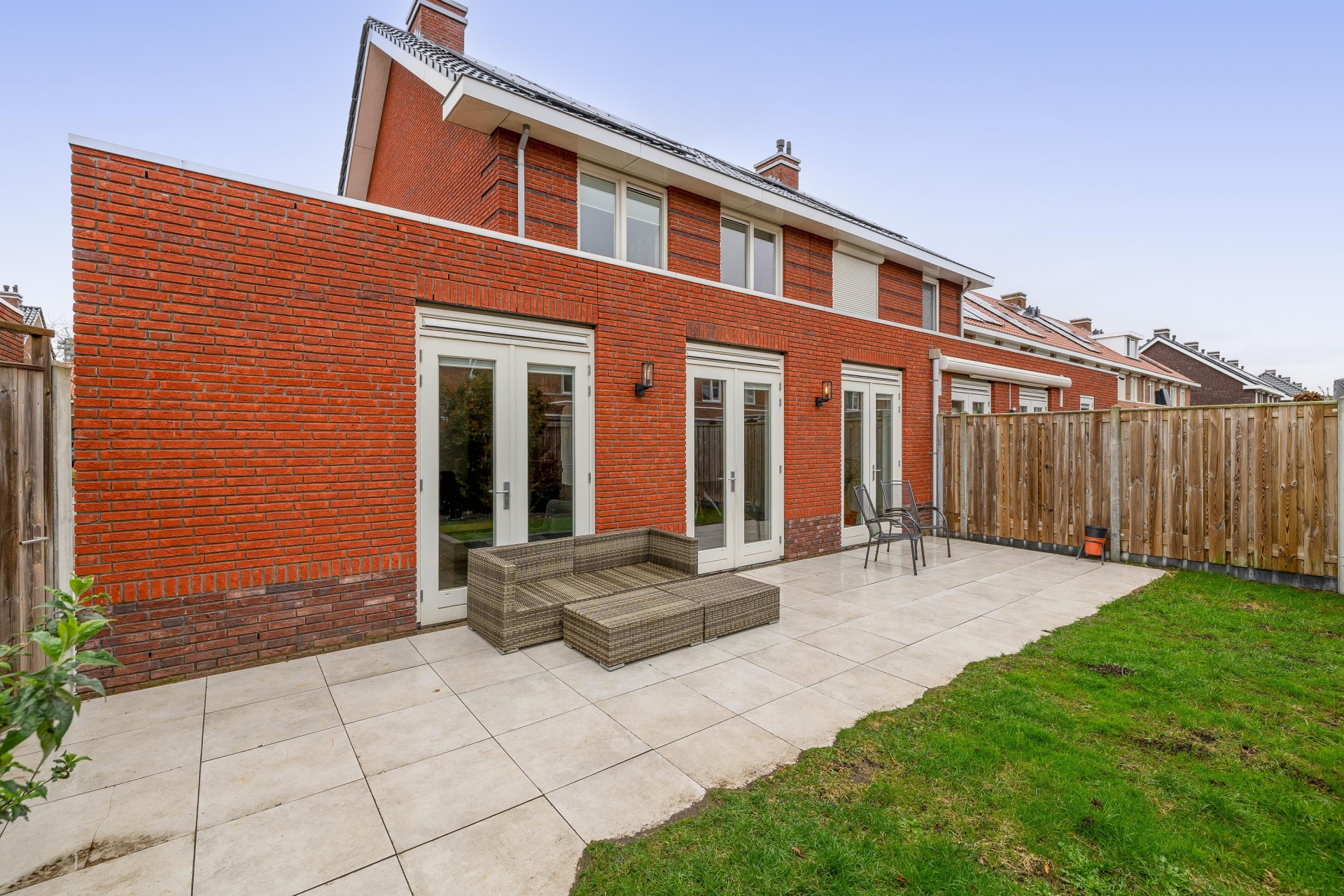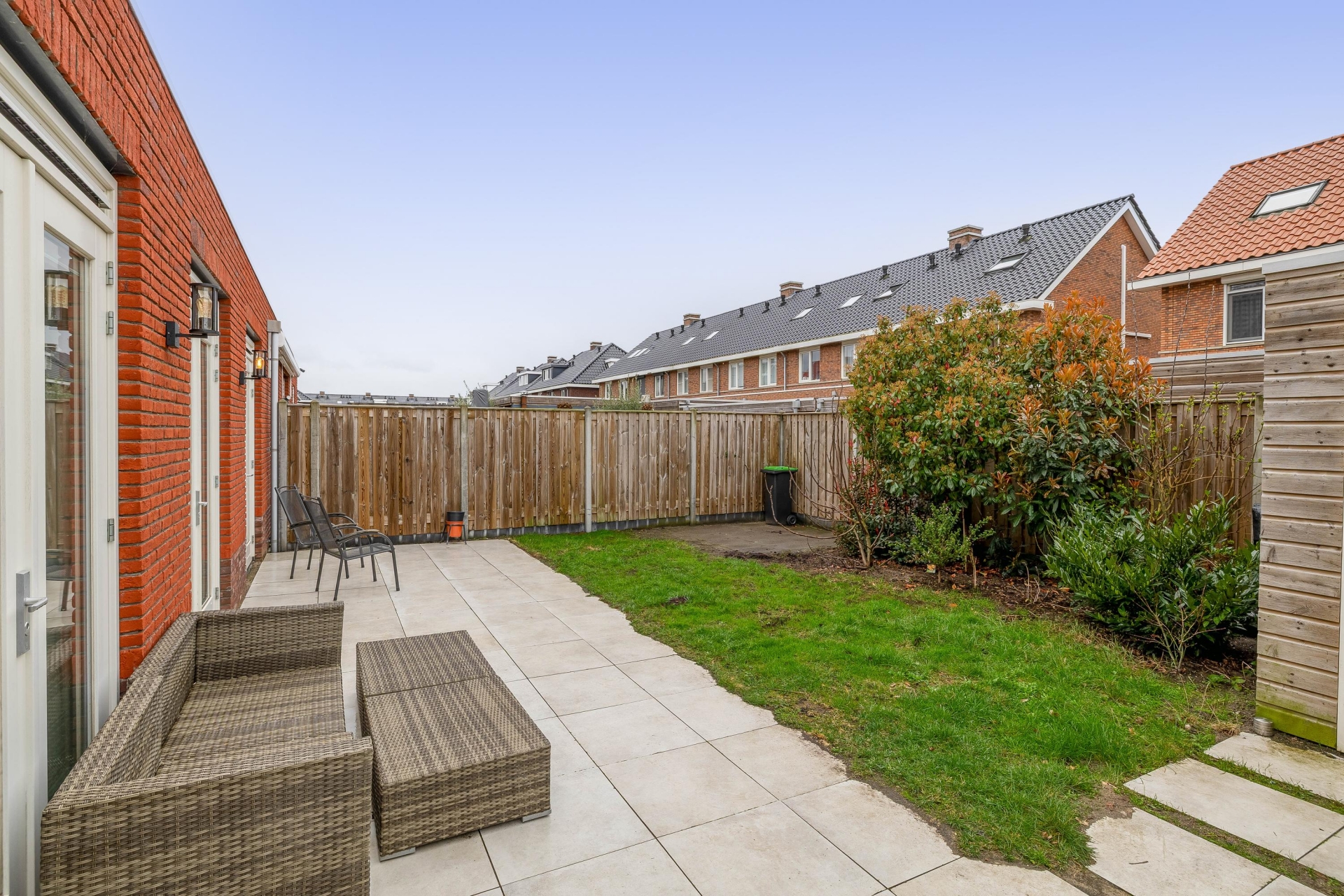 De achtertuin is gelegen op het zuidwesten, wat betekent dat je hier optimaal van de zon geniet. De tuin is netjes aangelegd met een combinatie van terras en groen, waardoor je altijd een fijne plek hebt om te zitten.