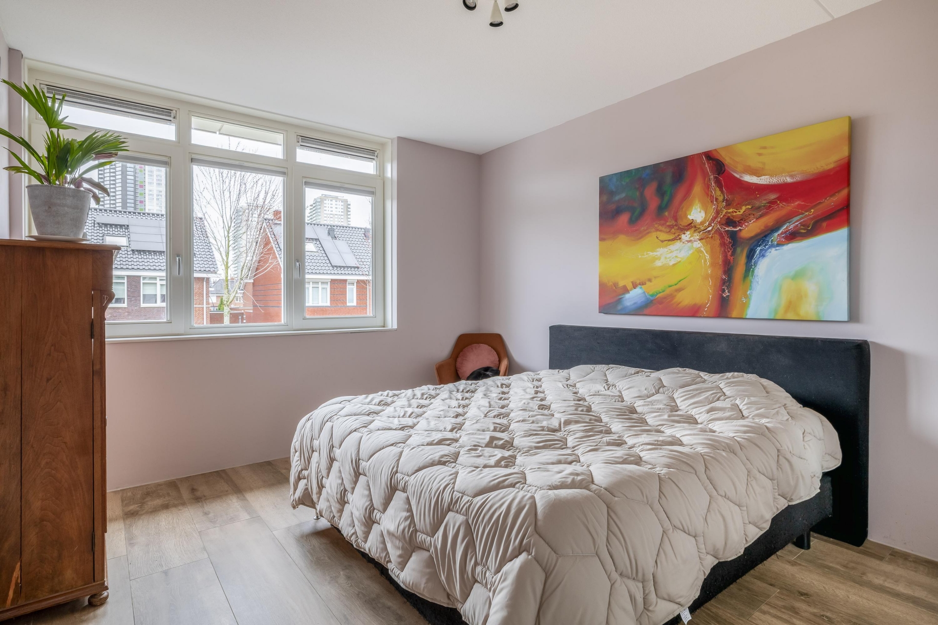 De combinatie van de uitbouw aan de achter- én zijkant zorgt voor een uitzonderlijk ruime begane grond. Tel daar de dakkapel, vloerverwarming op alle verdiepingen en parkeren op eigen terrein bij op, en je hebt een compleet plaatje dat klopt van A tot Z.
