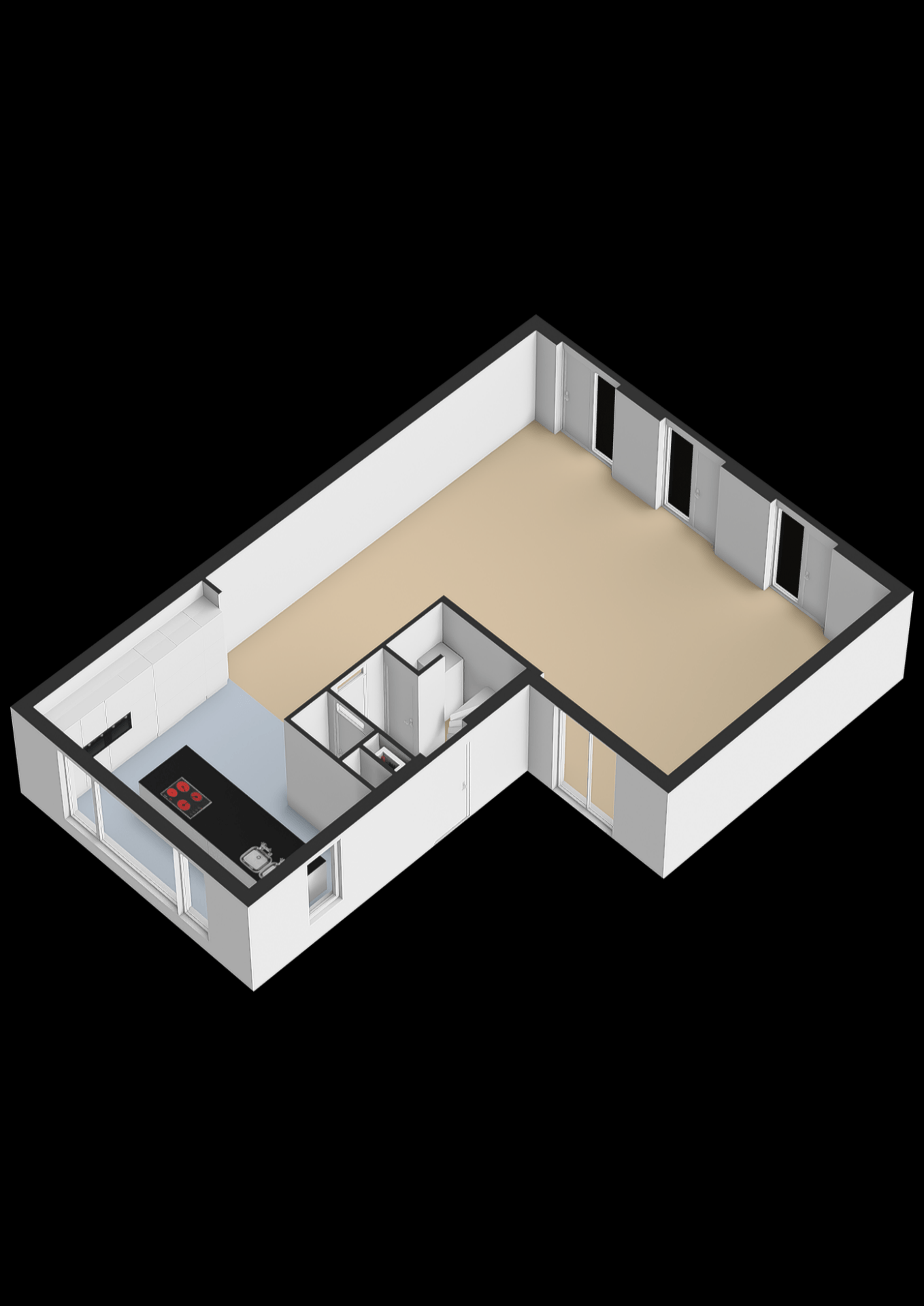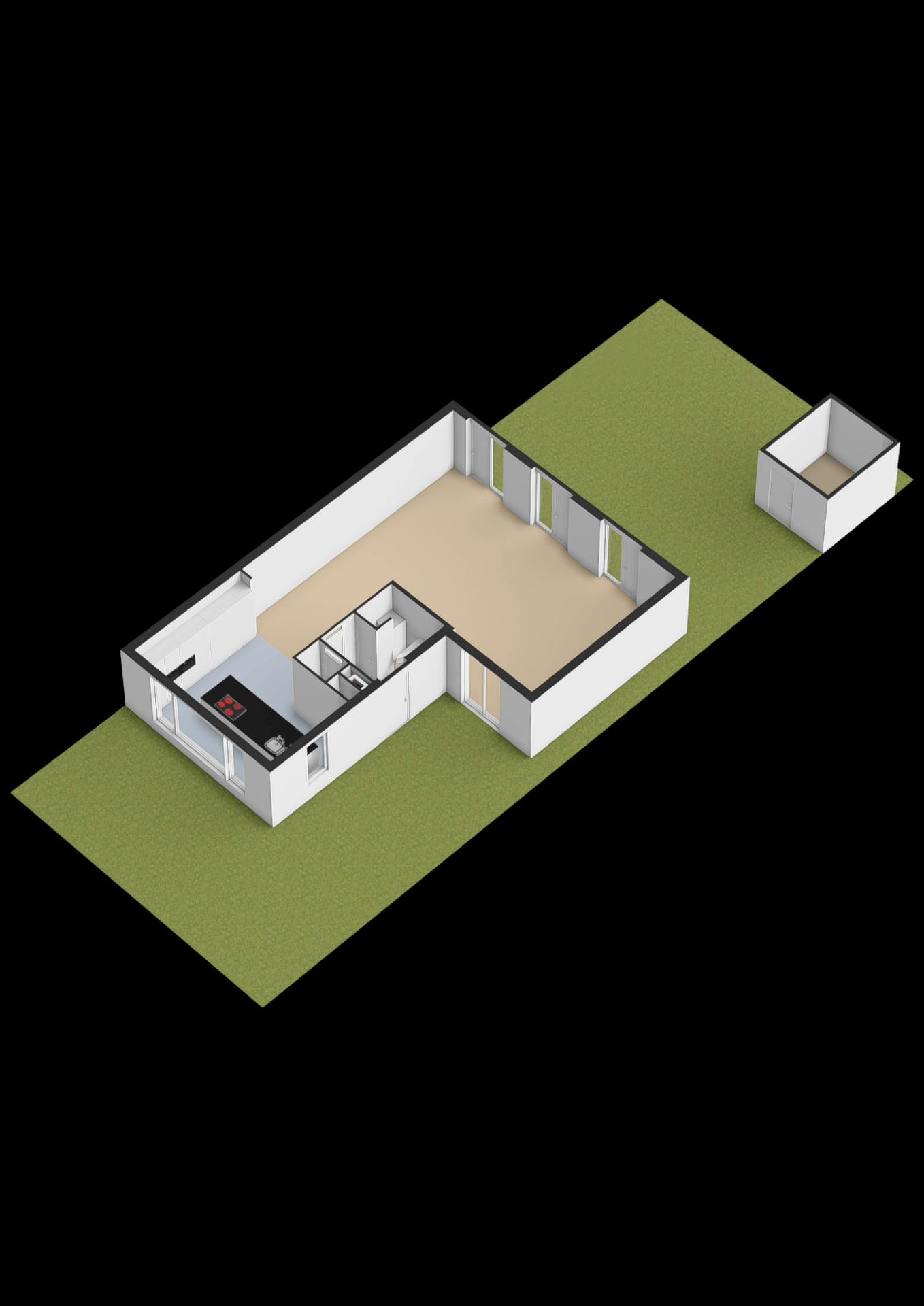 De indeling is speels maar logisch: een royale zithoek aan de tuinzijde en een ruime eethoek richting de keuken. Met 65 m² heb je hier alle vrijheid om het in te richten zoals jij wilt, zonder concessies te doen.