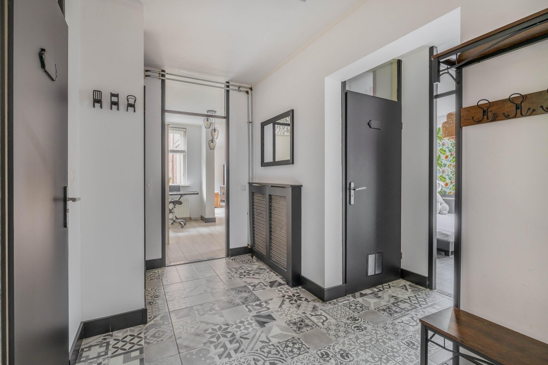 Entree op de 1e etage; gang, voorzien van modern toilet met fontein, meterkast (volledig vernieuwd in 2023) en kast met opstelplaats voor wasmachine en droger; slaapkamer 1 aan de voorzijde; slaapkamer 2 aan de voorzijde; moderne badkamer, voorzien van inloopdouche, wastafelmeubel en prachtige natuurstenen vloer; slaapkamer 3; ruime woon- eetkamer, voorzien van moderne open keuken met magnetron, vaatwasser, hete luchtoven, inductiekookplaat en afzuigkap; master bedroom, voorzien van ligbad, prachtige natuurstenen vloer en toegang tot het zonneterras; berging in de onderbouw.