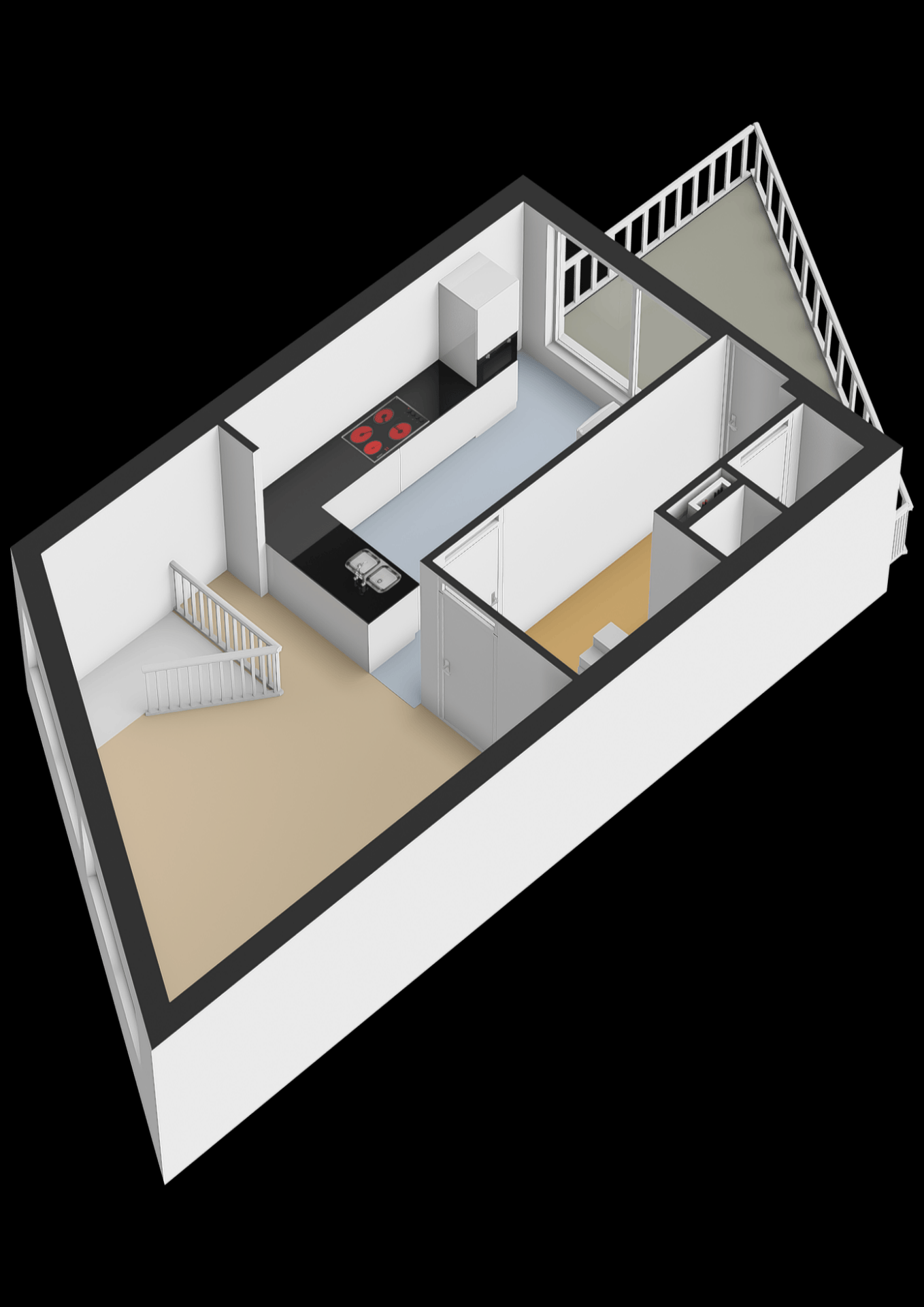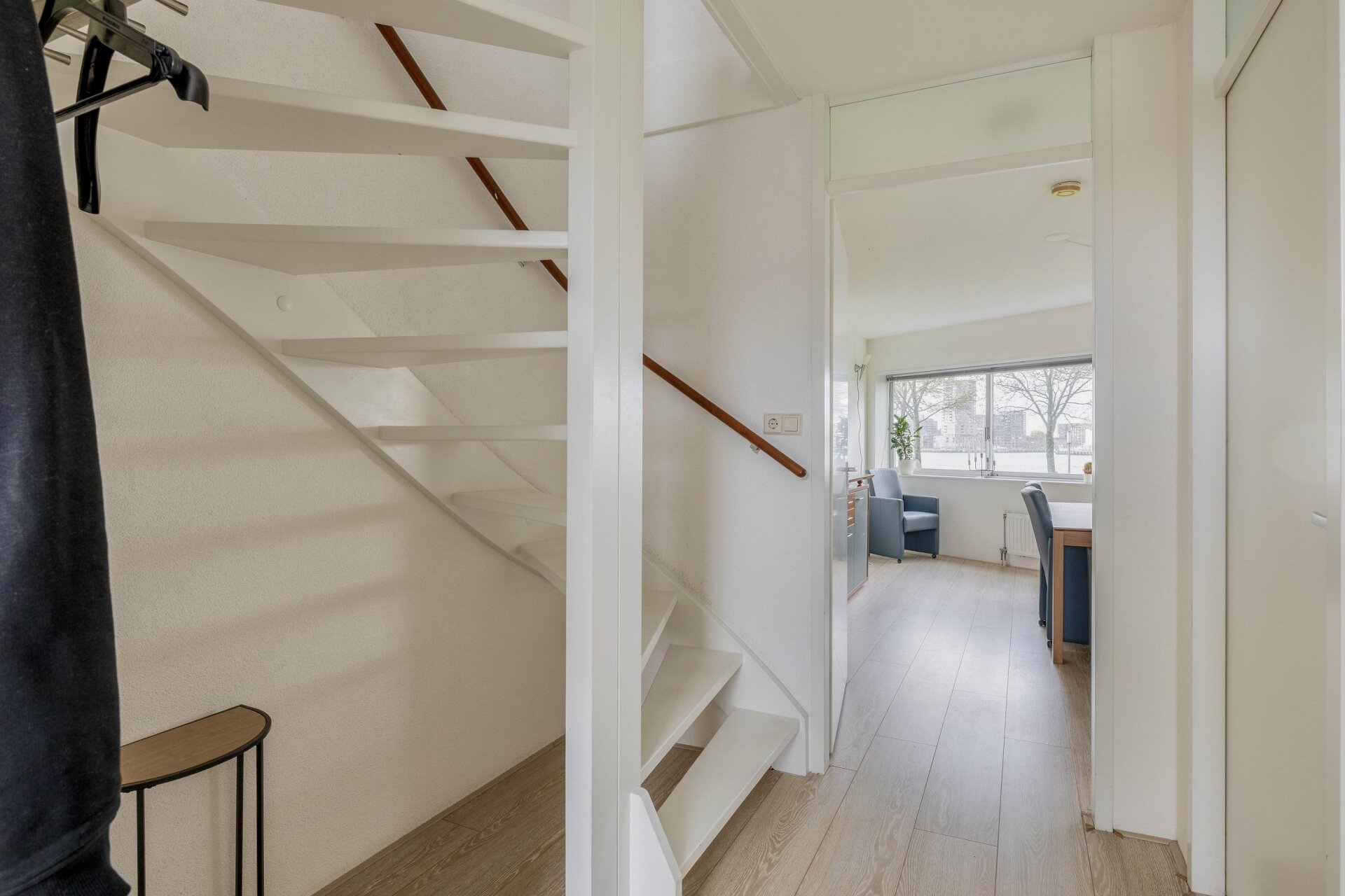Via je eigen verhoogde terras kom je binnen. Het terras ligt aan de straatzijde en vangt het beste licht van de ochtend en begin van de middag, ideaal voor je eerste koffie in het weekend of het laatste glas wijn bij zonsondergang. Je stapt binnen in een nette hal met toilet en loopt zo door naar de woonkeuken.