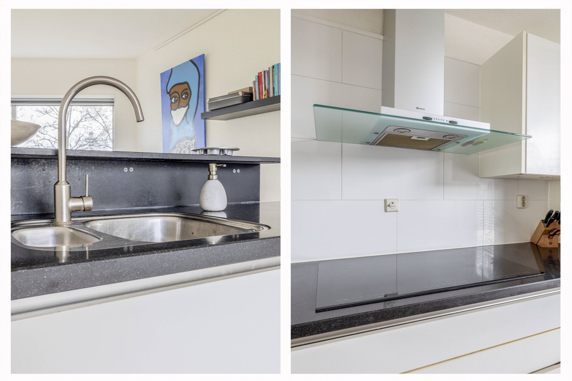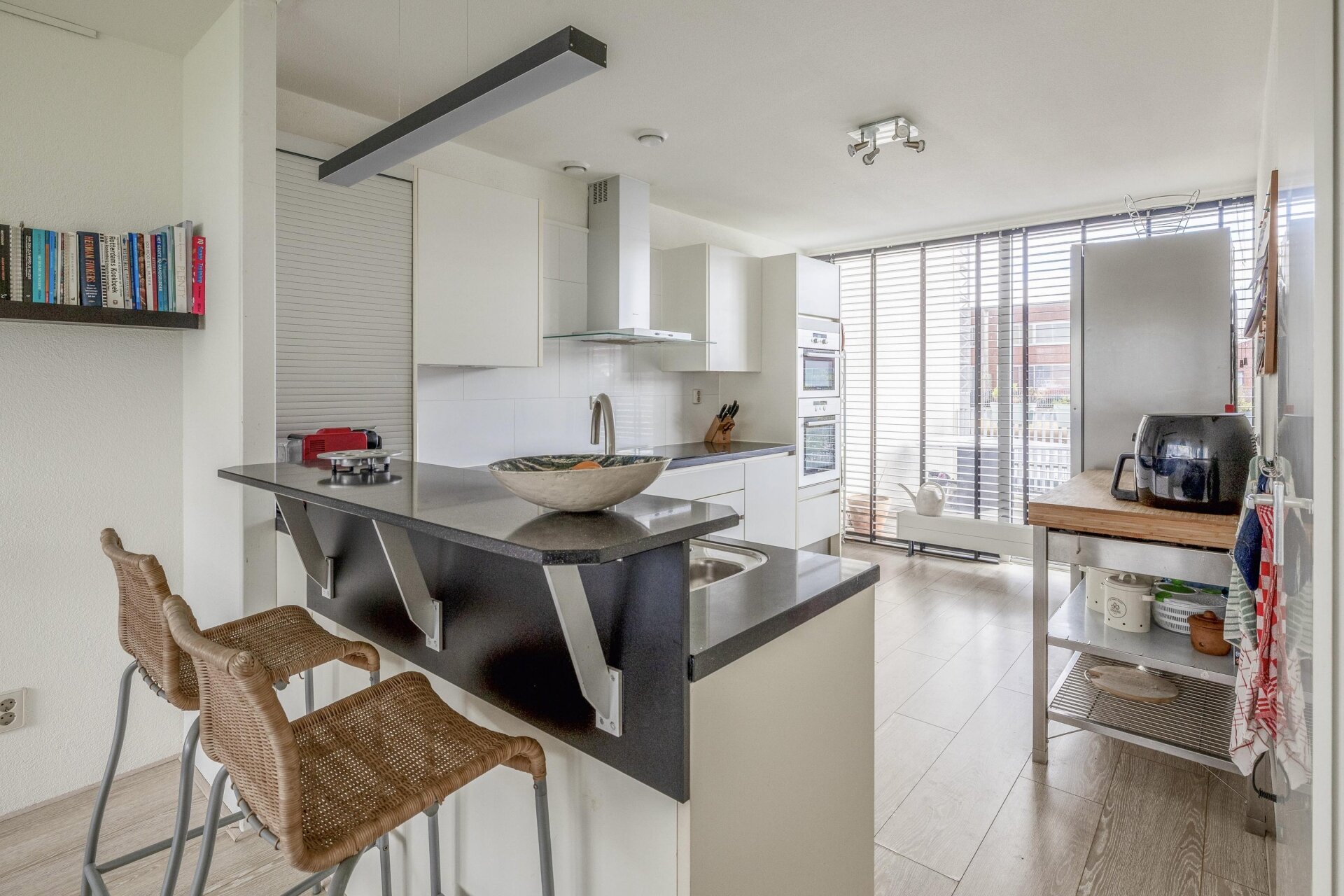 Aan de achterzijde ligt de sfeervolle eetkamer met volop ruimte voor een grote tafel. Hier kijk je tijdens het koken én dineren uit over de Maas en de voorbij varende schepen. De hoekkeuken is modern, compleet uitgerust en precies waar je wil staan als je graag kookt en gasten ontvangt: veel werkruimte, een fijne indeling en alles binnen handbereik.