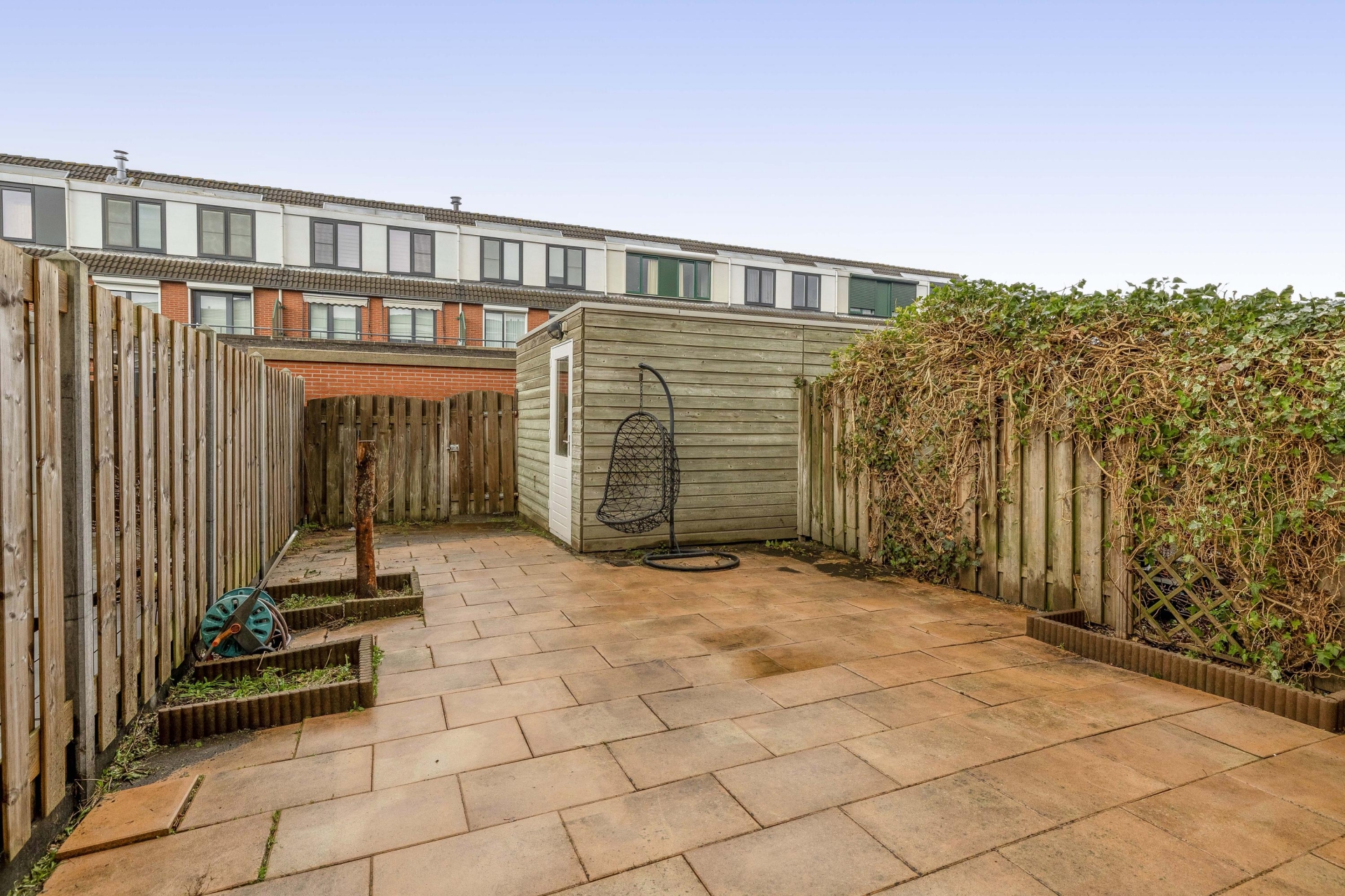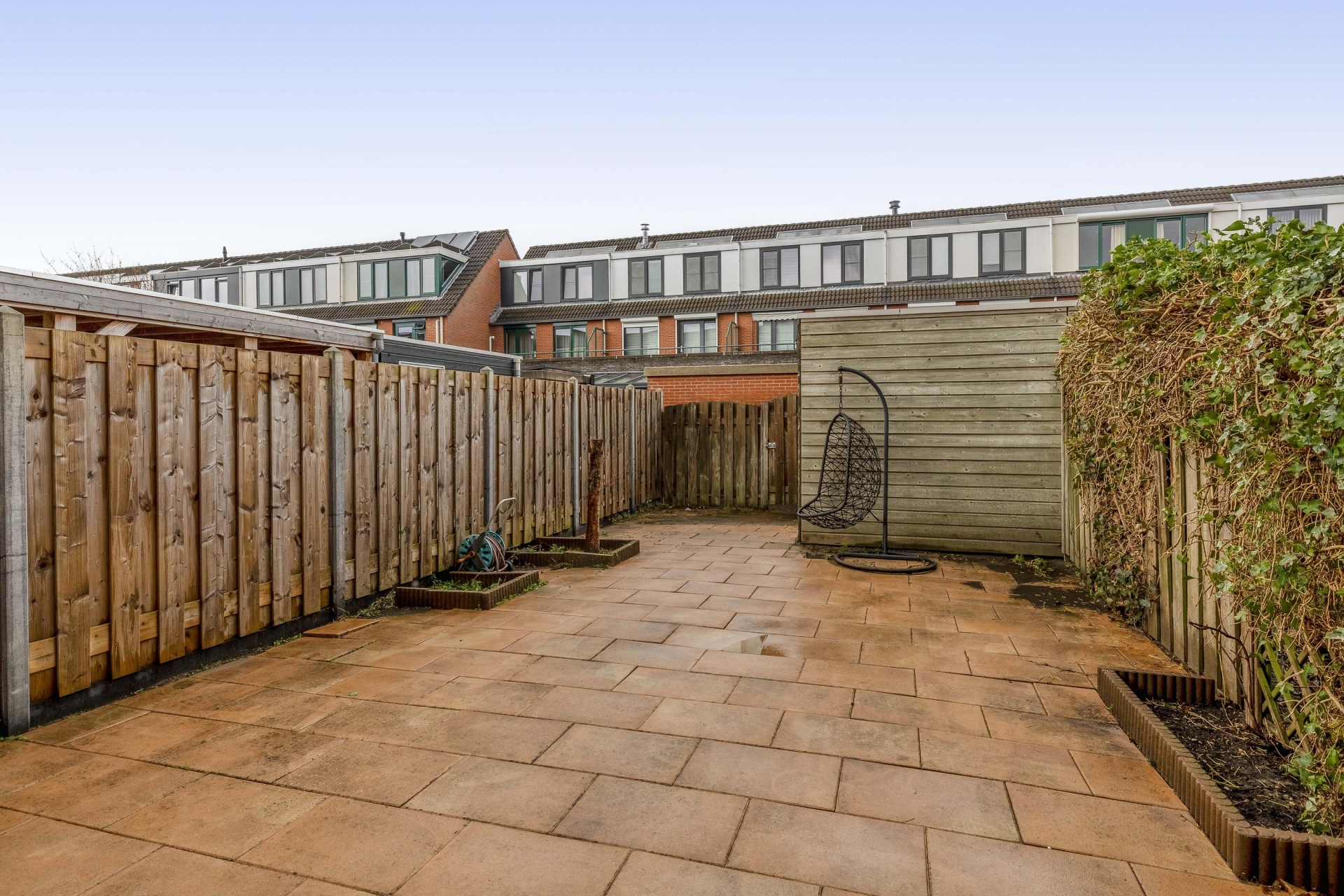 Vanuit de woonkamer is er middels een brede schuifpui toegang tot de heerlijke achtertuin. De zonnige tuin is gesitueerd op het zuidwesten waardoor het mogelijk is om de hele middag en avond van de zon te genieten. Deze beschikt over een vrijstaande houten berging, een handmatig zonnescherm en een achterom. Aan de voorzijde van de woning is een ruime voortuin te vinden, welke gesitueerd is op het zuidoosten.