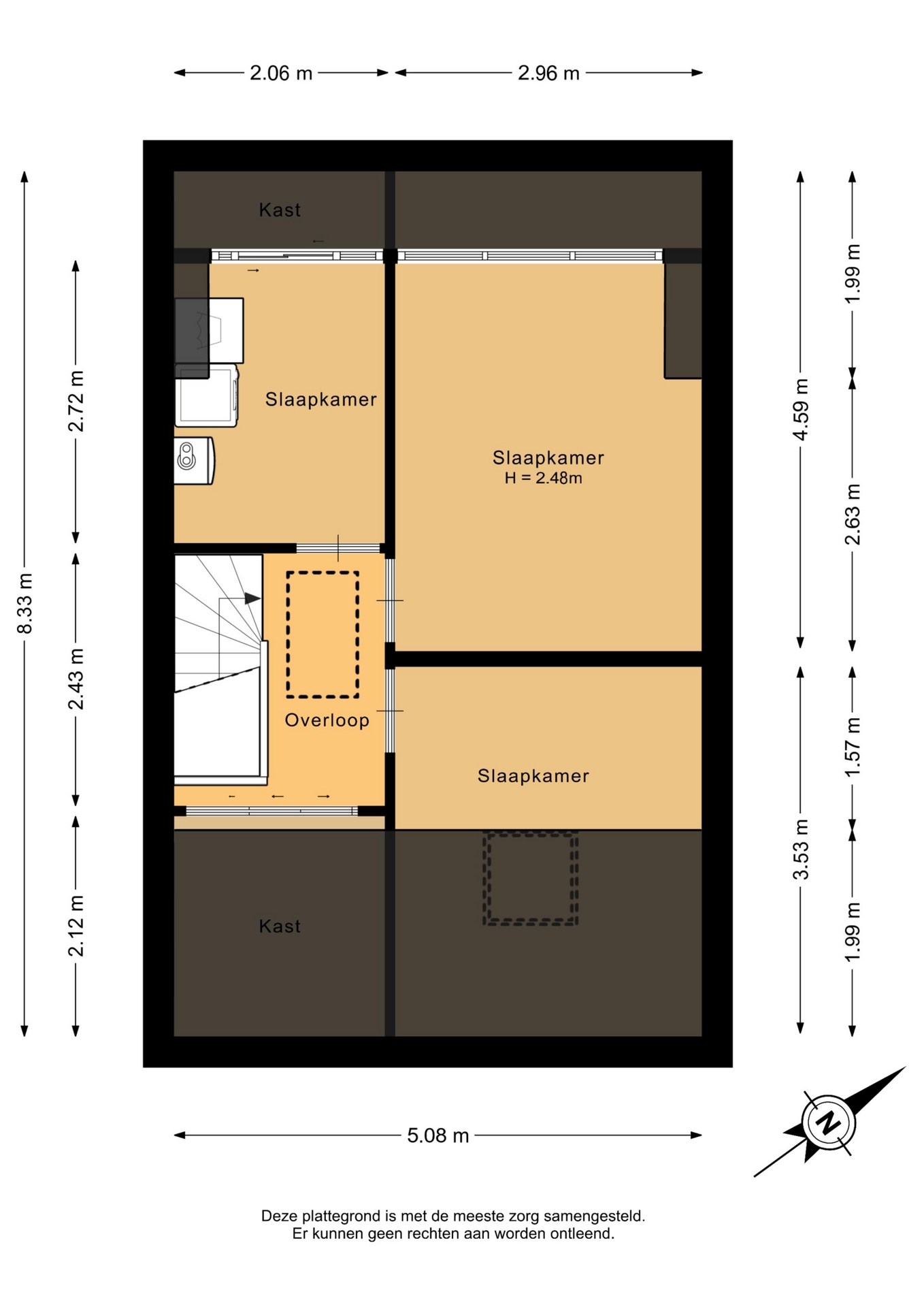 “Deze informatie is door ons met de nodige zorgvuldigheid samengesteld. Onzerzijds wordt echter geen enkele aansprakelijkheid aanvaard voor enige onvolledigheid, onjuistheid of anderszins, dan wel de gevolgen daarvan. Alle opgegeven maten en oppervlakten zijn indicatief.”