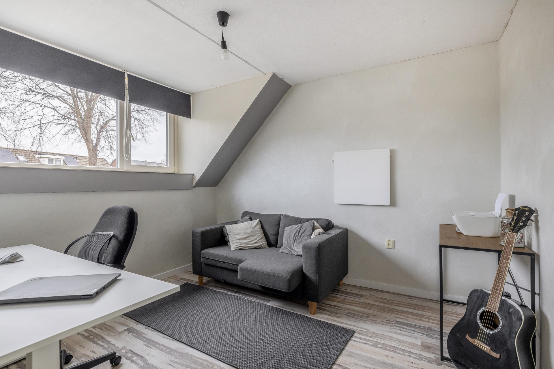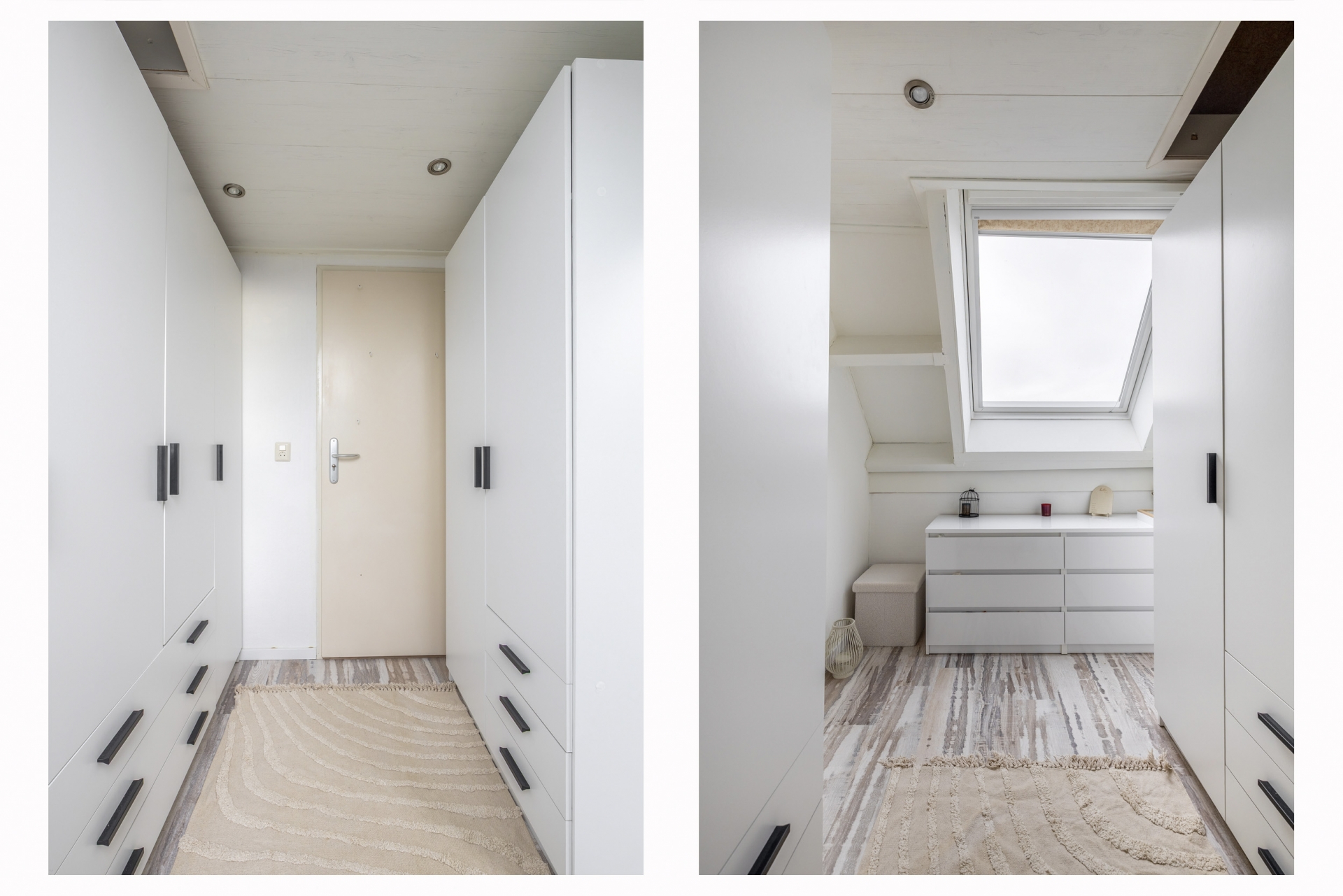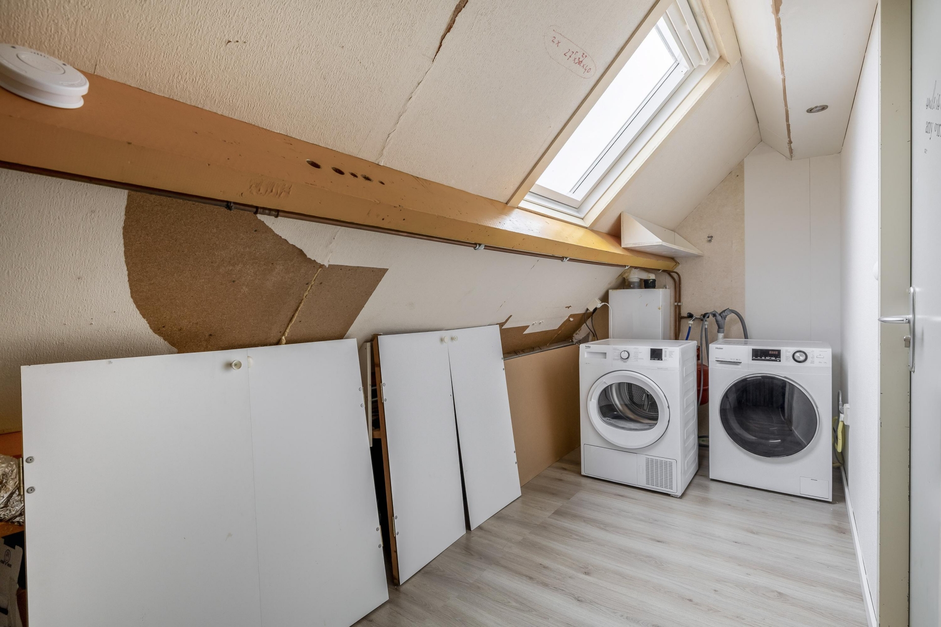 De tweede verdieping is ruim opgezet en v.v. vernieuwde Velux dakramen. Hier vind je nog twee extra slaapkamers. De tweede slaapkamers is thans in gebruik als walk-in closet. Tevens is er op de overloop een praktische wasruimte met de opstelling cv combiketel Remeha HR. Ook deze verdieping is fraai afgewerkt met een lichte vloer, strak plafond en bergruimte onder de schuine kap. De tweed