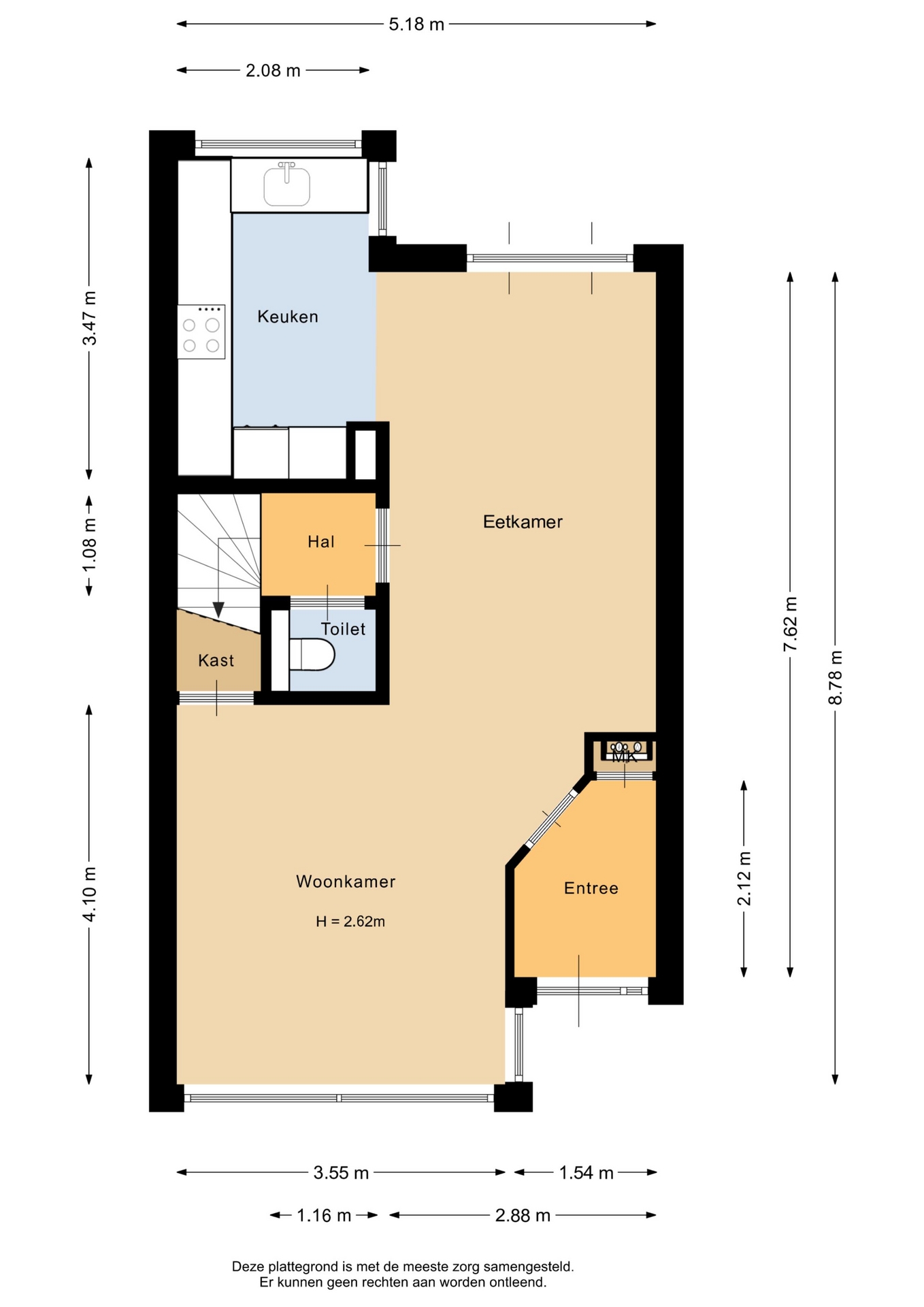 Naast de keuken is er in de hal een modern toilet, en via de trap bereik je de eerste verdieping.