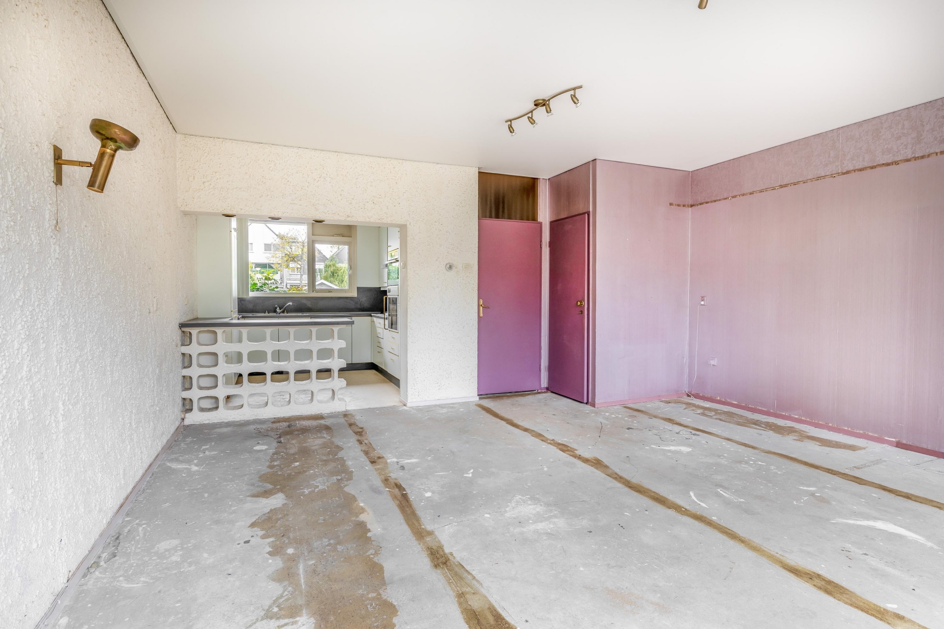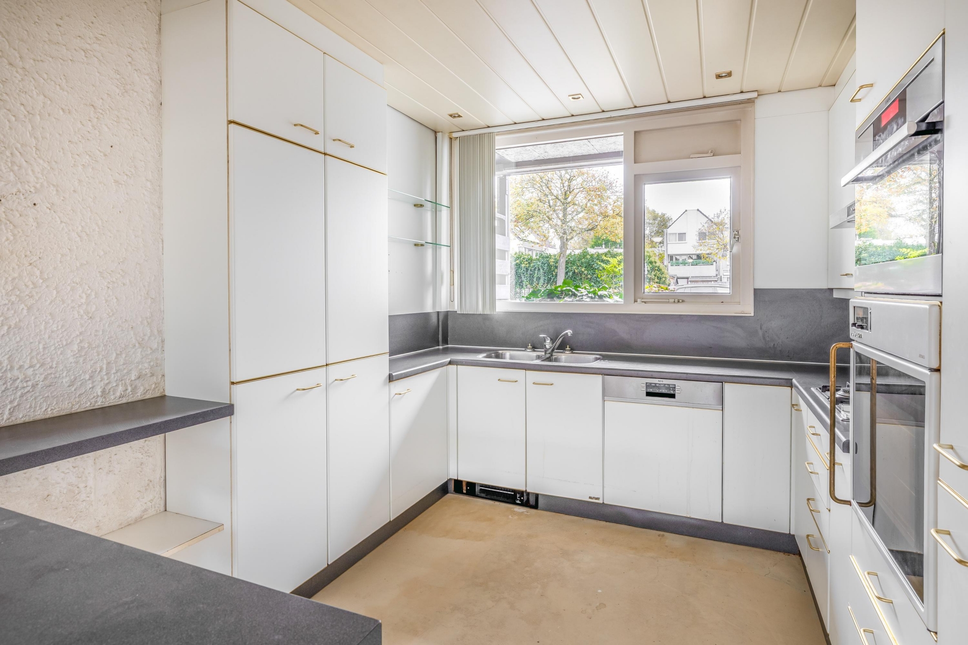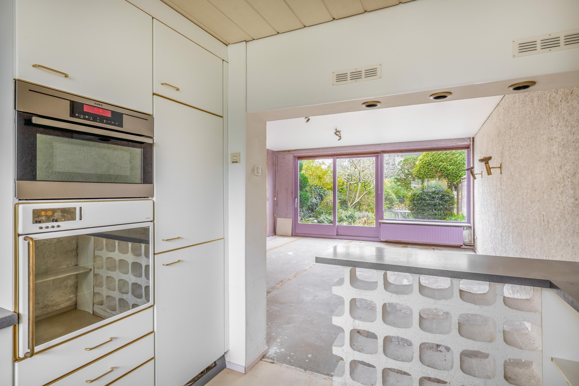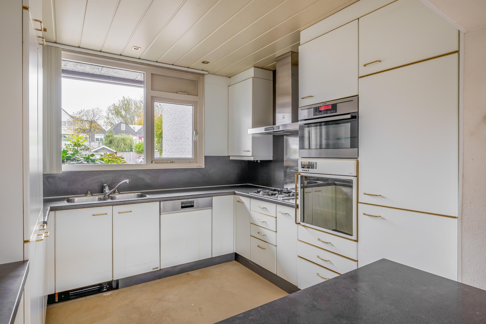 Bij binnenkomst kom je via de hal met modern toilet in de lichte woonkamer van circa 30 m². Deze ruimte heeft een prettige indeling en staat dankzij grote raampartijen direct in verbinding met de tuin. De achterpui is vrijwel volledig van glas en zorgt voor veel daglicht én zicht op het groen. De keuken bevindt zich aan de voorzijde van het huis, in een praktische hoekopstelling met diverse inbouwapparatuur. De stijl is eenvoudig en functioneel – een mooie basis om eventueel naar eigen smaak te moderniseren.