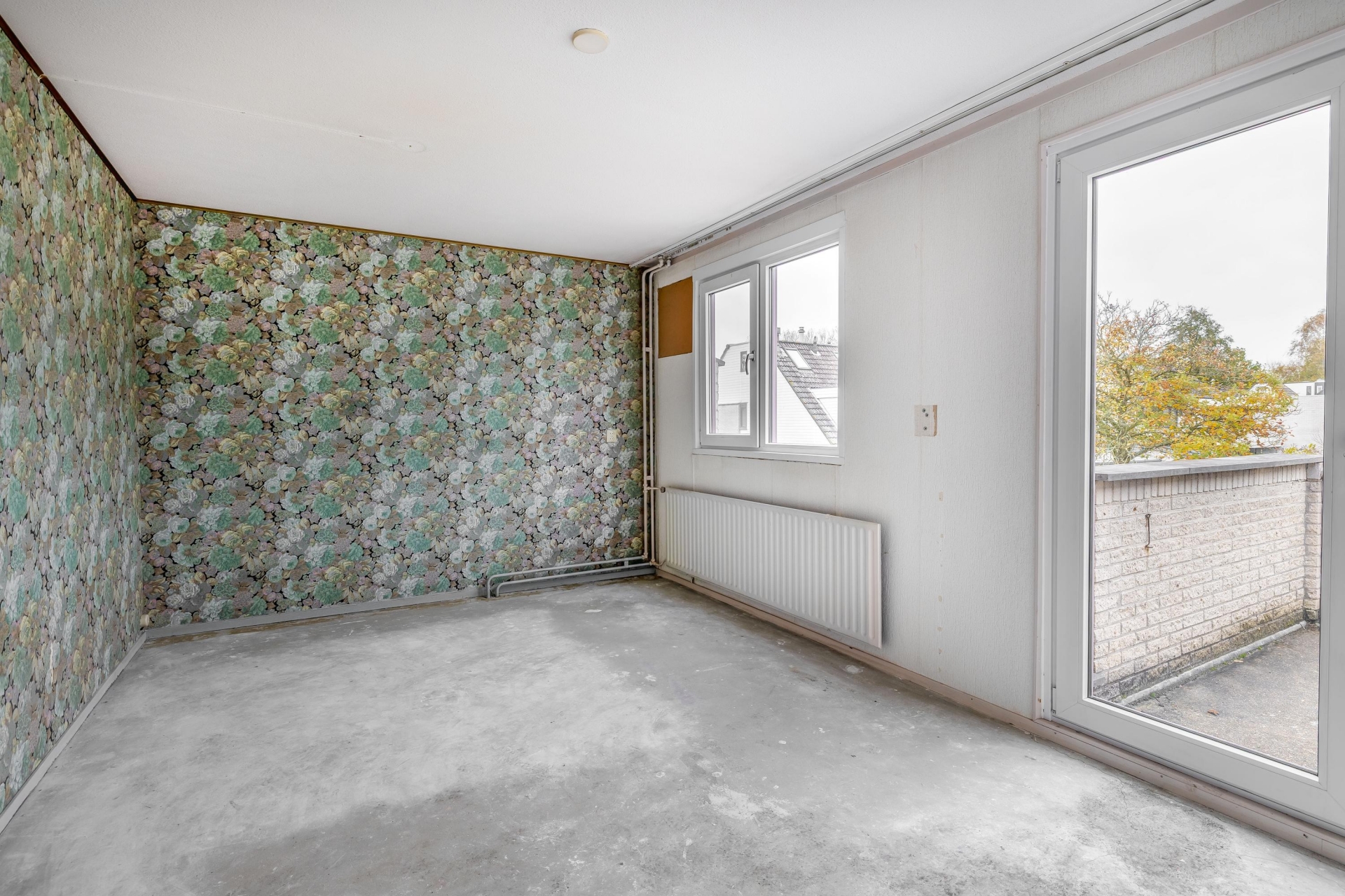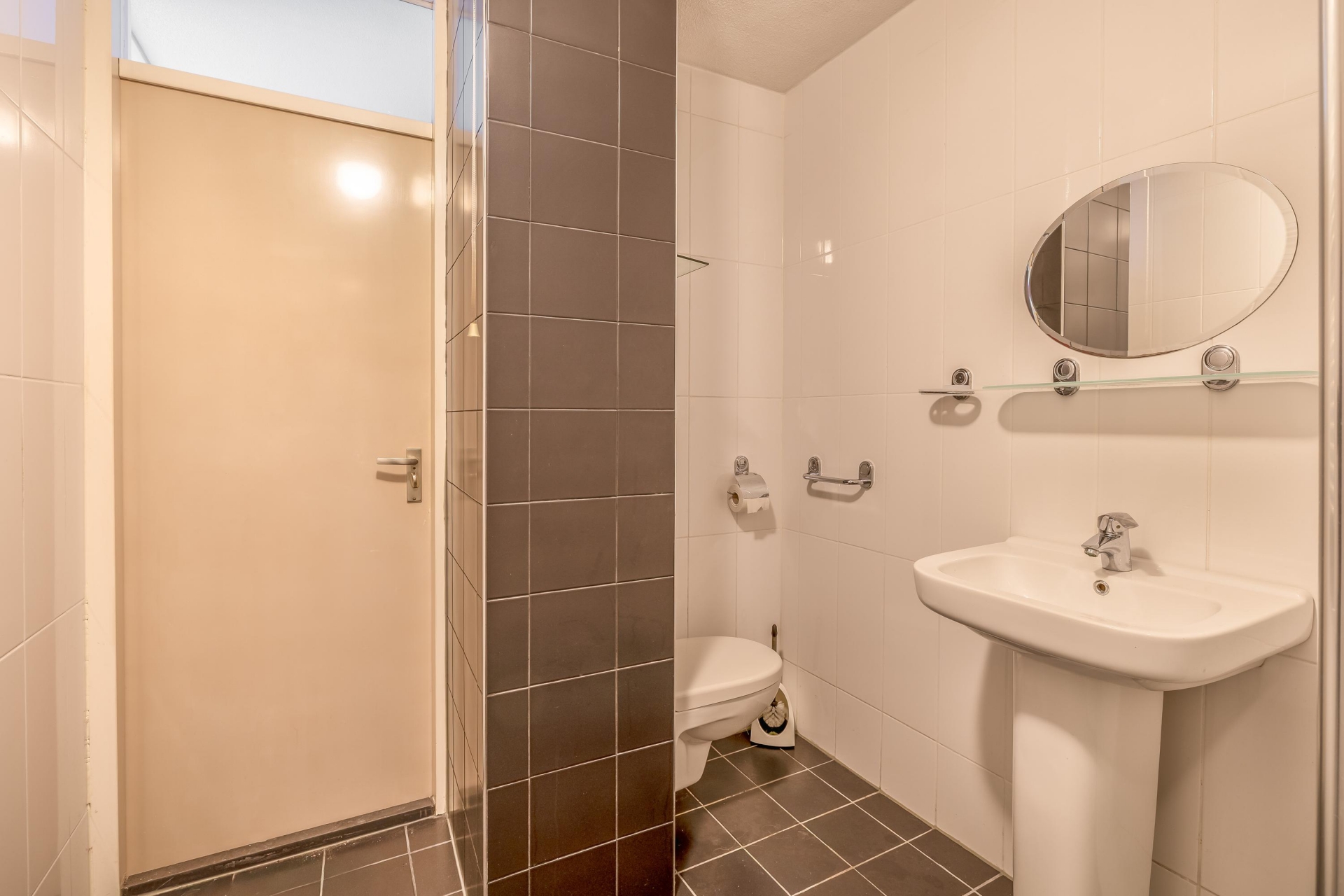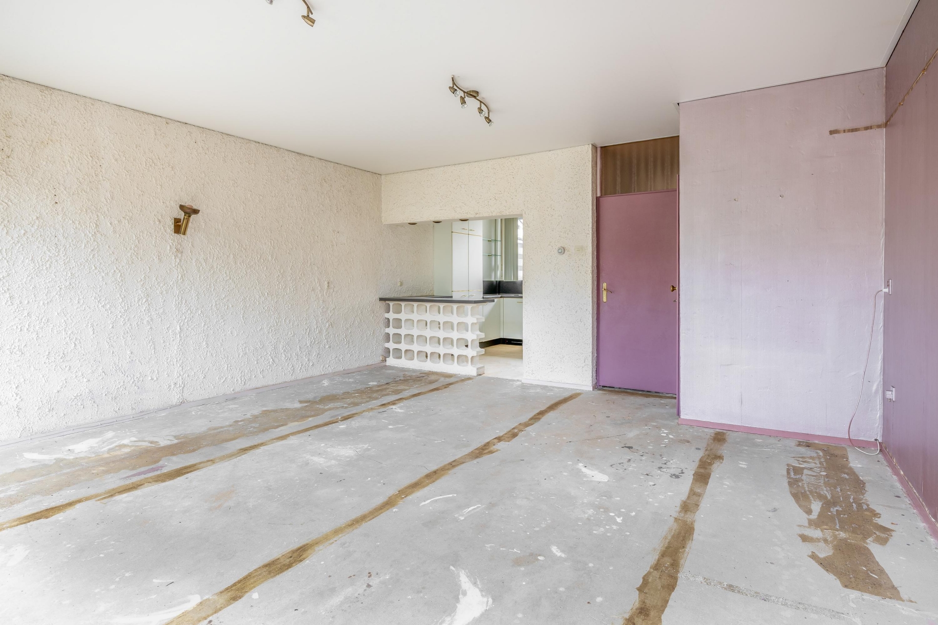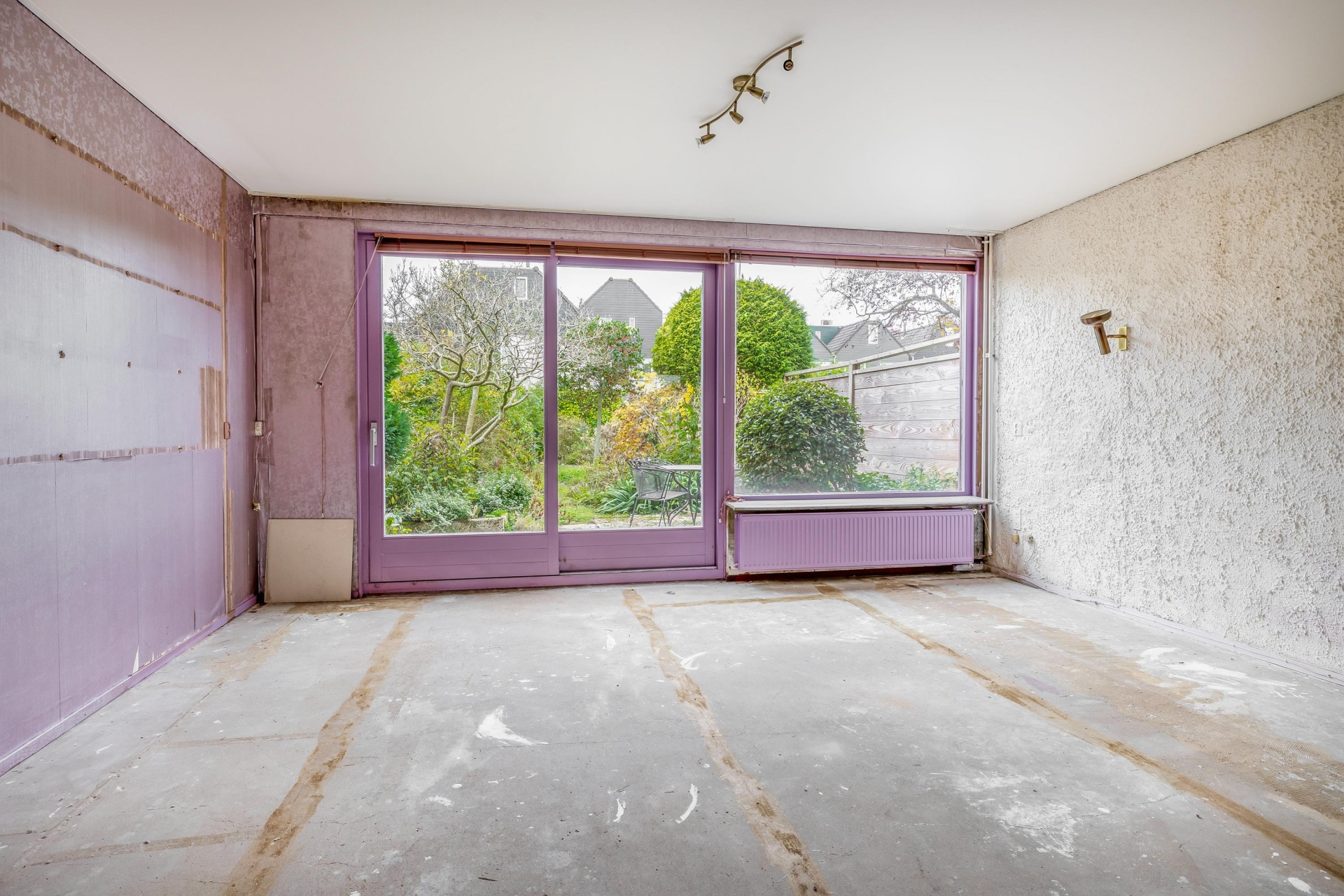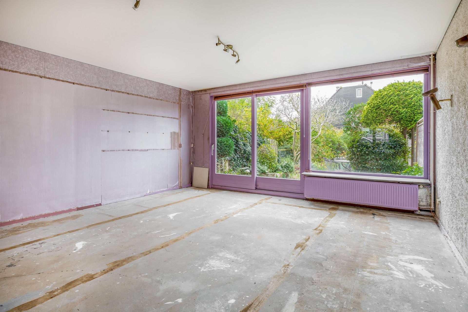 Bij binnenkomst kom je via de hal met modern toilet in de lichte woonkamer van circa 30 m². Deze ruimte heeft een prettige indeling en staat dankzij grote raampartijen direct in verbinding met de tuin. De achterpui is vrijwel volledig van glas en zorgt voor veel daglicht én zicht op het groen. De keuken bevindt zich aan de voorzijde van het huis, in een praktische hoekopstelling met diverse inbouwapparatuur. De stijl is eenvoudig en functioneel – een mooie basis om eventueel naar eigen smaak te moderniseren.