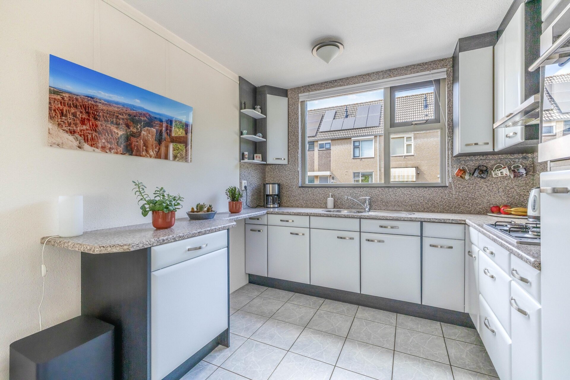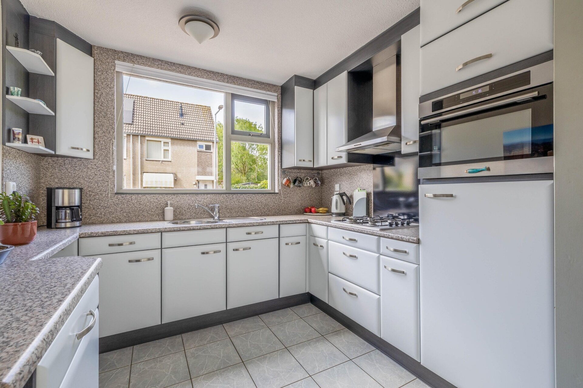 Bij binnenkomst valt meteen de ruime hal op, voorzien van een moderne groepenkast (vernieuwd in 2020) met een drie-fase aansluiting en een net toilet. De woonkamer is tuingericht, heerlijk licht – ideaal in combinatie met de betegelde vloer. De open keuken in U-opstelling is praktisch ingedeeld en van alle gemakken voorzien, inclusief veel werk- en kastruimte. Daarnaast is deze keuken voorbereid op inductie koken middels een Perilex-aansluiting. Dankzij de grote raampartij en schuifpui naar de tuin komt het daglicht volop binnen, wat zorgt voor een prettige leefruimte met een huiselijke sfeer.