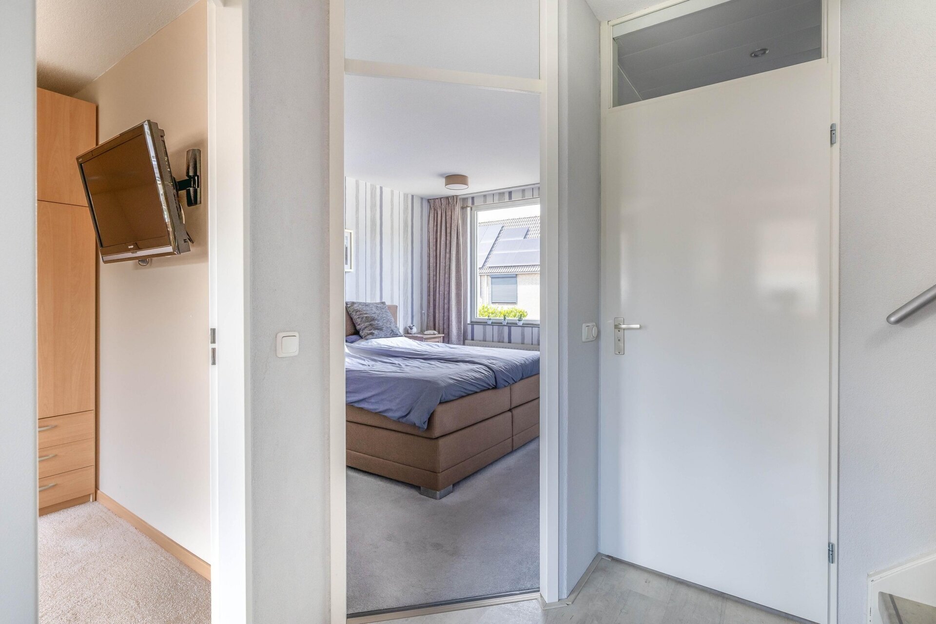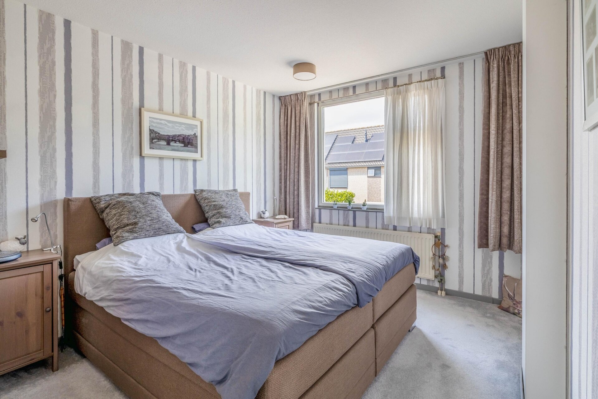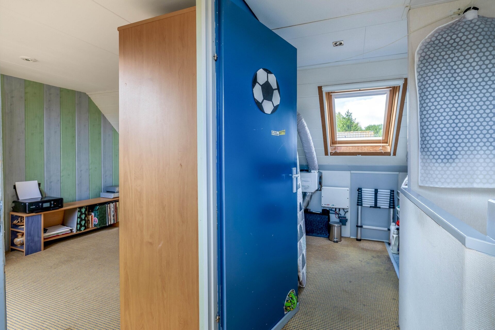 Op de eerste verdieping bevinden zich drie ruime slaapkamers en een verzorgde badkamer die in 2012 volledig is vernieuwd. Deze is ingericht met een dubbele wastafel, tweede toilet en moderne douche. Via de opnieuw beklede trap kom je op zolder, waar een royale vierde slaapkamer is gerealiseerd, voorzien van dakraam, afgewerkte knieschotten en zelfs een opbergvliering. De voorzolder biedt plaats aan wasmachine, droger én herbergt de omvormer voor de zonnepanelen (2019), cv-ketel (2022) en mechanische ventilatie (2020). Alles met oog voor comfort en efficiëntie.