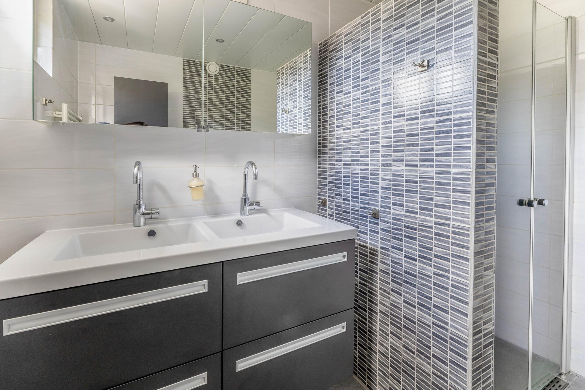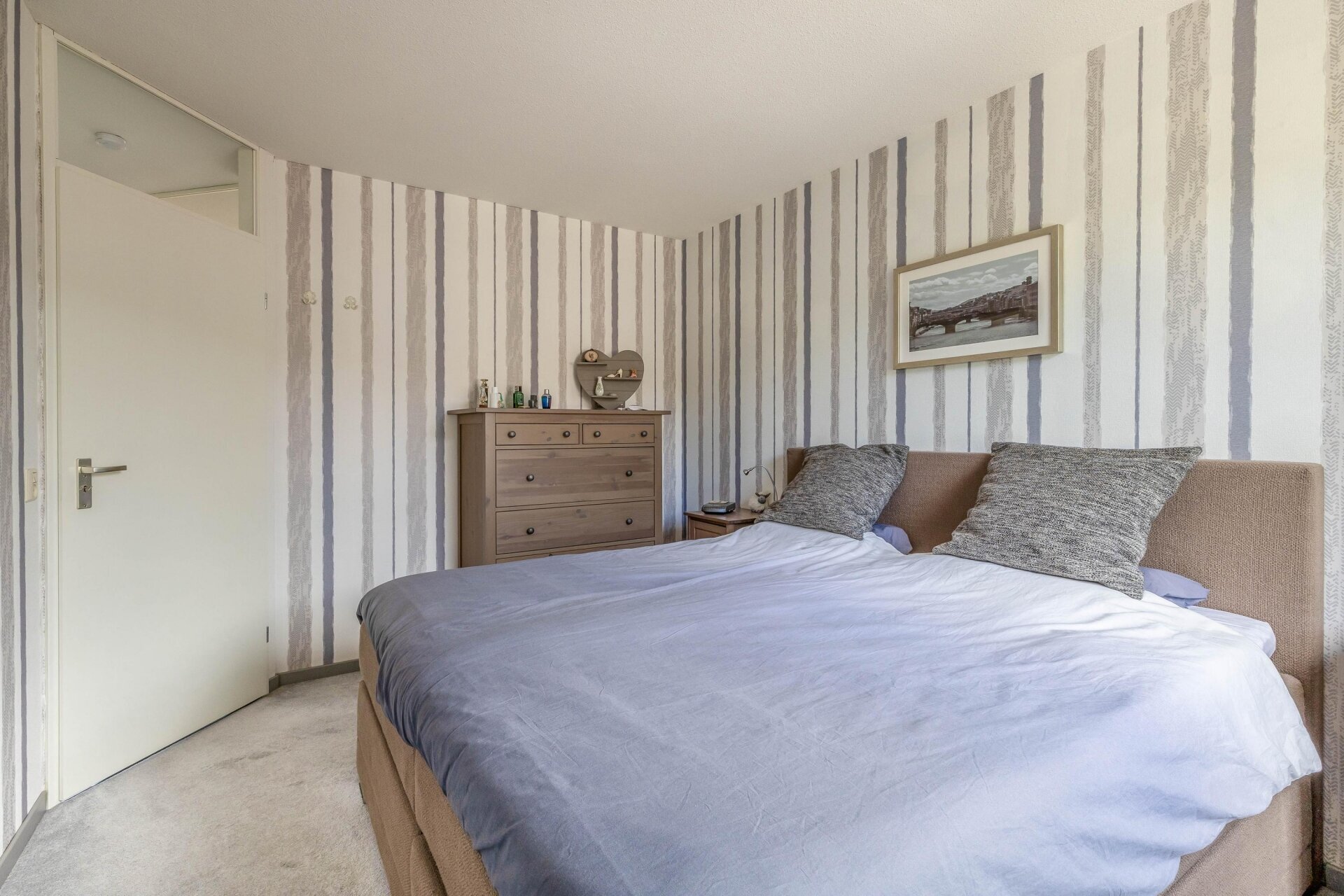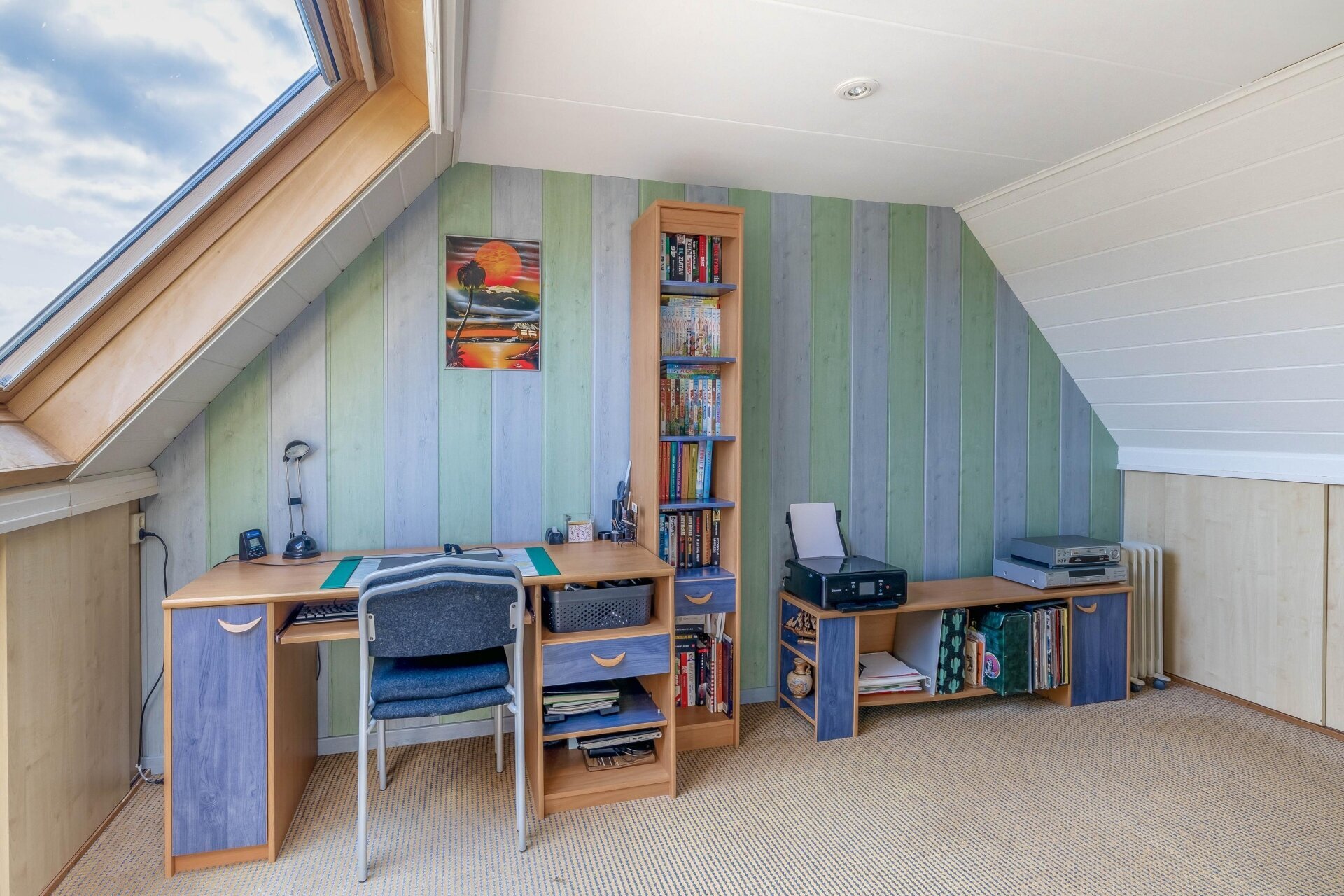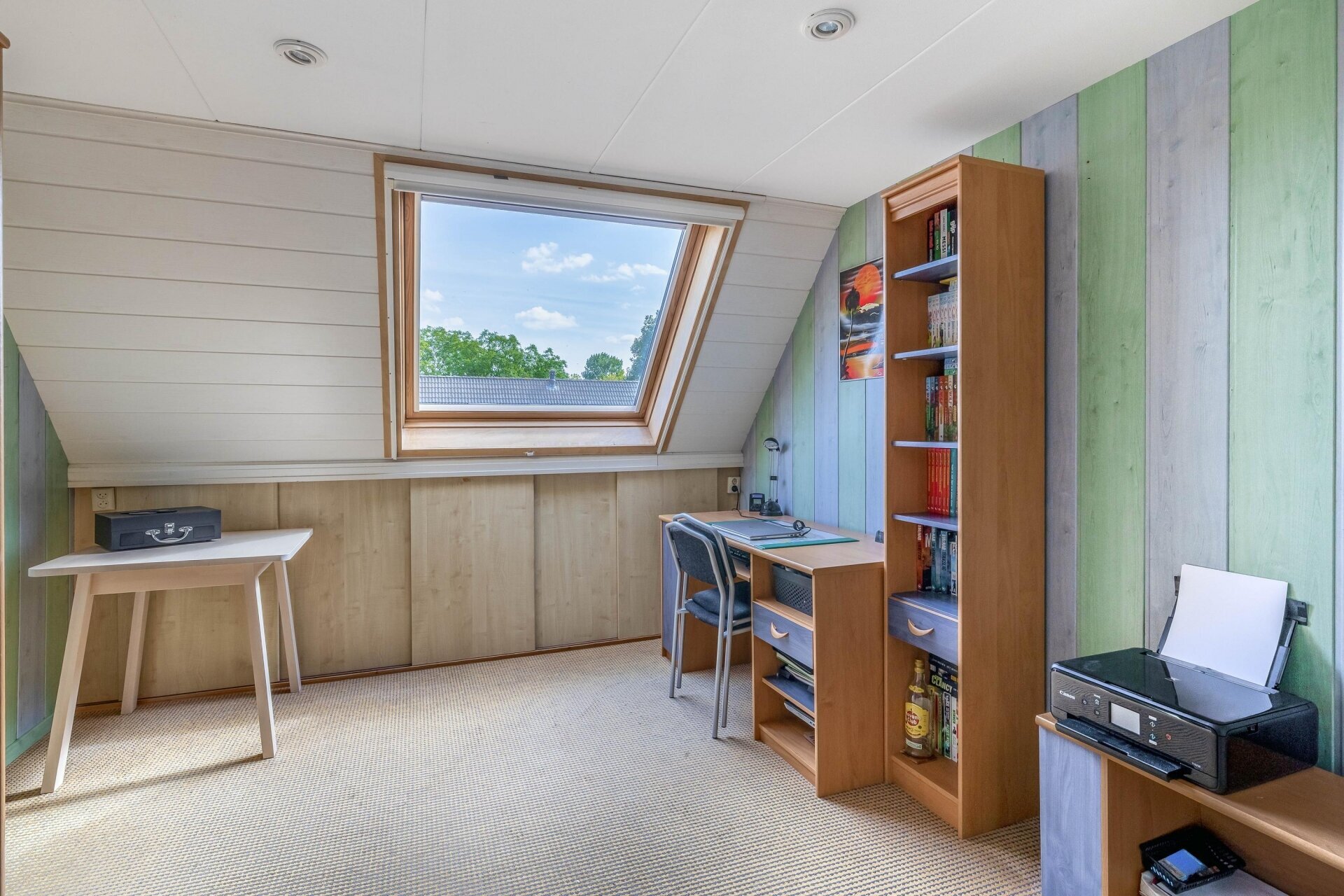 Op de eerste verdieping bevinden zich drie ruime slaapkamers en een verzorgde badkamer die in 2012 volledig is vernieuwd. Deze is ingericht met een dubbele wastafel, tweede toilet en moderne douche. Via de opnieuw beklede trap kom je op zolder, waar een royale vierde slaapkamer is gerealiseerd, voorzien van dakraam, afgewerkte knieschotten en zelfs een opbergvliering. De voorzolder biedt plaats aan wasmachine, droger én herbergt de omvormer voor de zonnepanelen (2019), cv-ketel (2022) en mechanische ventilatie (2020). Alles met oog voor comfort en efficiëntie.