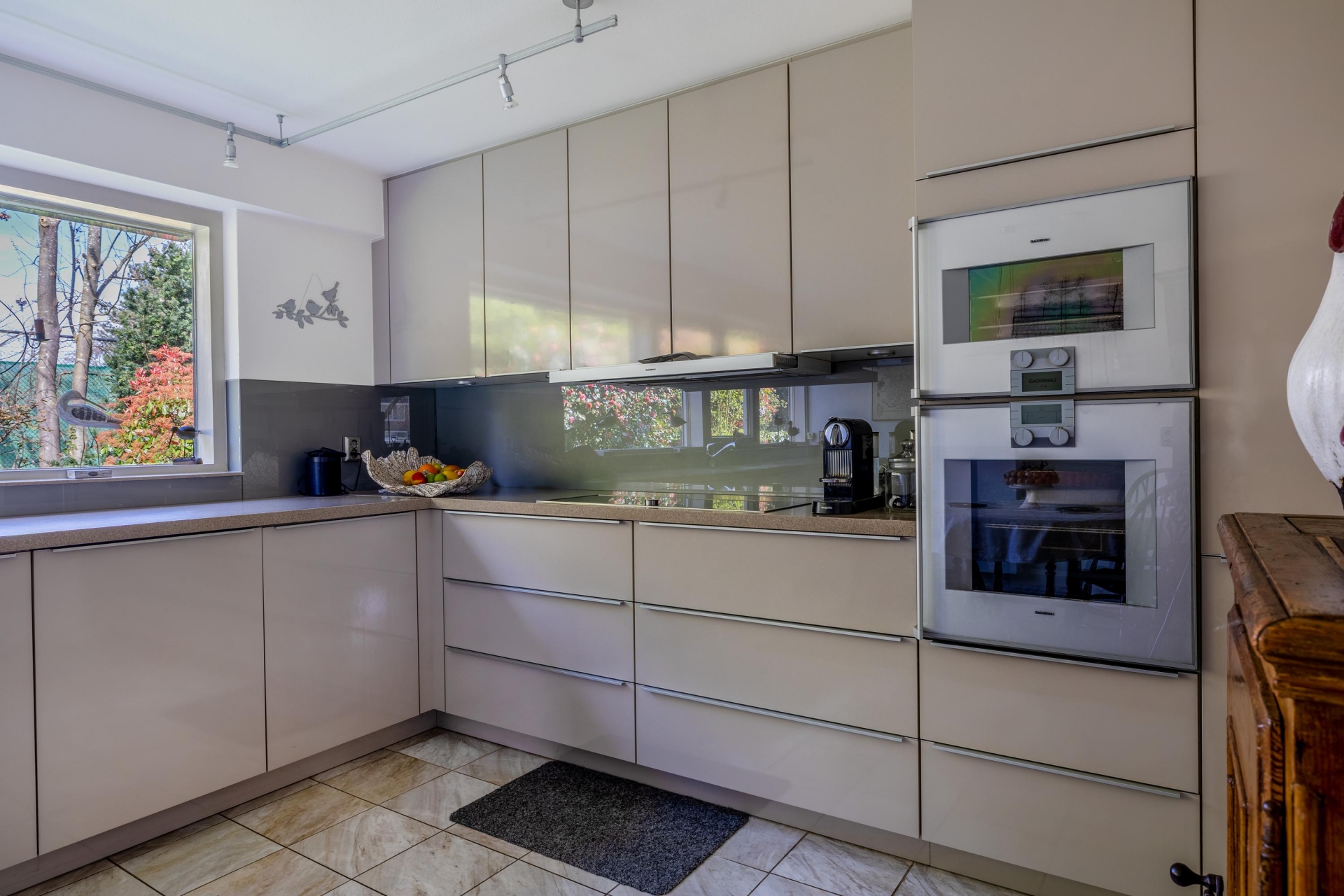De woonkeuken sluit perfect aan bij de leefruimte en is modern en strak uitgevoerd met luxe Gaggenau apparatuur. Hier heb je alle ruimte om uitgebreid te koken en tegelijkertijd in contact te blijven met familie of gasten.