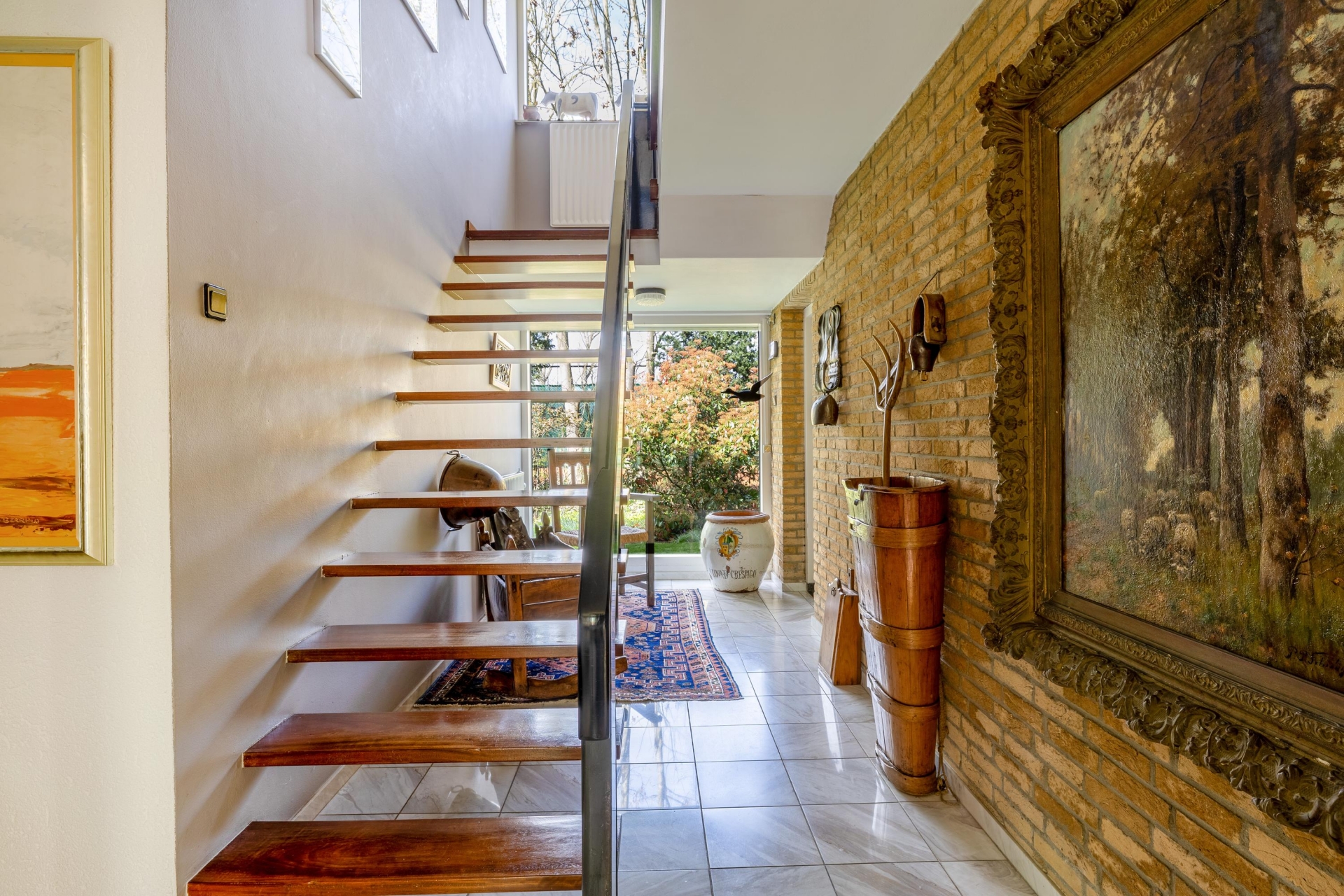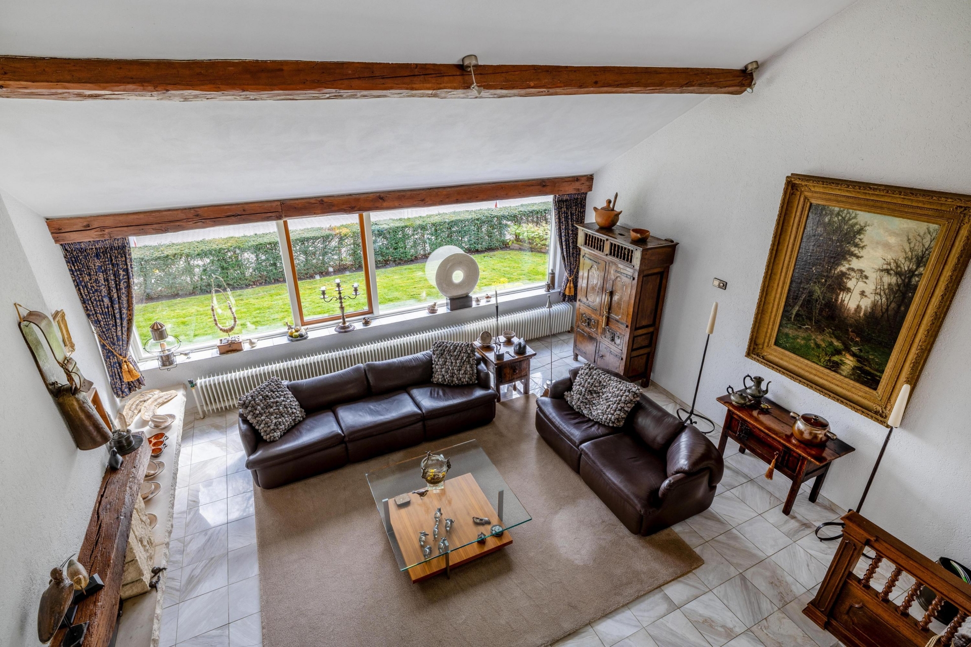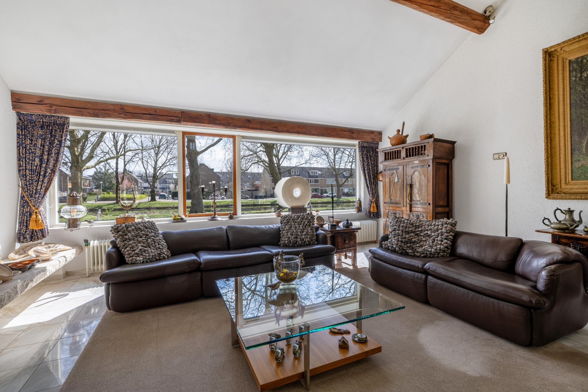 De marmeren vloer met vloerverwarming in het leefgedeelte zorgt niet alleen voor comfort, maar ook voor een verzorgde en tijdloze uitstraling. Dit is een plek waar je zowel groots kunt ontvangen als rustig kunt genieten van het uitzicht en de ruimte om je heen.