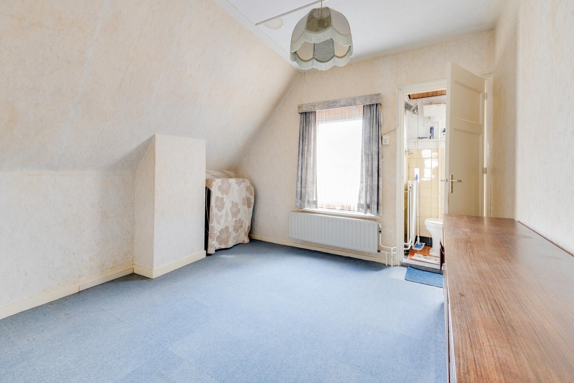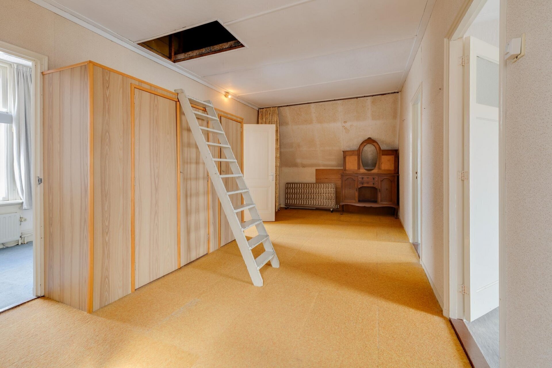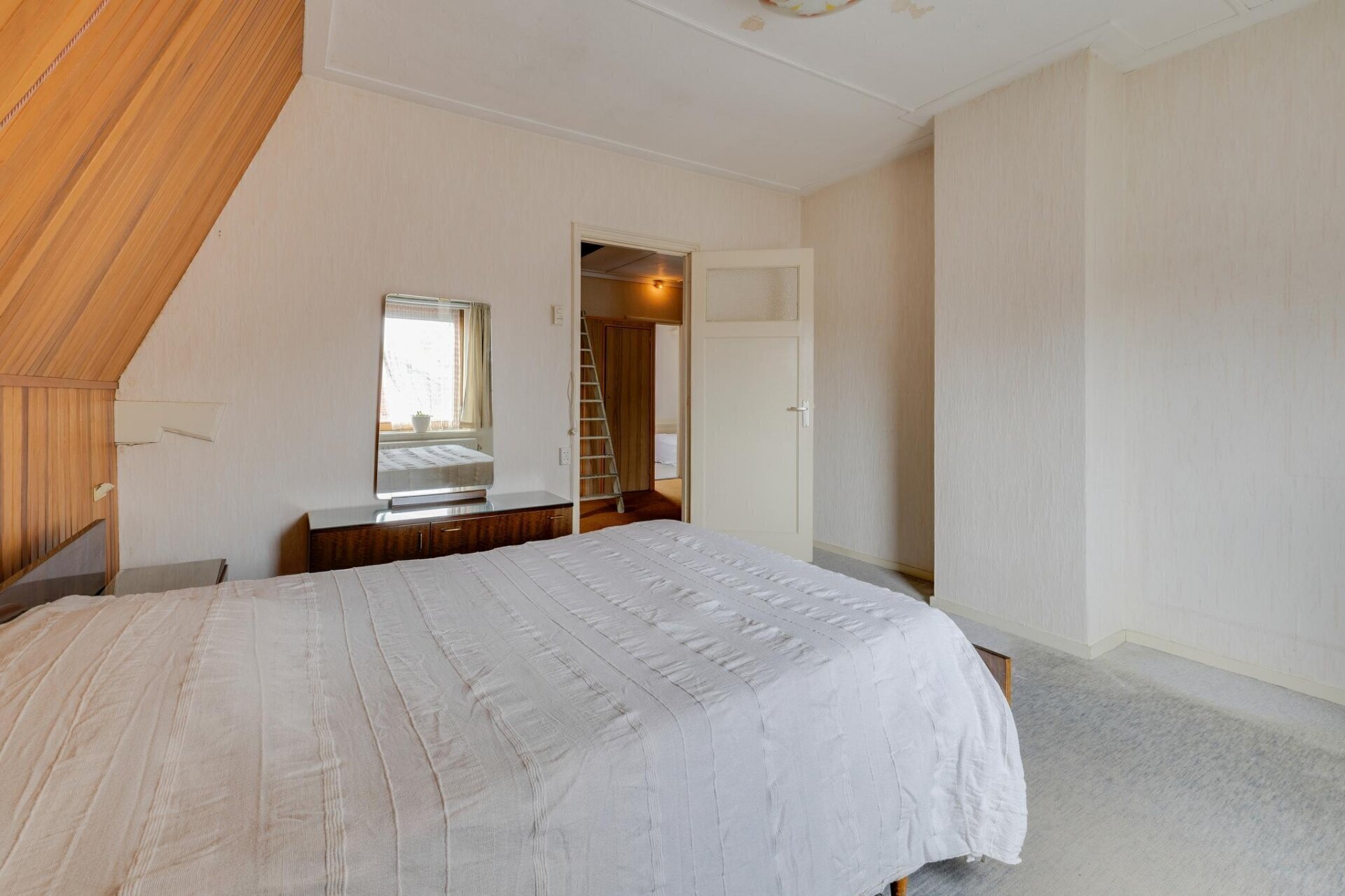 Via de vlizotrap is de bergzolder te bereiken, de ruime overloop op de eerste verdieping verleent voldoende ruimte voor het realiseren van een vaste trap. Hoogste punt op de bergzolder is dan ook 2,16 meter waardoor u hier, wellicht in combinatie met een dakkapel, nog ruimschoots mogelijkheden heeft voor het creëren van extra woonruimte.