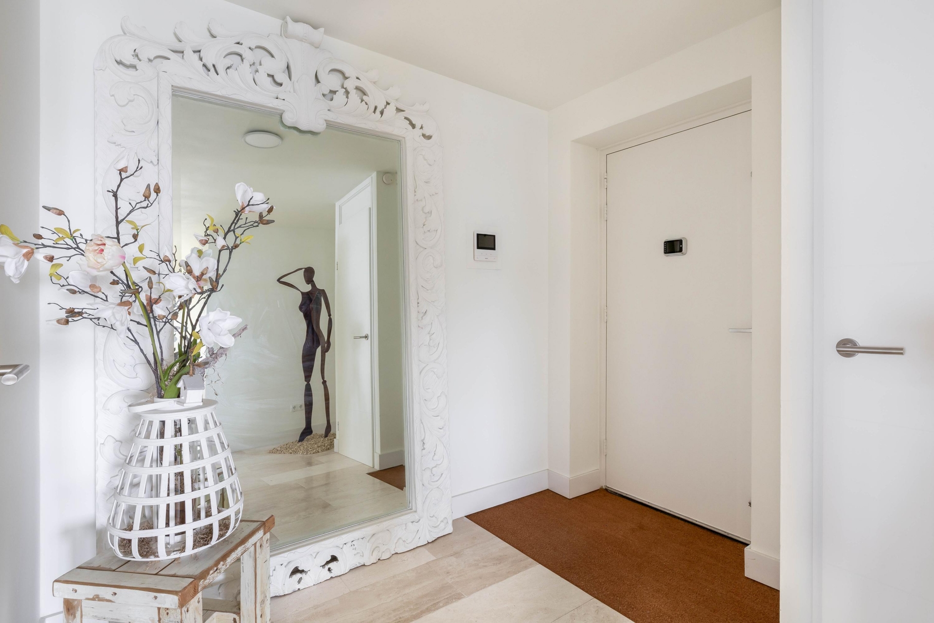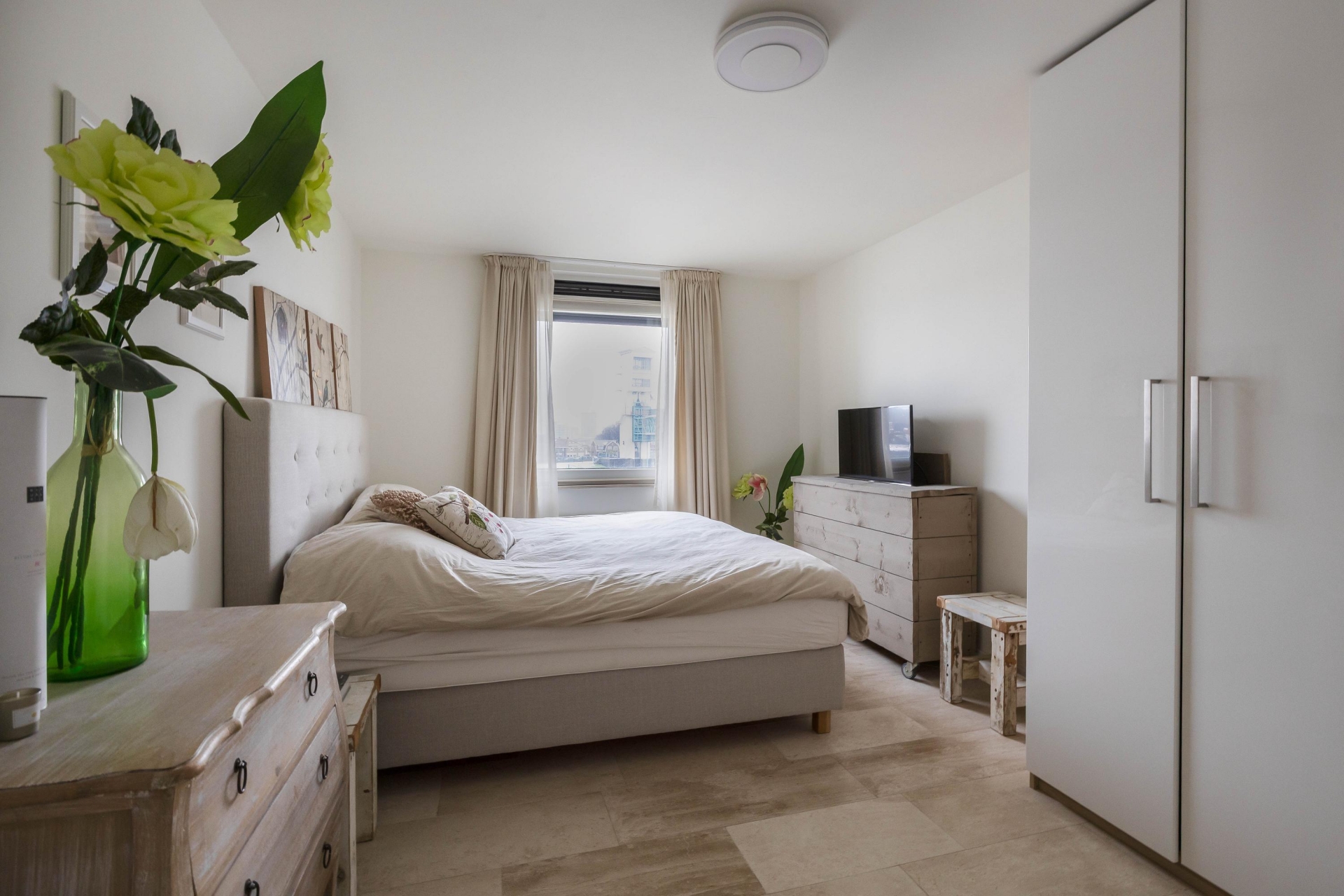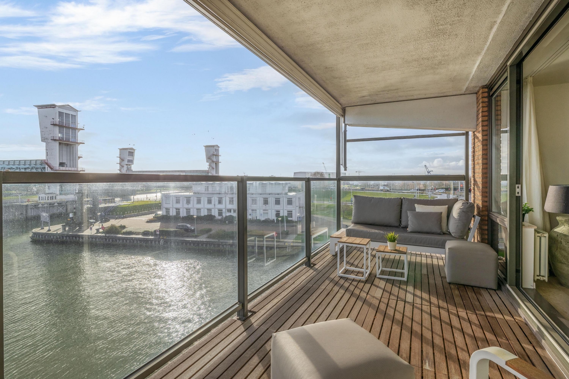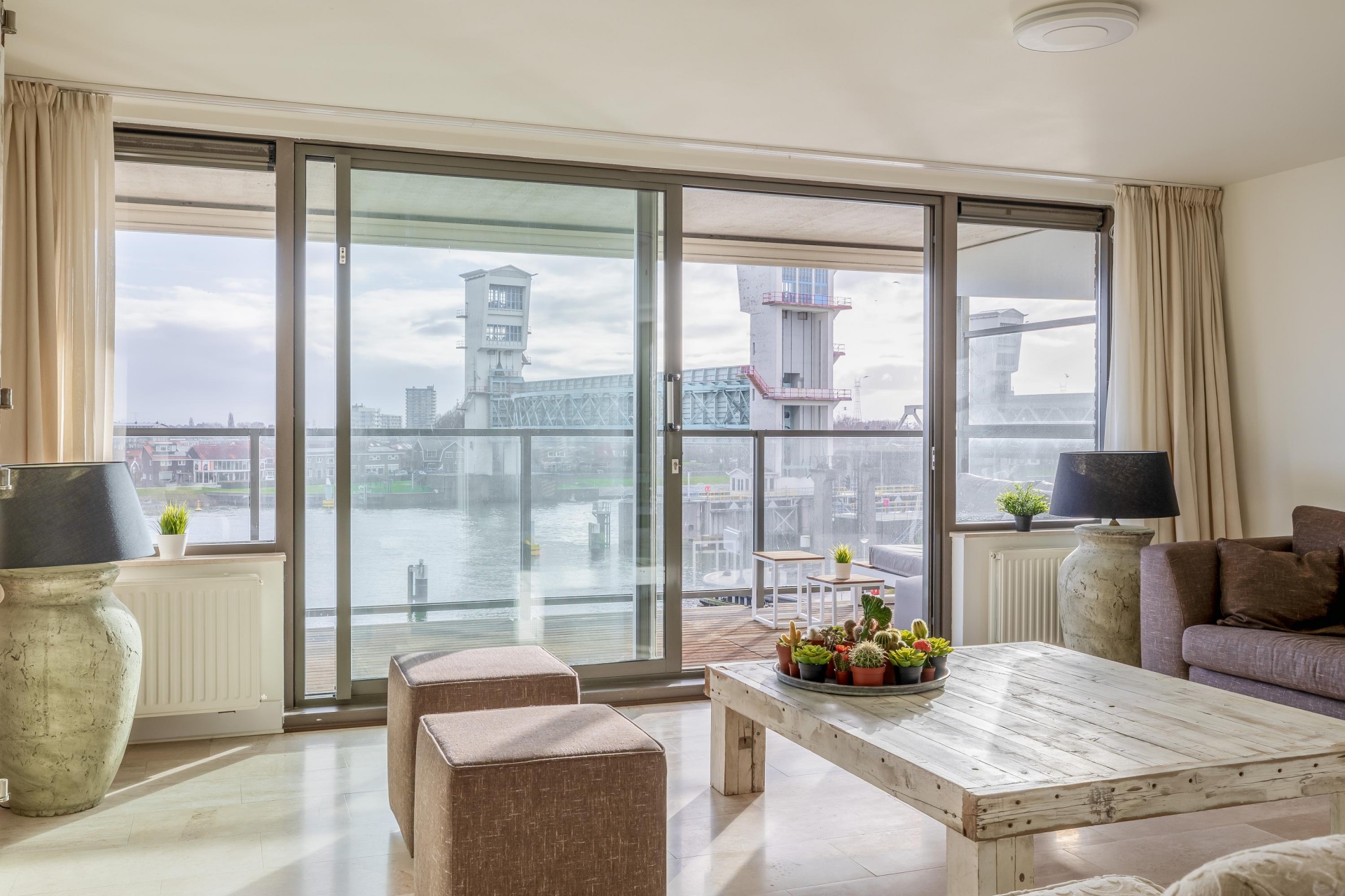 Vanaf het royale terras kijk je vrij uit over het water, met boten die rustig voorbijglijden en een steeds veranderend uitzicht. Door de ligging op de derde verdieping én de hoekpositie is het hier opvallend licht. Grote raampartijen en extra zijramen zorgen voor een prettige open sfeer, waarbij binnen en buiten moeiteloos in elkaar overlopen. Dit is zo’n plek waar je ’s ochtends rustig wakker wordt met een kop koffie in de zon en ’s avonds nog even blijft zitten omdat het uitzicht blijft trekken.