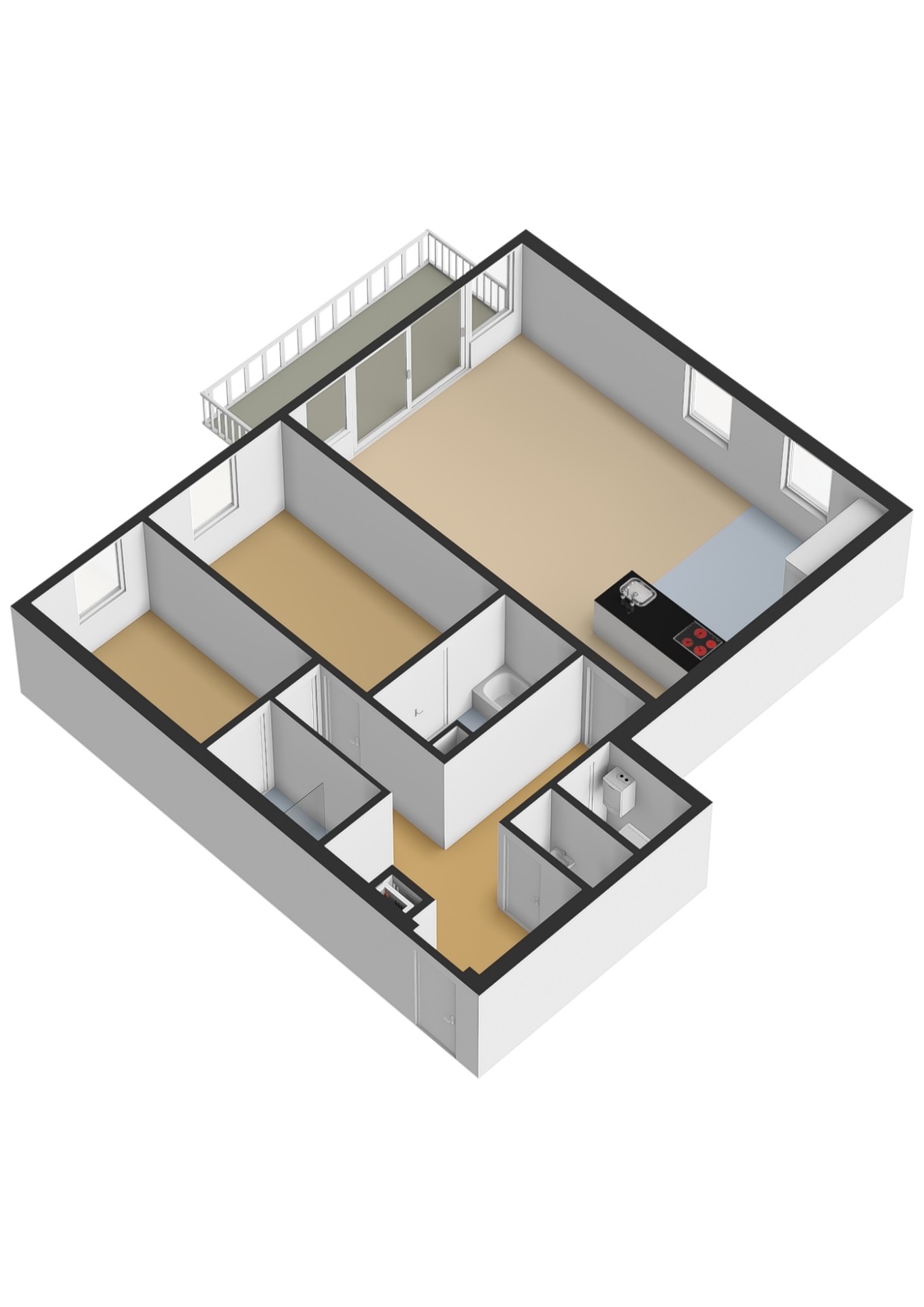 De woonkamer is ruim opgezet en biedt alle vrijheid voor een comfortabele zithoek en een royale eettafel. Dankzij de open indeling blijft het contact met de keuken altijd behouden. De afwerking is verzorgd en tijdloos, waardoor je hier zonder grote aanpassingen kunt intrekken. Dit appartement voelt direct als een fijne woonplek: overzichtelijk, licht en comfortabel.