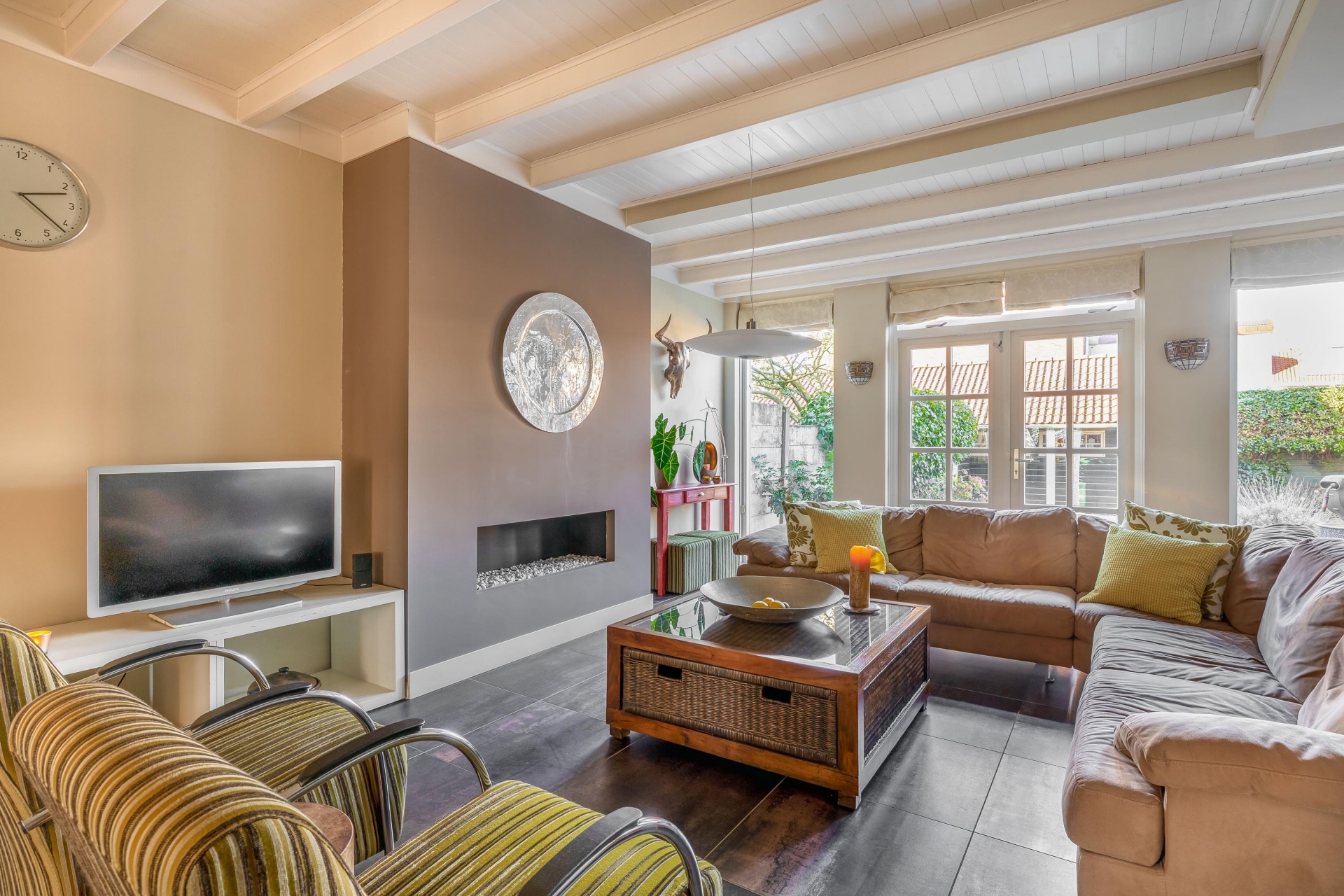 De sfeer in huis is direct voelbaar zodra je binnenstapt. De woonkamer is uitgebouwd en voelt dankzij de zichtbare balken, openslaande deuren, strak afgewerkte wanden en de combinatie van authentieke details en moderne afwerking, warm en uitnodigend aan. De eetkamer aan de voorzijde heeft een charmante erker met glas-in-loodramen; een fijne plek voor lange diners of een goed boek in de zon.